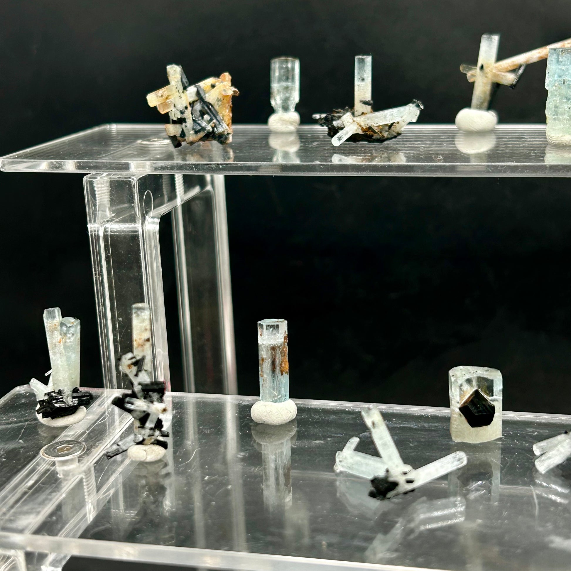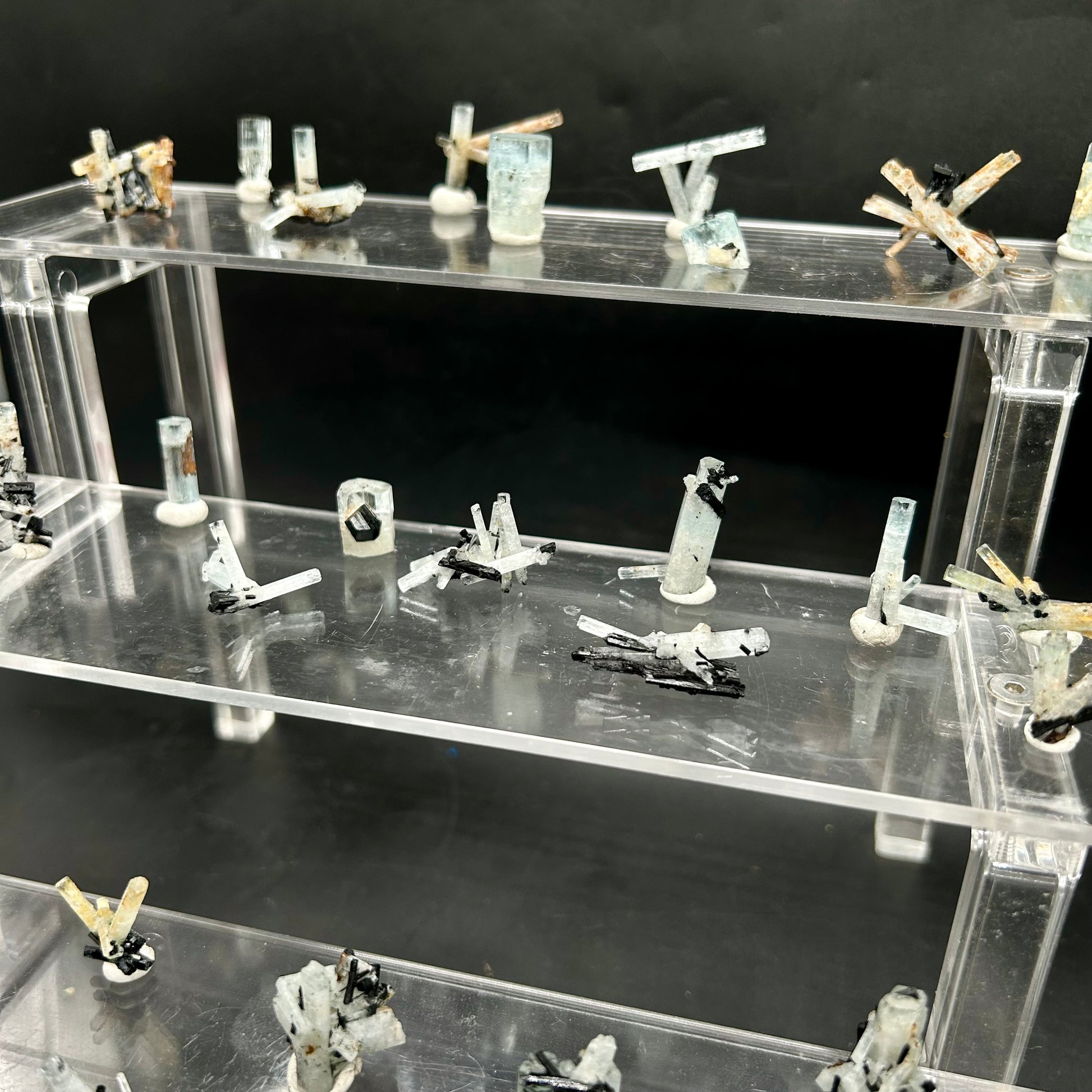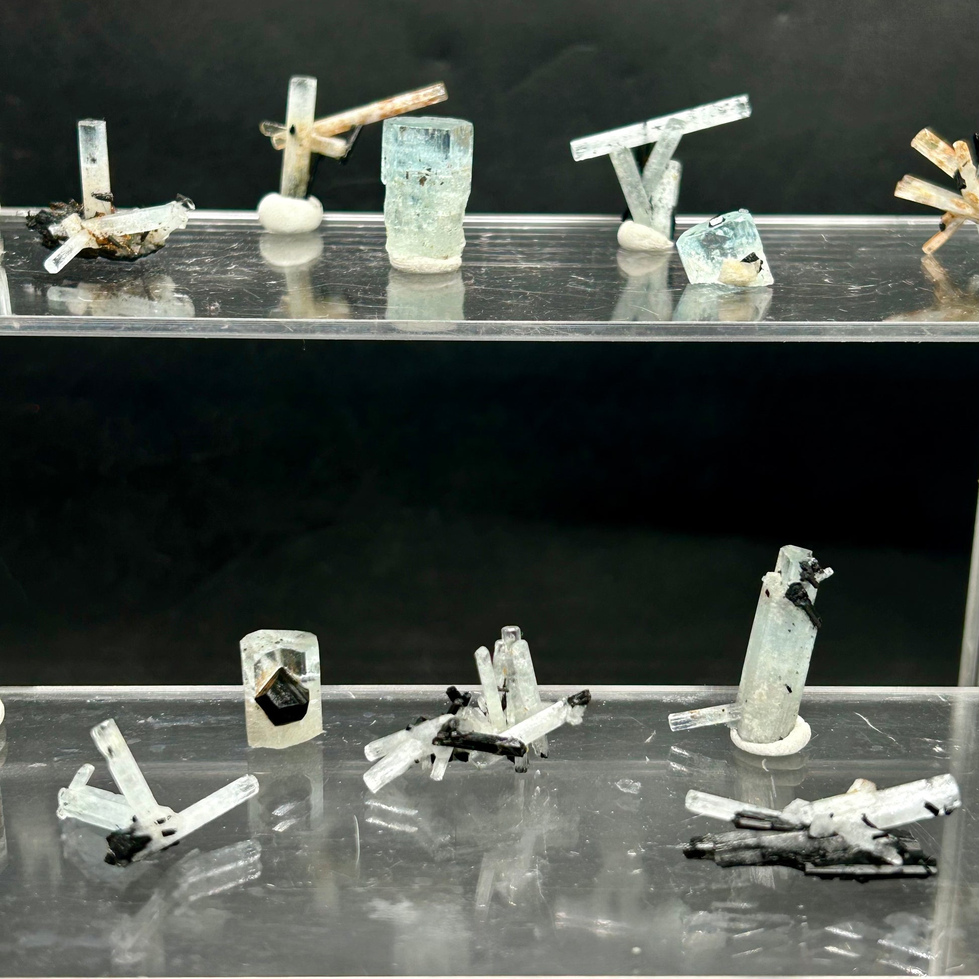 🇬🇧 30 aquamarine clusters and crystals, all endfaces intact, 5-6 with hyalite on them. Purchased last year in the Erongo region.