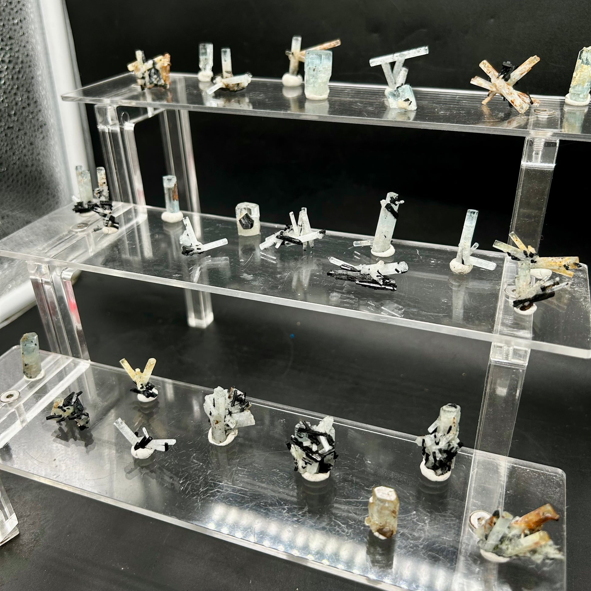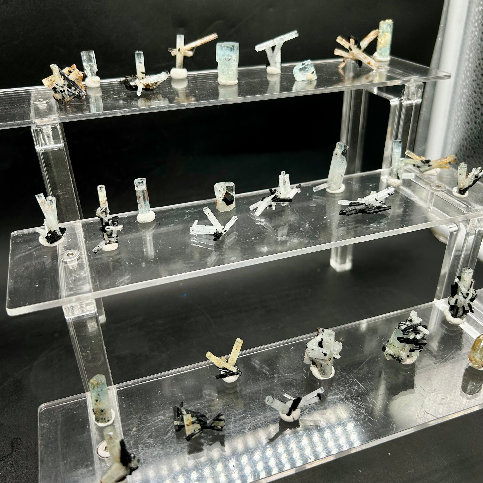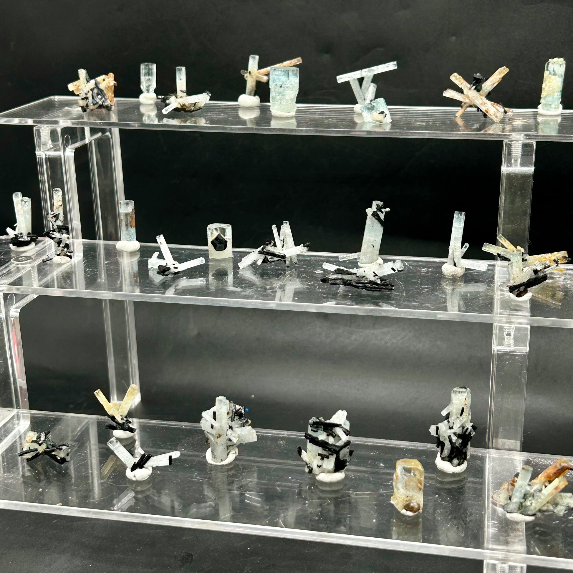 🇬🇧 30 aquamarine clusters and crystals, all endfaces intact, 5-6 with hyalite on them. Purchased last year in the Erongo region.