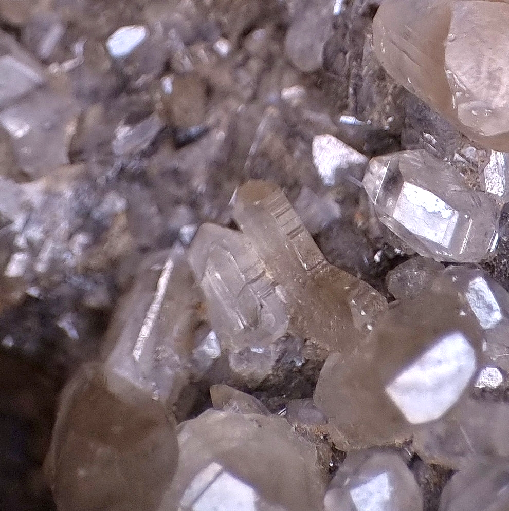 Two-feature specimen of cerussite from Mibladen showing not only countless cerussite crystals but also: