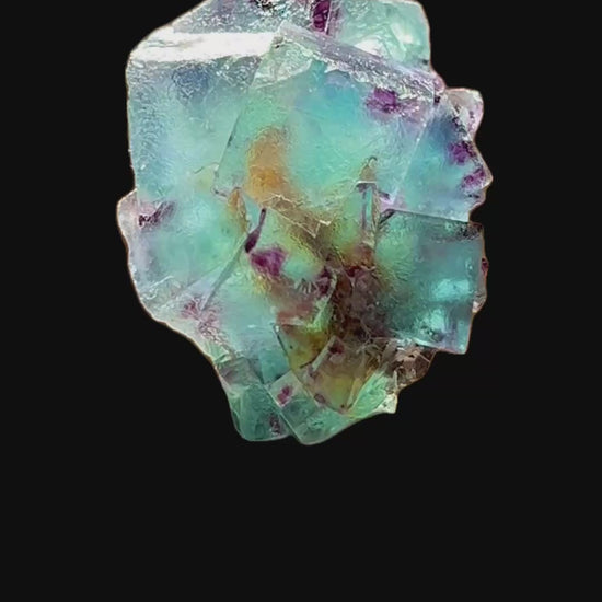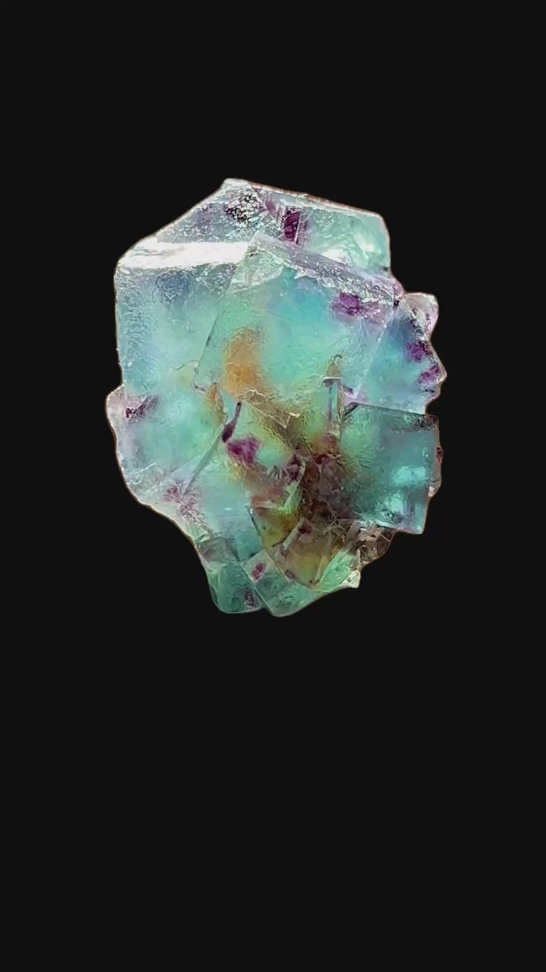Clear Fluorite crystals in transmitted light, slightly greener in person than they appear here.