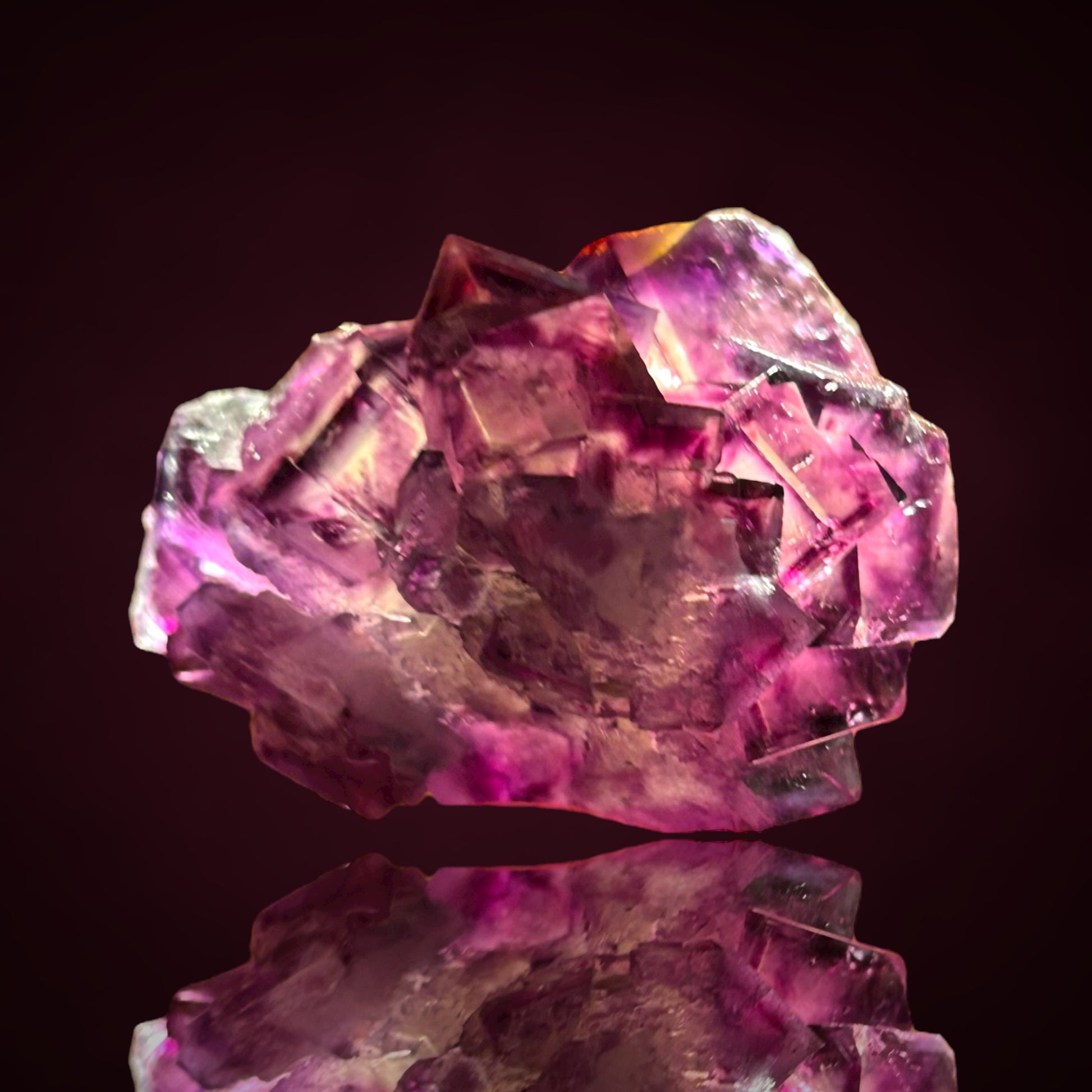 A classic, richly patterned fluorite specimen from the Okorusu Mine, adorned with countless vivid phantom formations creating wild and enchanting internal designs.