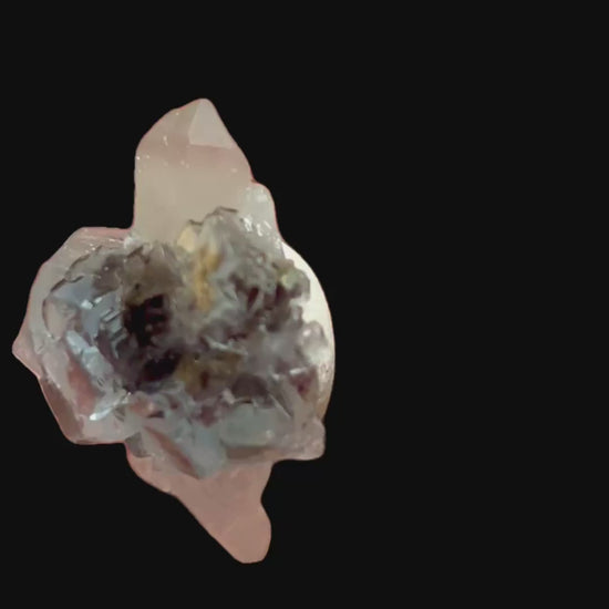 Glass-clear turquoise Fluorite crystals with a darker core perched on Quartz, from the famous “Diamond Pocket” of the Okorusu Mine.