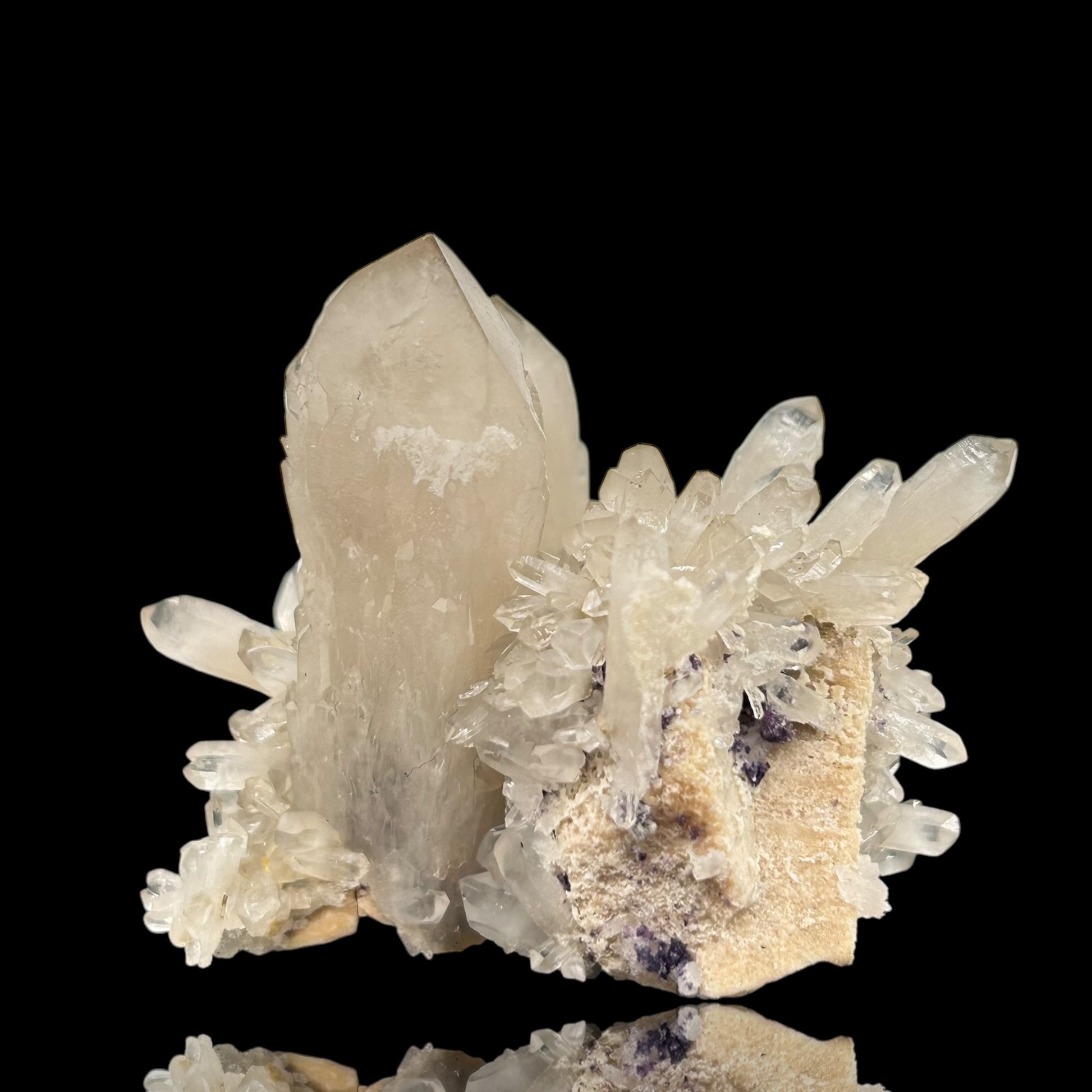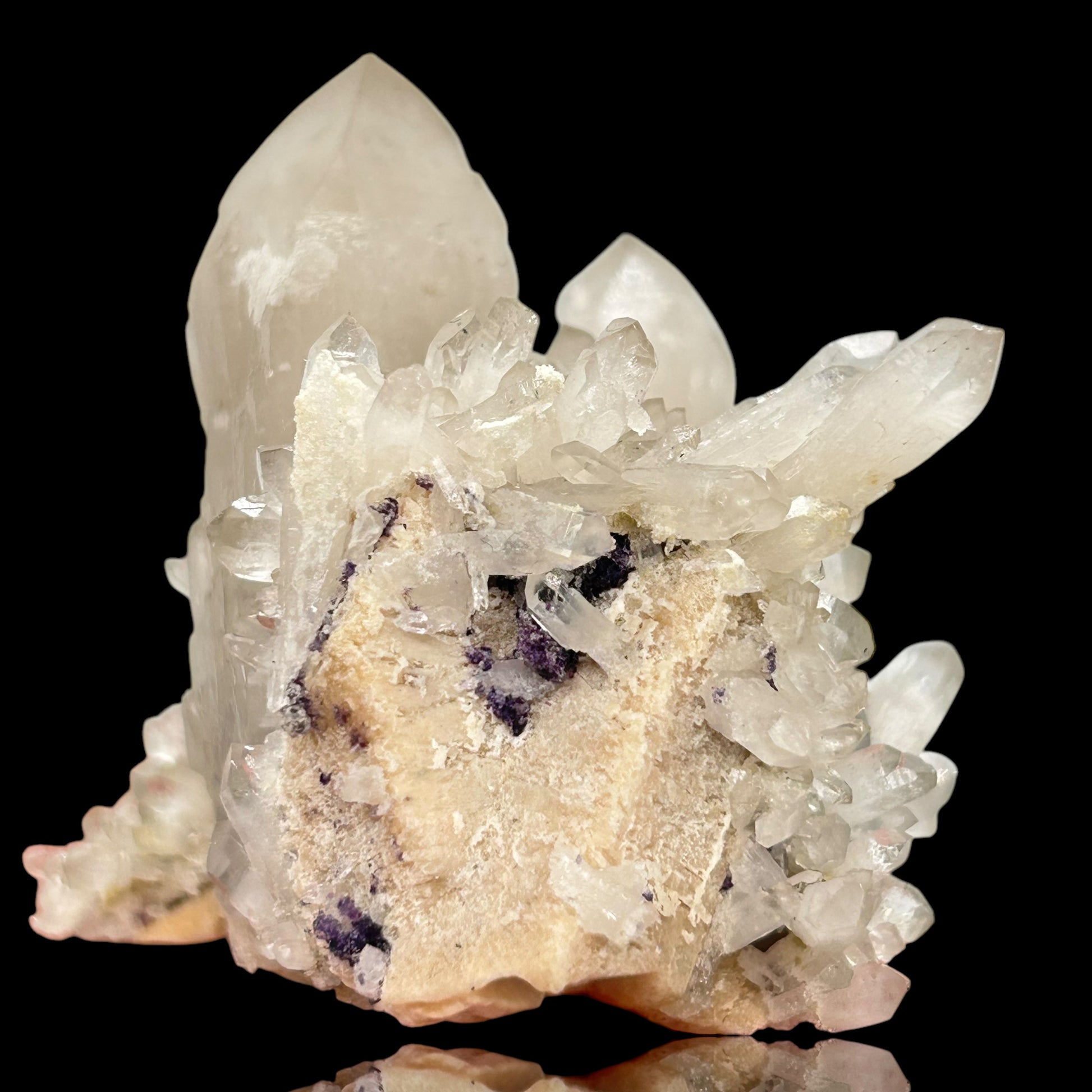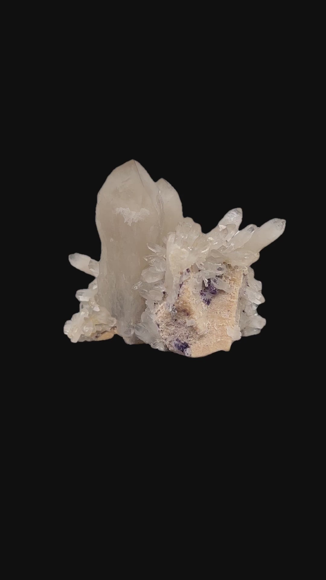 🇩🇪 Sehr ästhetisches Artischockenquarz Stüfchen mit kleinen lila Fluorit xx auf Orthoklas xx.