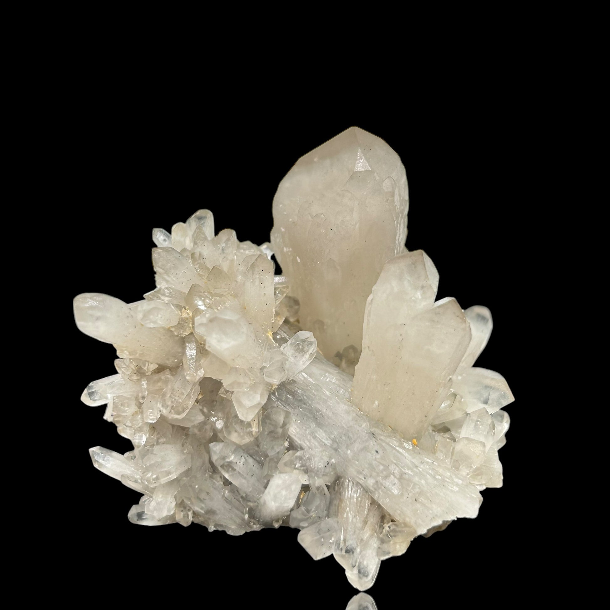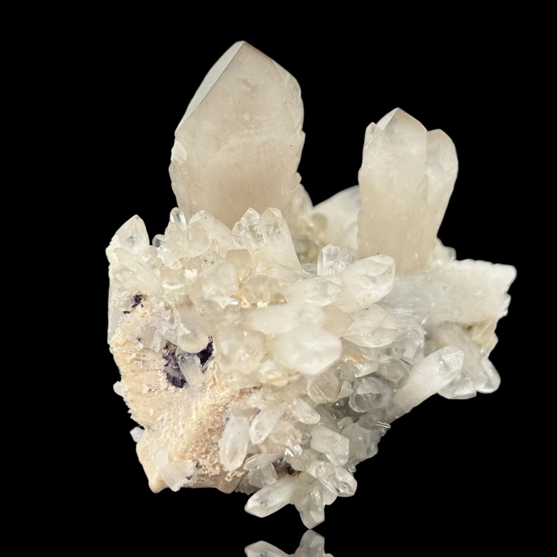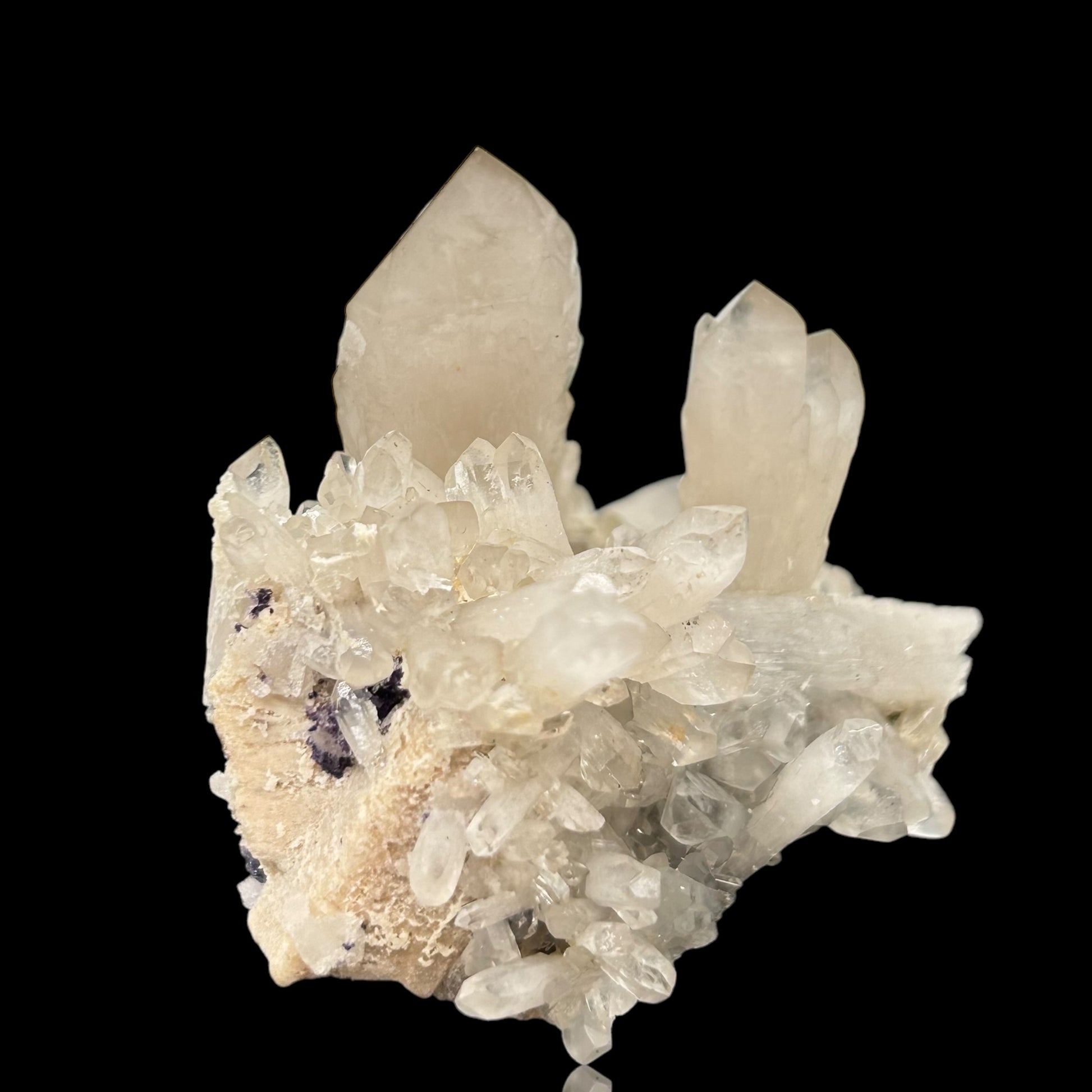 🇩🇪 Sehr ästhetisches Artischockenquarz Stüfchen mit kleinen lila Fluorit xx auf Orthoklas xx.