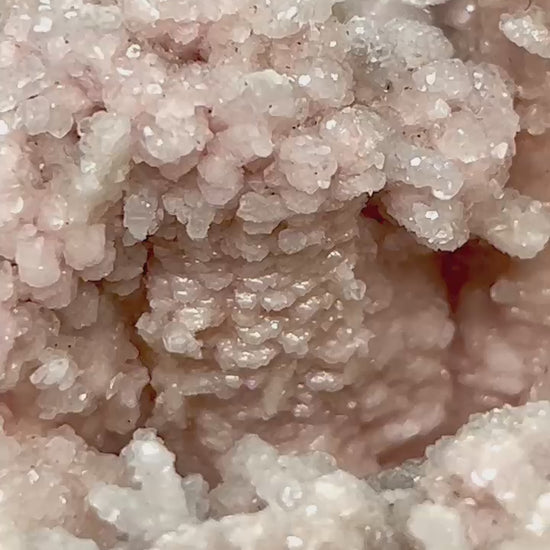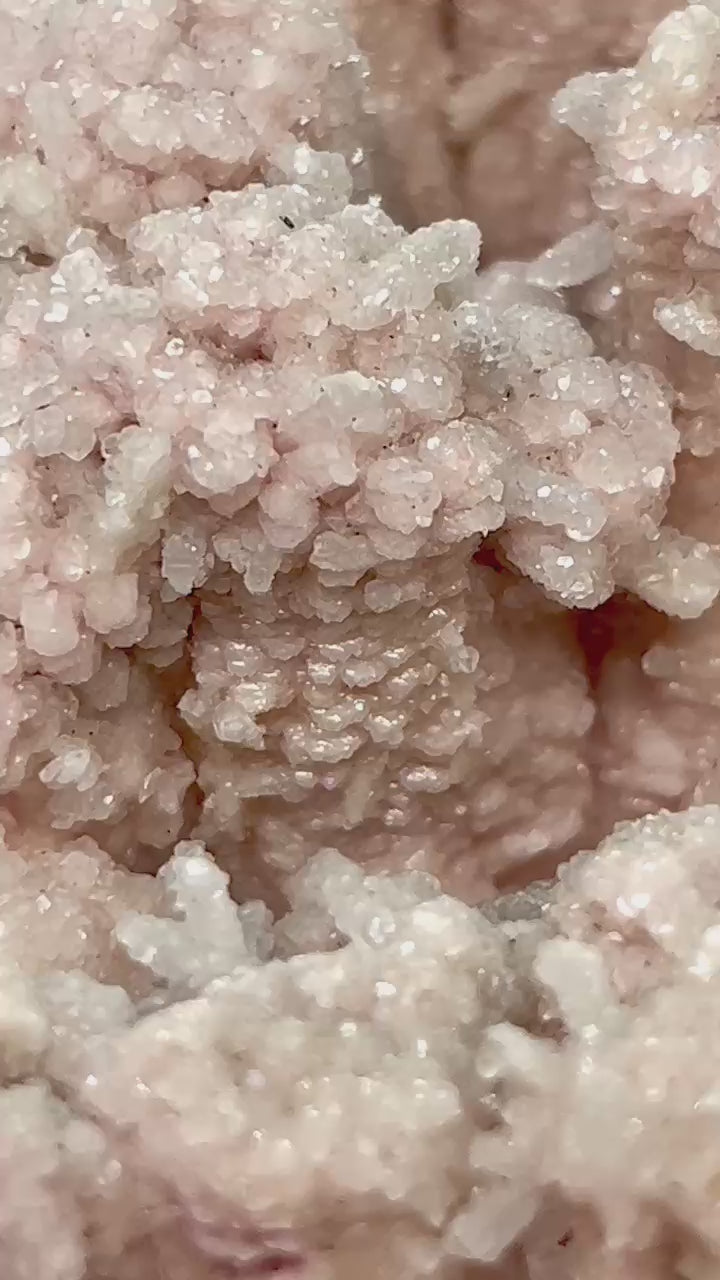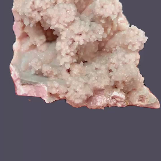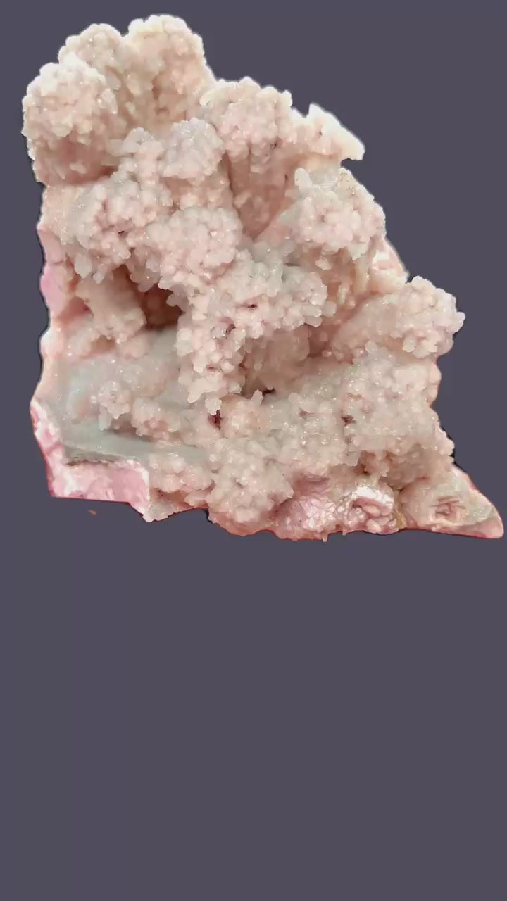 Intensely pink, stalagmite-like and fingershaped rhodochrosite crystals grown on a contrasting base of massive, vivid pink rhodochrosite. A remarkably charming and uncommon formation, especially rare from Romania.