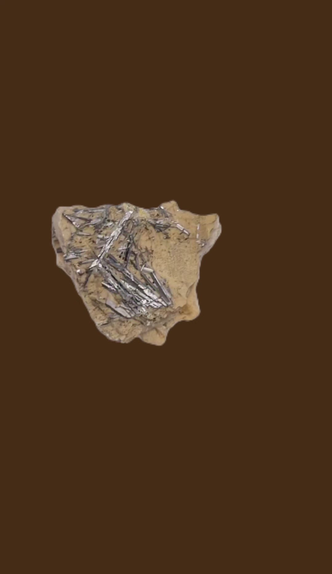 Beautiful darkgray-metallic, lustrous laths of stibnite laying flat on beige-colored calcite from a rare find in Micciano,.