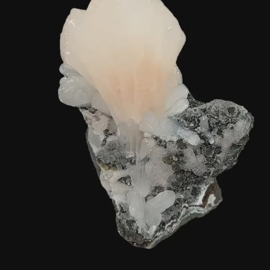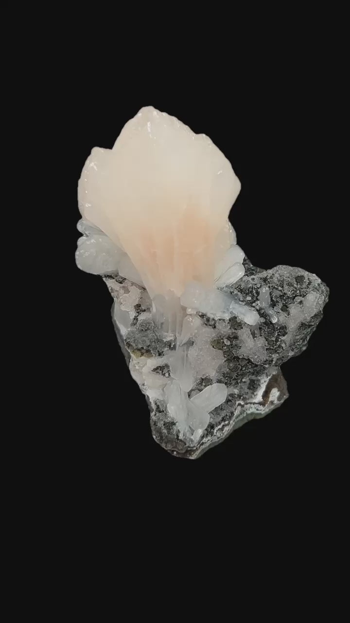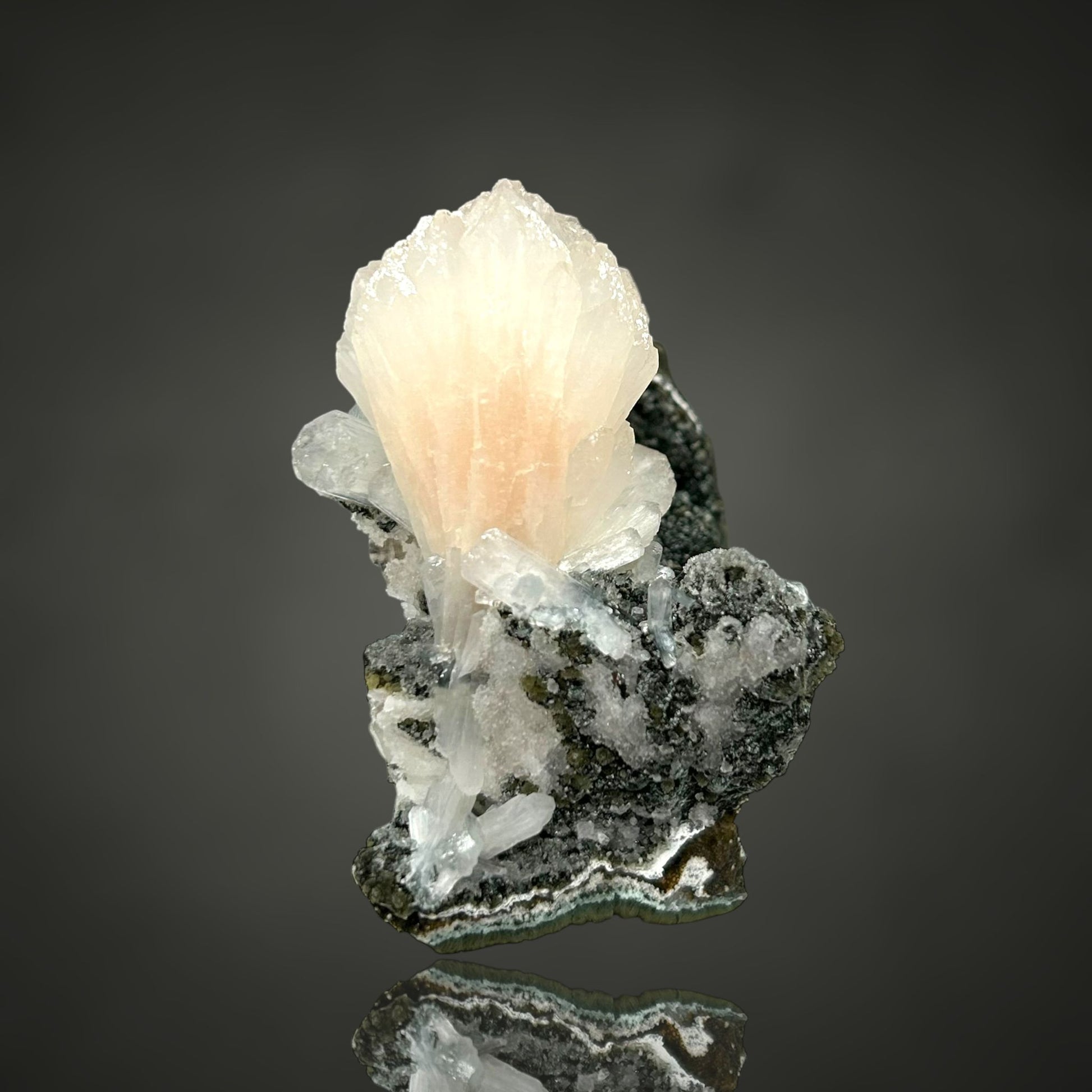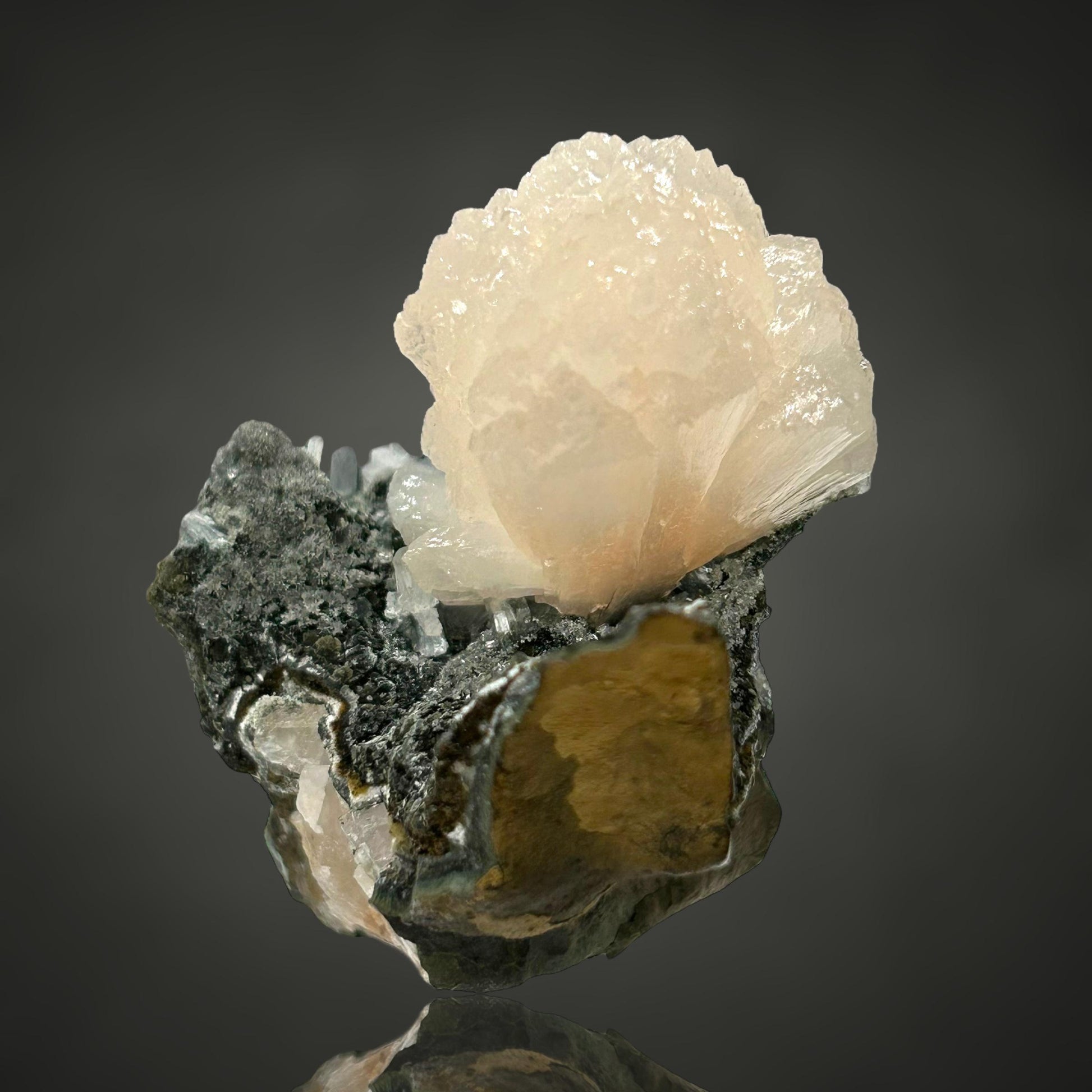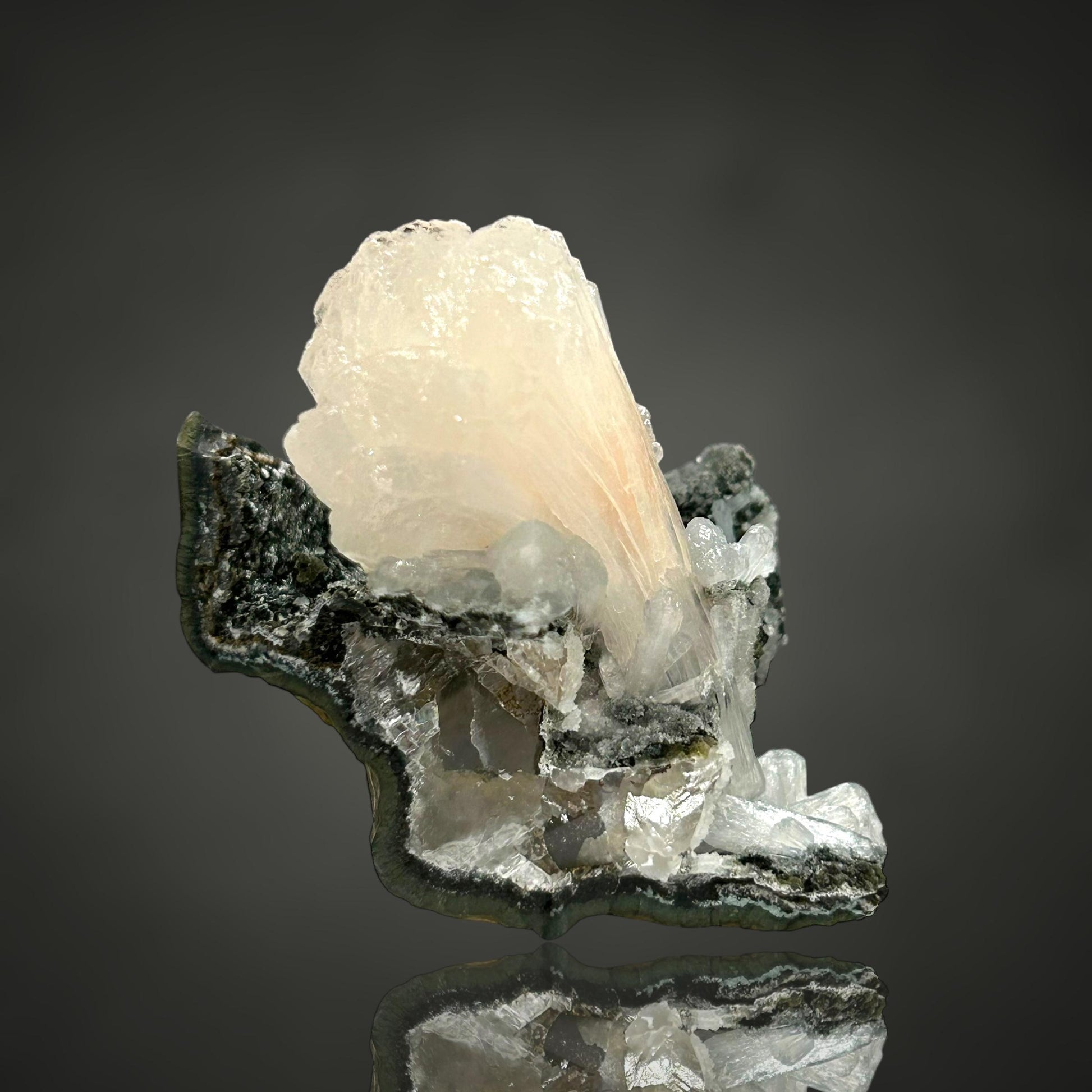 🇺🇸Ravishing bouquet of stilbite with excellent vitreous terminations perched on sparkling chalcedony-lined dark matrix creating a magnificient display specimen.