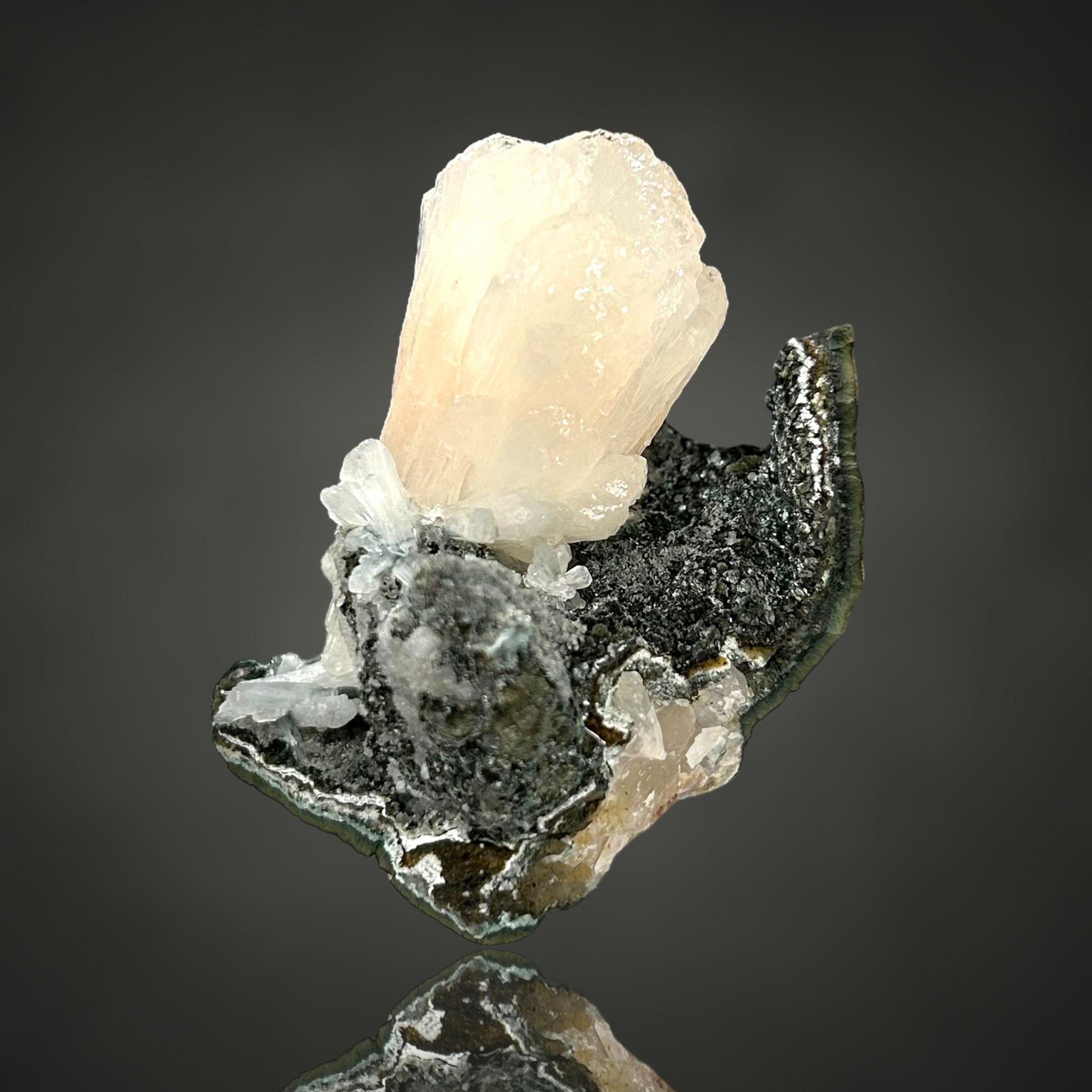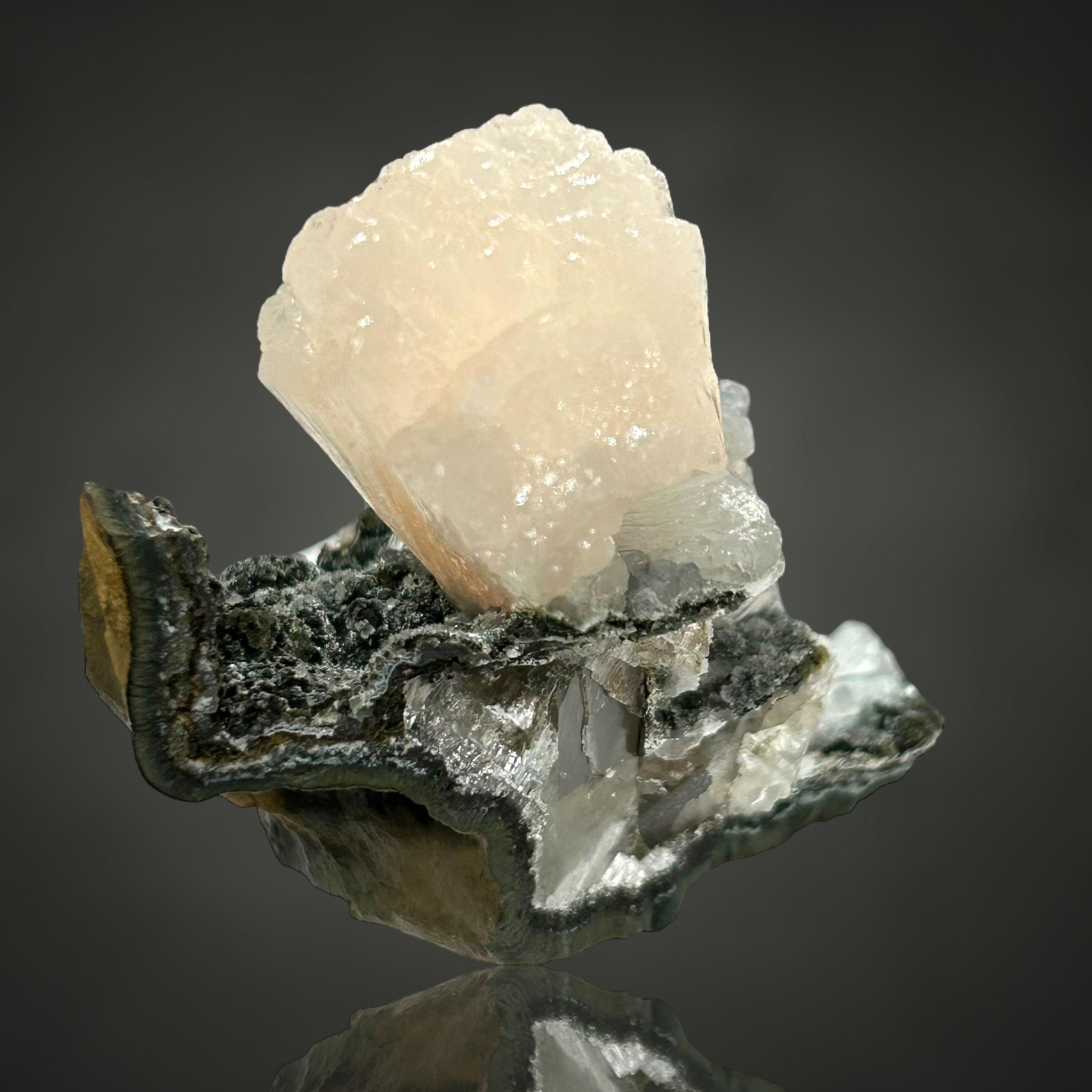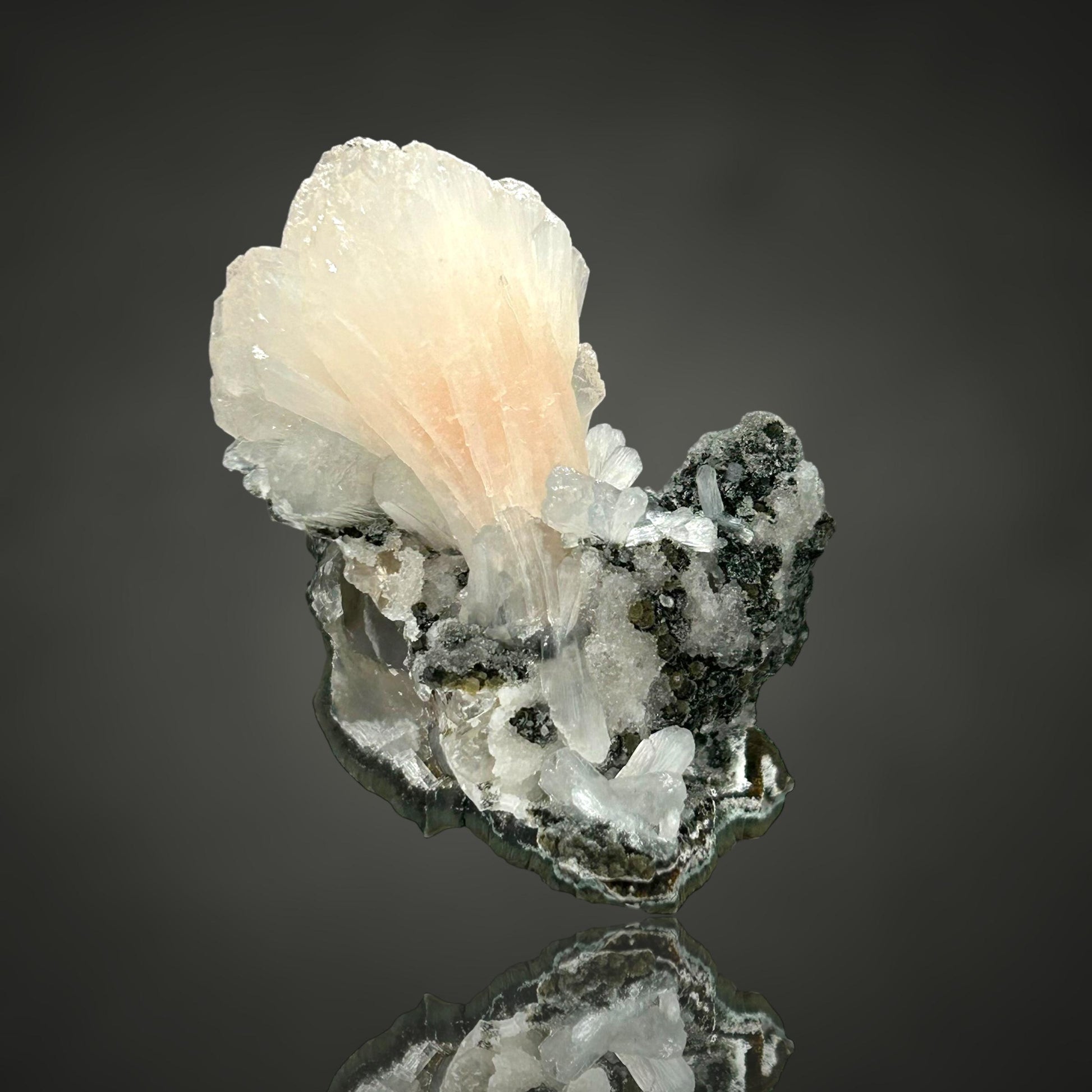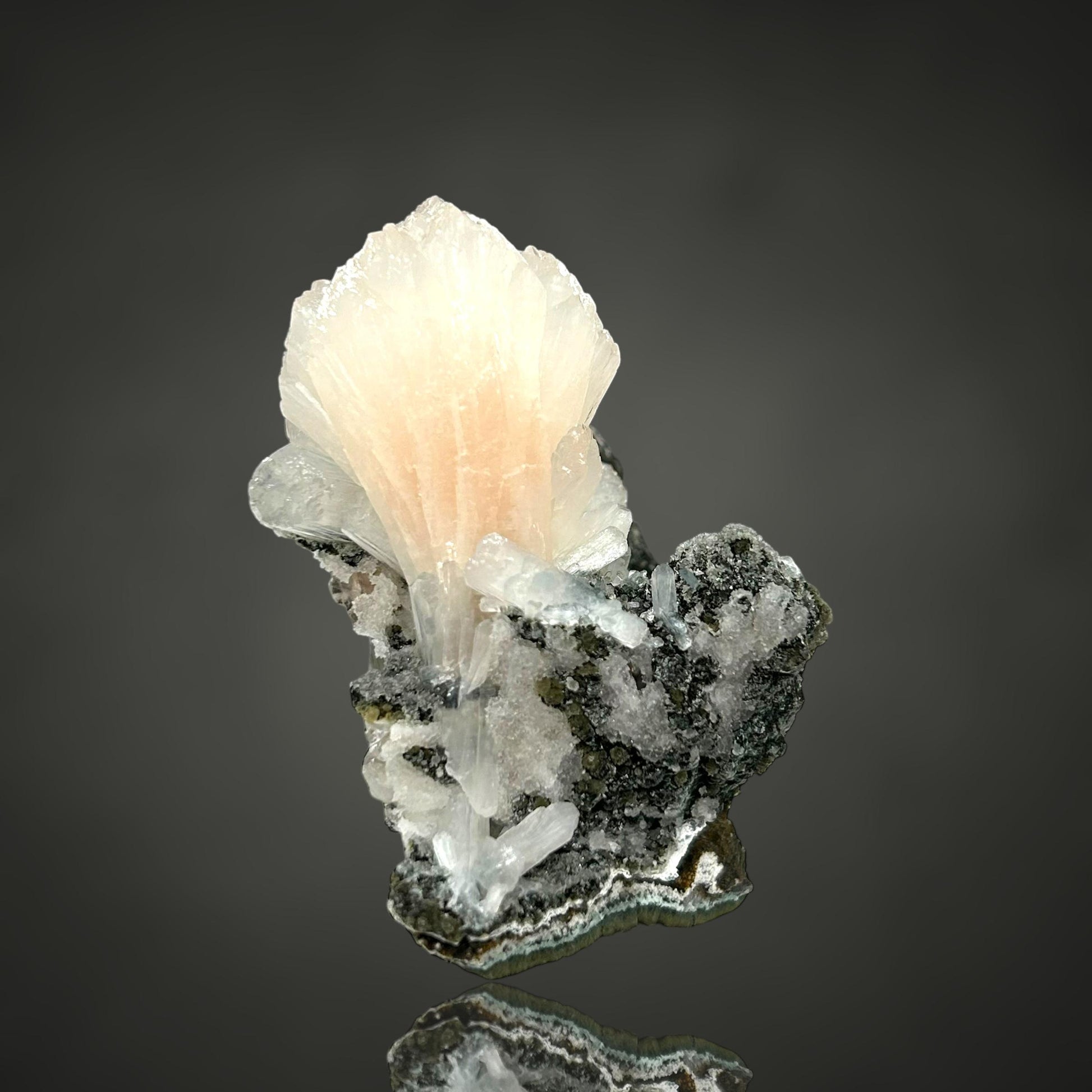 🇺🇸Ravishing bouquet of stilbite with excellent vitreous terminations perched on sparkling chalcedony-lined dark matrix creating a magnificient display specimen.