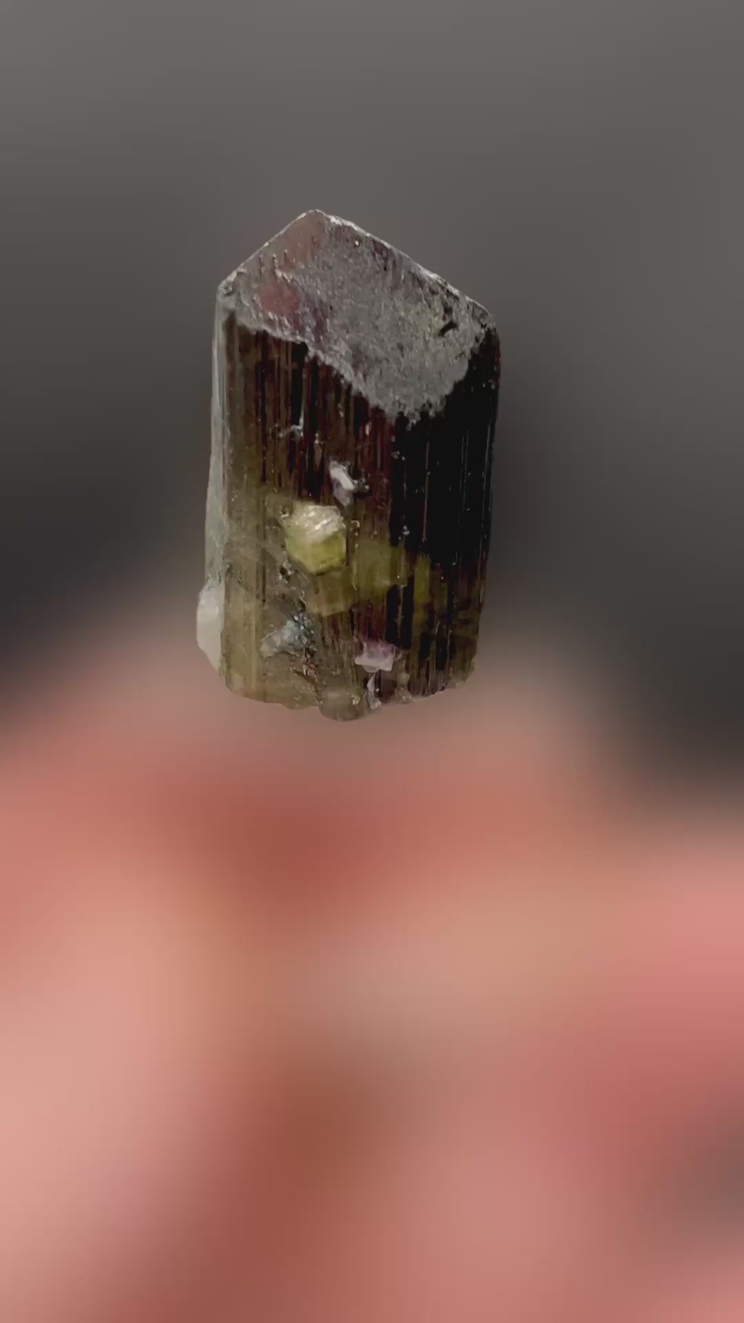 Beautifully formed Elbaite, green on the outside with a dark core, completely filled inside with vivid watermelon-red color.
