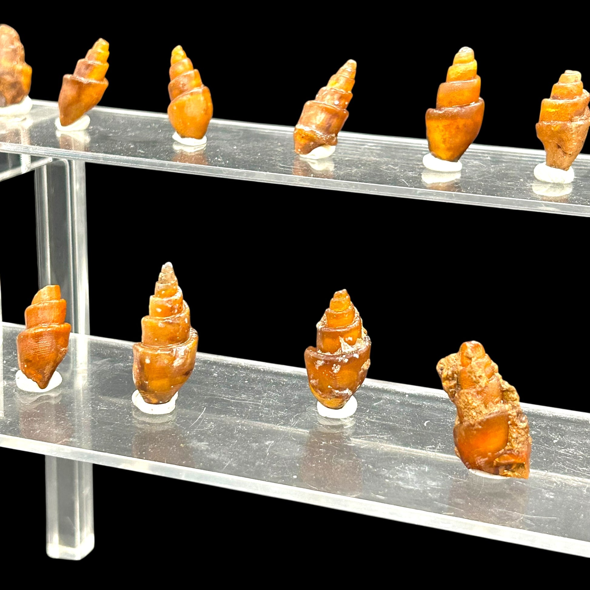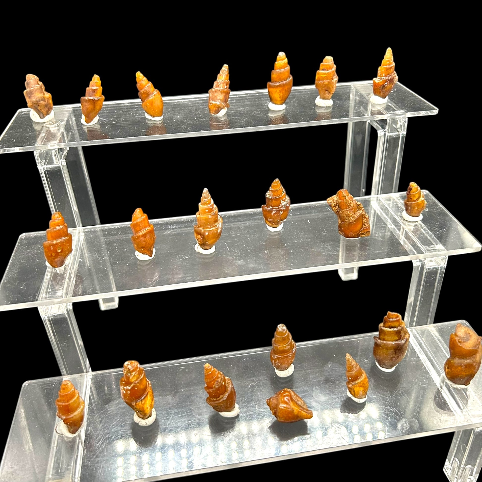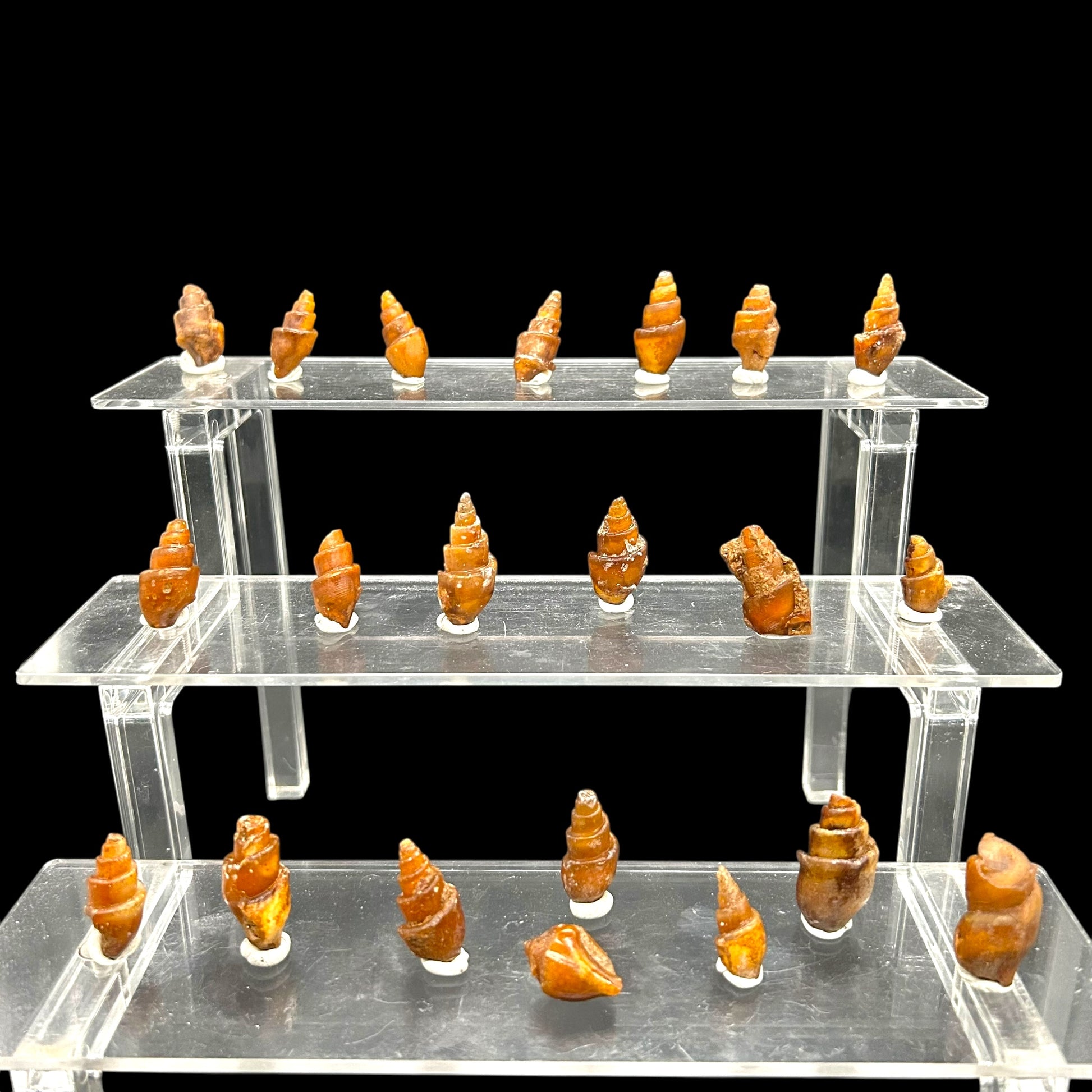 21 fossile Turitella-Schnecken aus der Westsahara, vollständig in Achat umgewandelt.