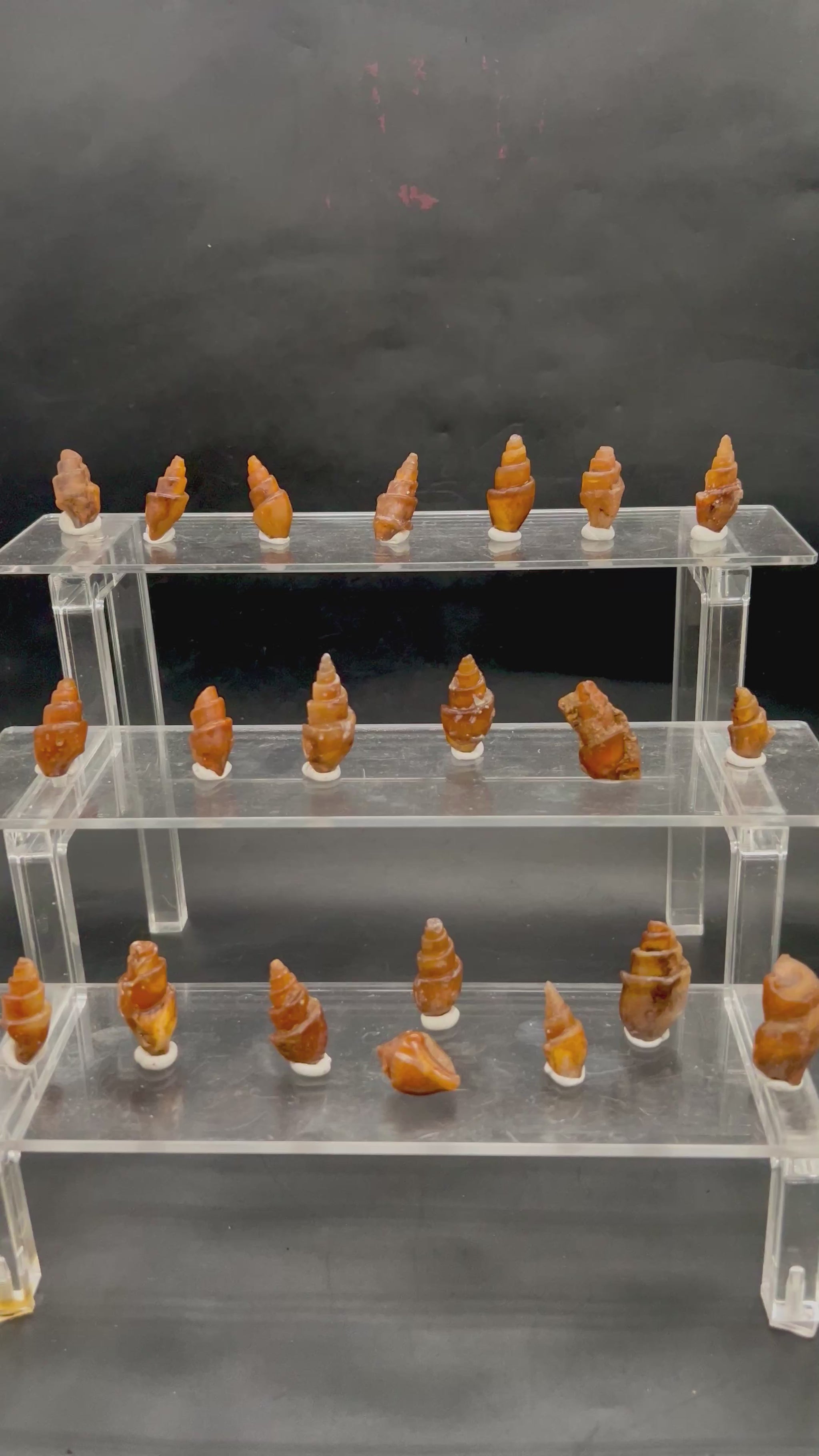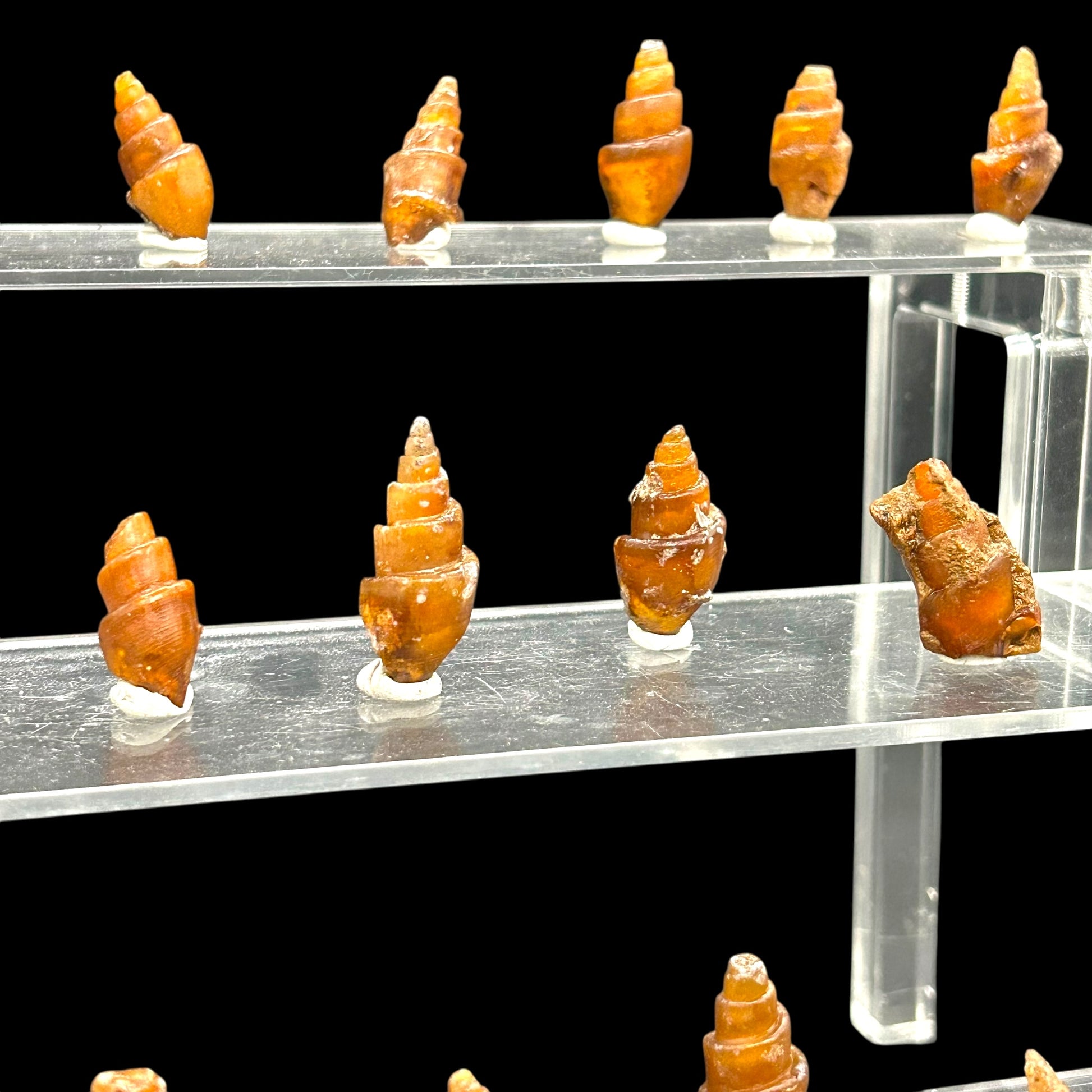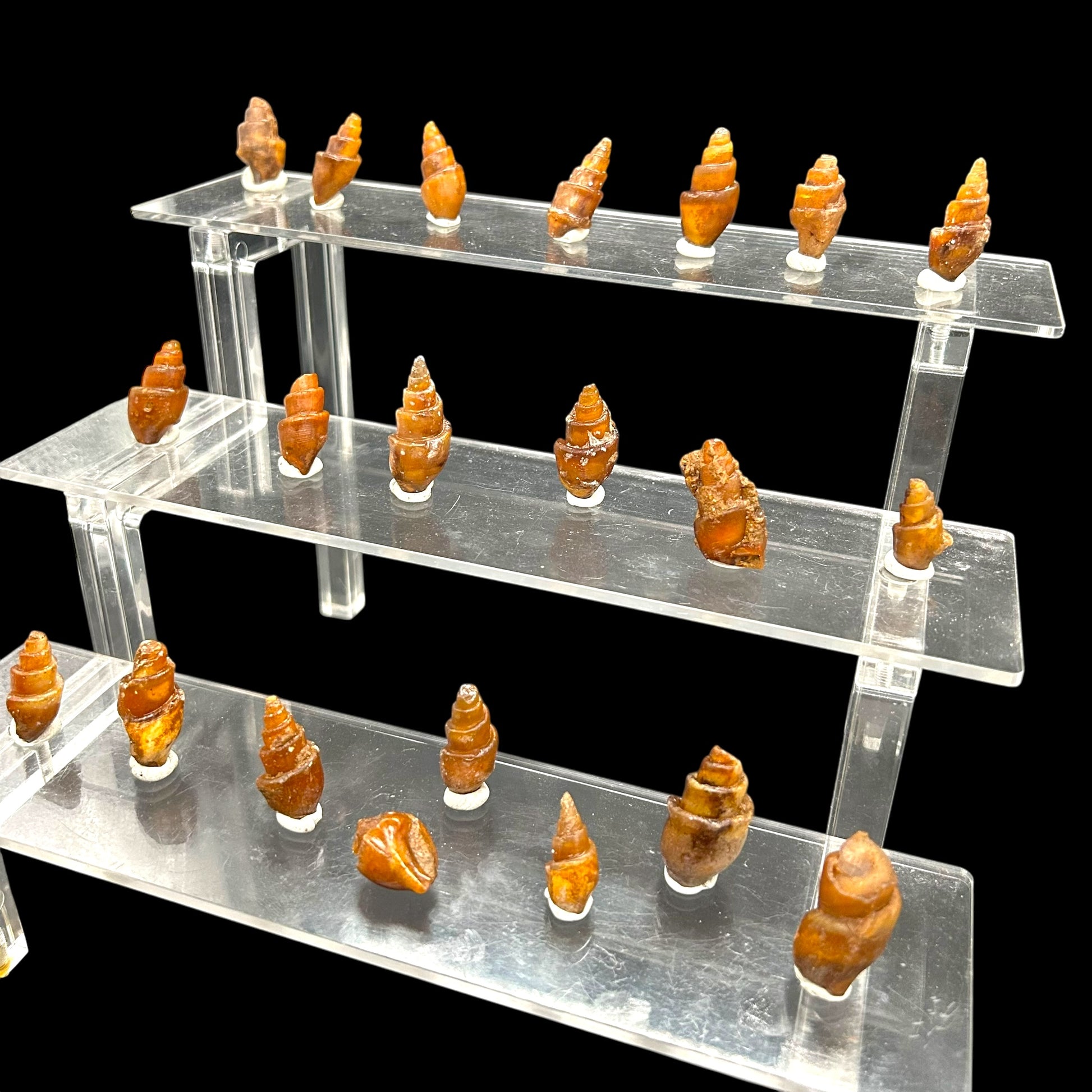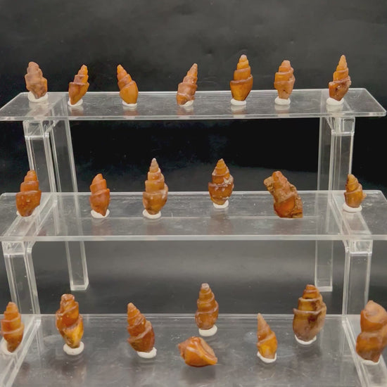 21 fossile Turitella-Schnecken aus der Westsahara, vollständig in Achat umgewandelt.