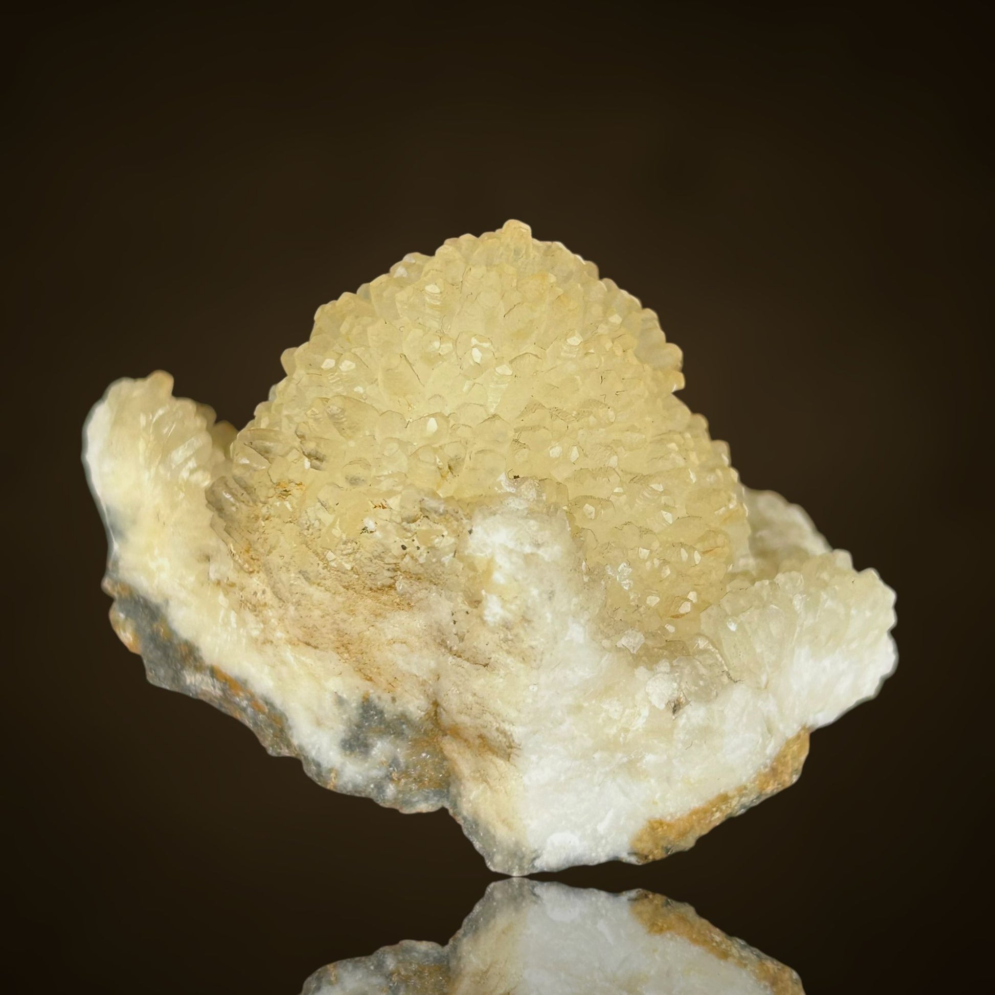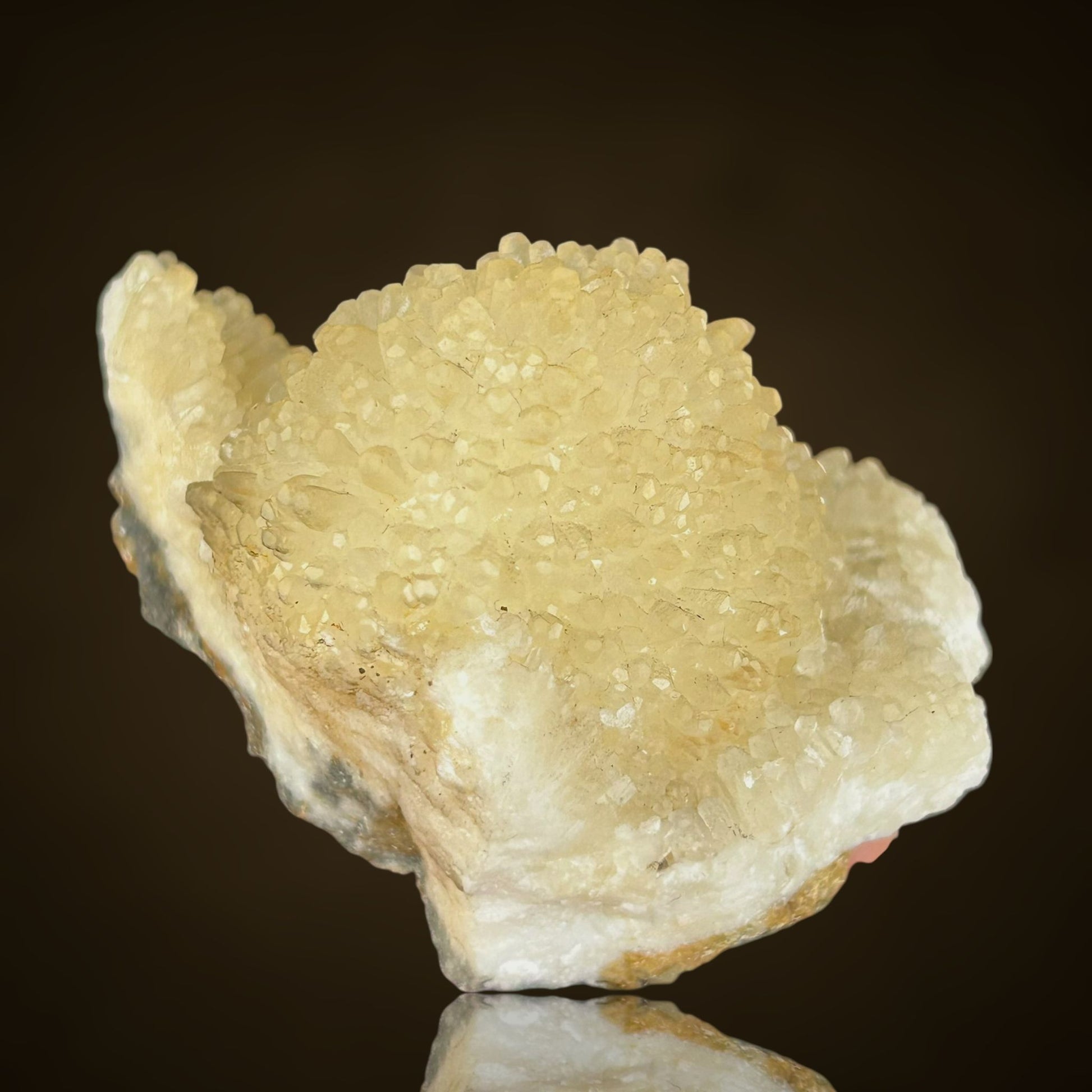 Igelartige Calcitkristall-Cluster aus endlosen, goldenen skalenoedrischen Kristallen mit glänzenden, funkelnden Flächen.