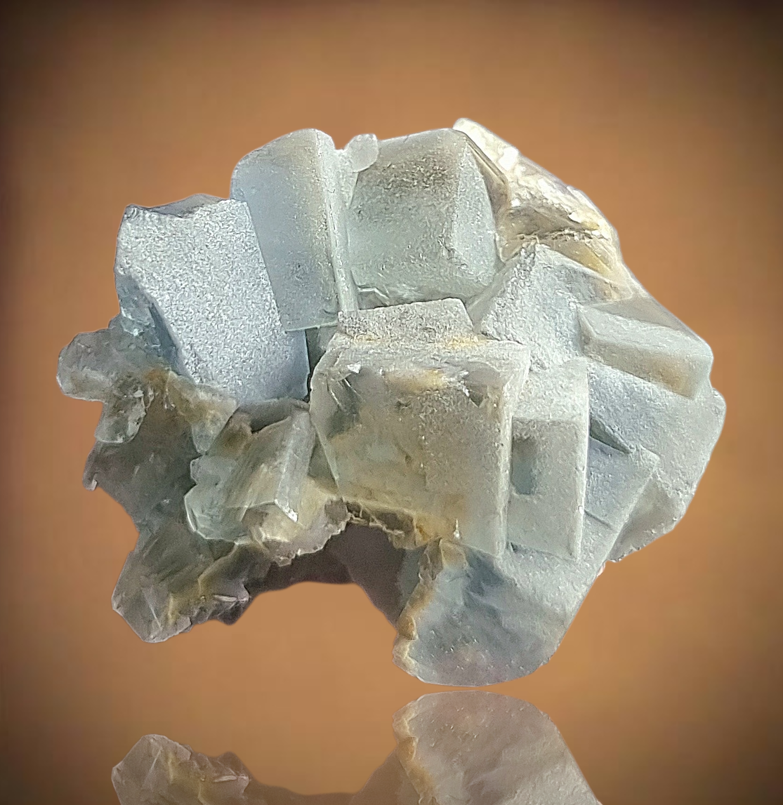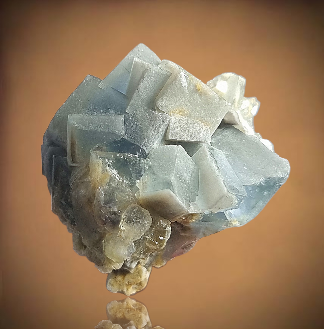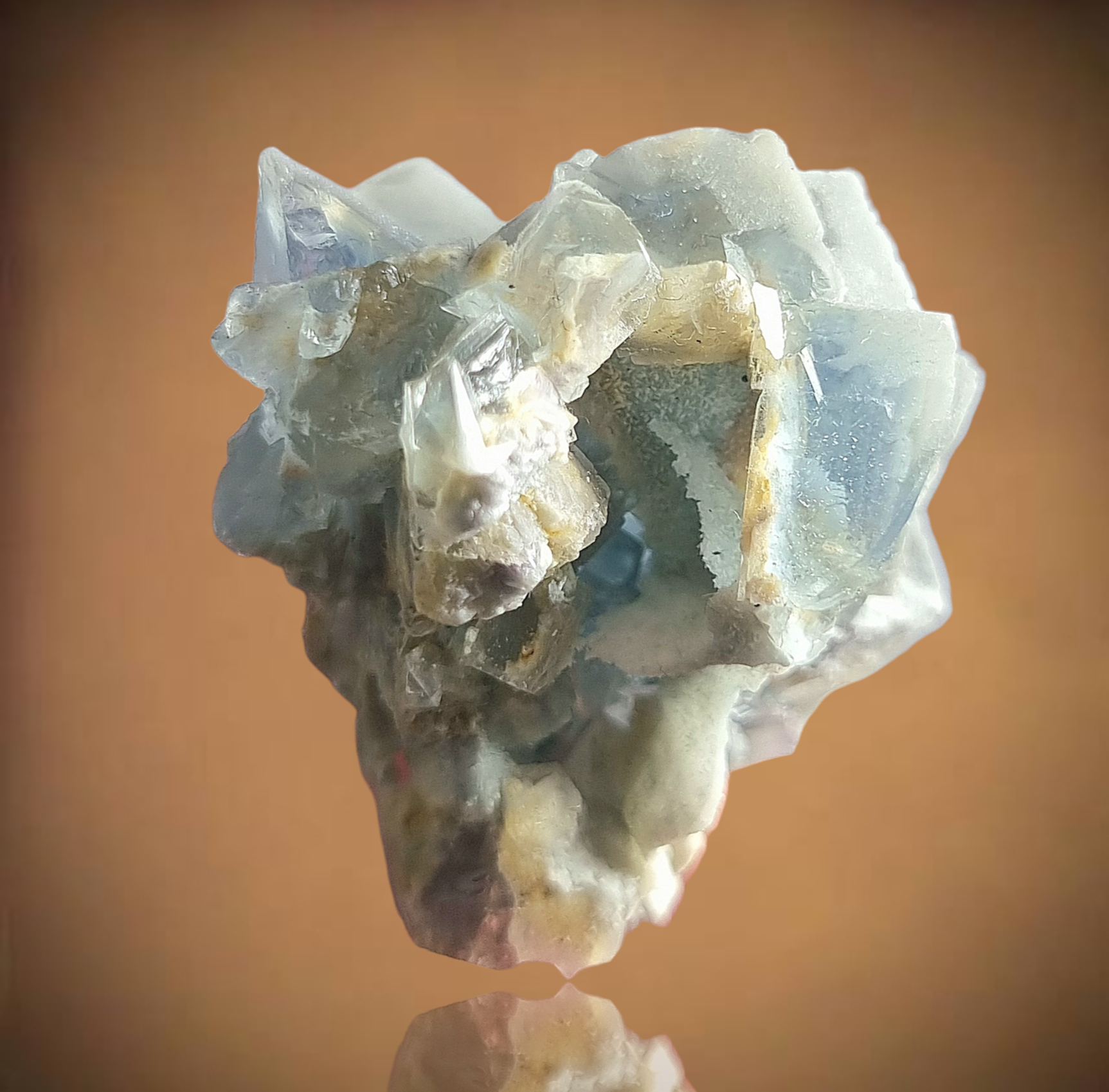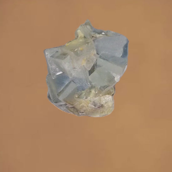 Wunderschöne polarblaue Fluoritkristalle, die attraktiv ineinander gestapelt sind.