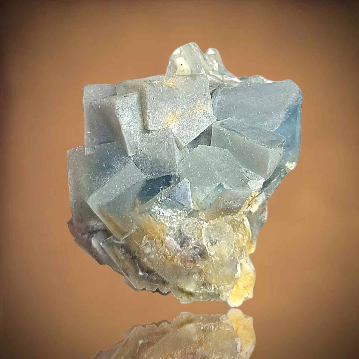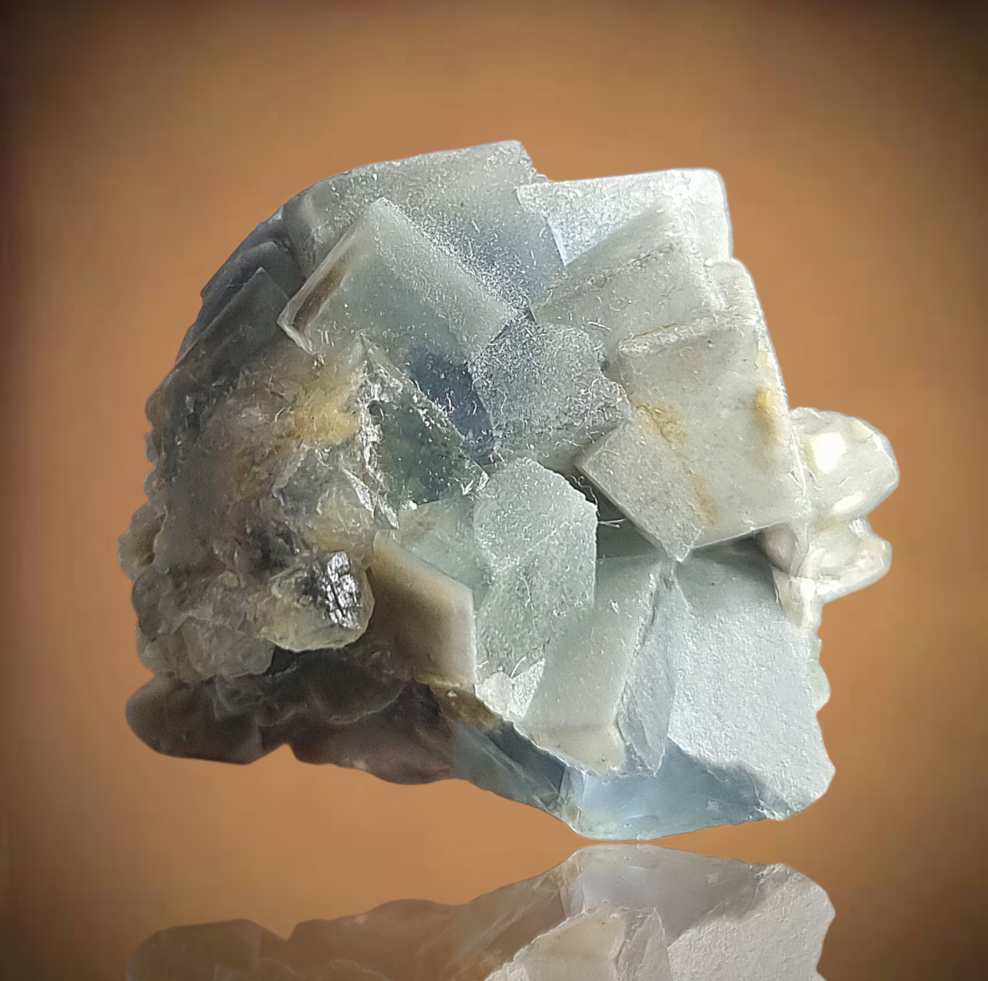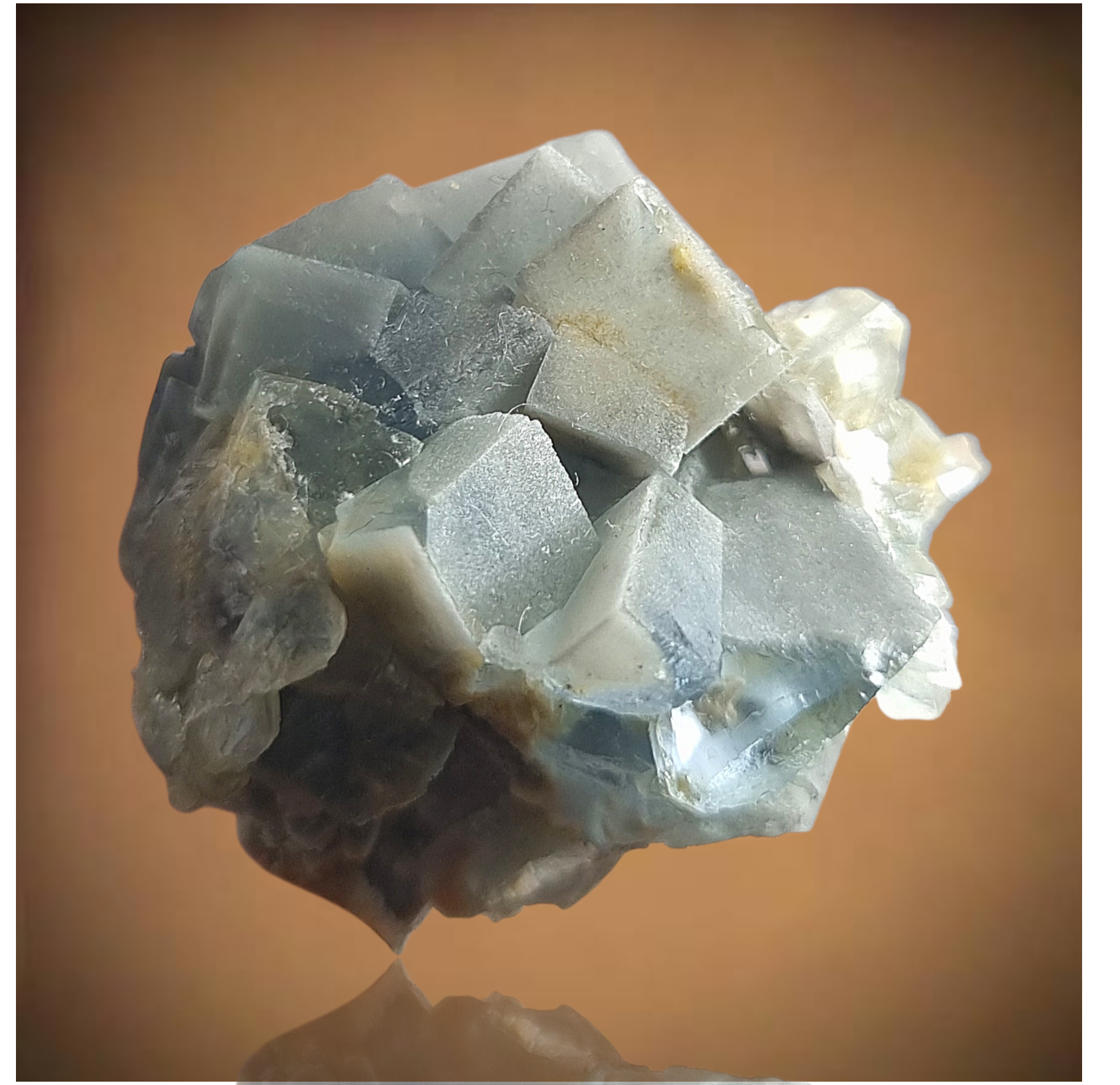 Wunderschöne polarblaue Fluoritkristalle, die attraktiv ineinander gestapelt sind.