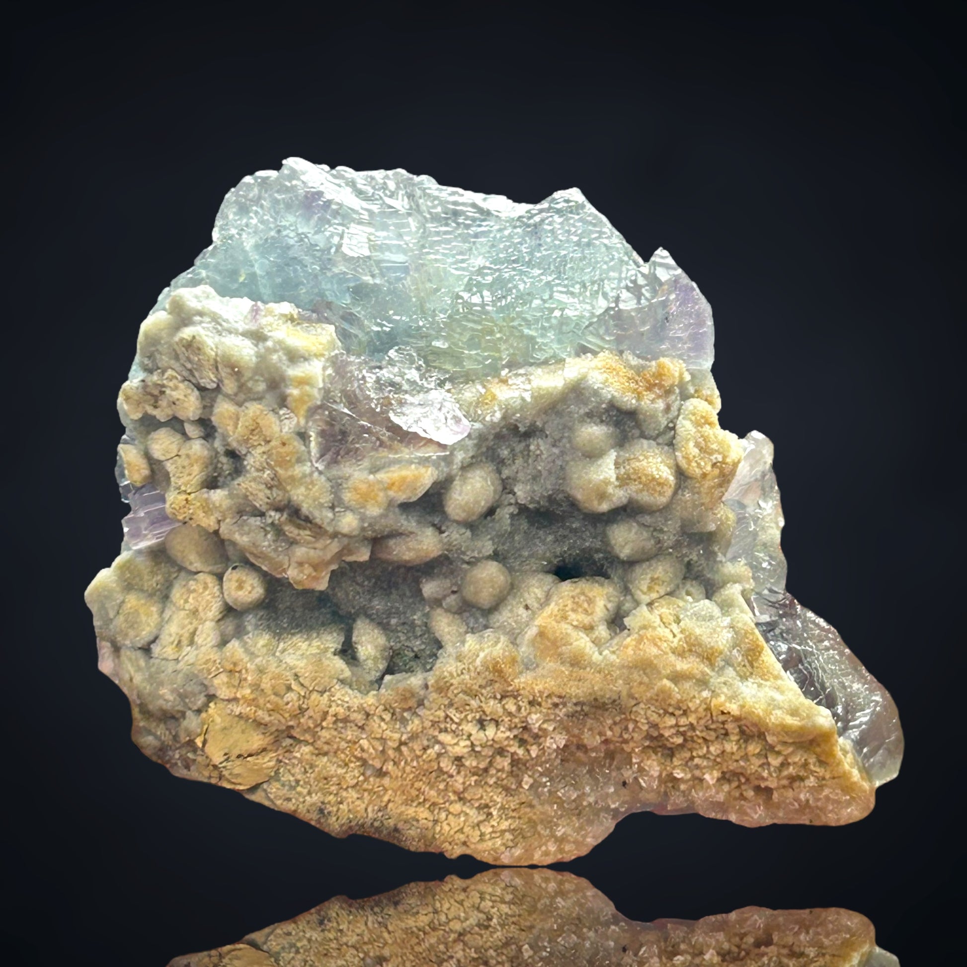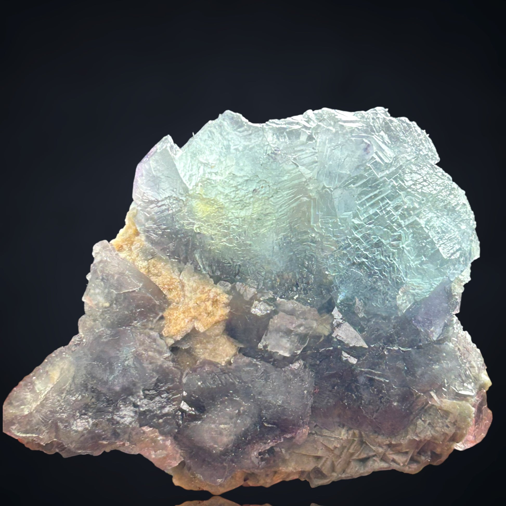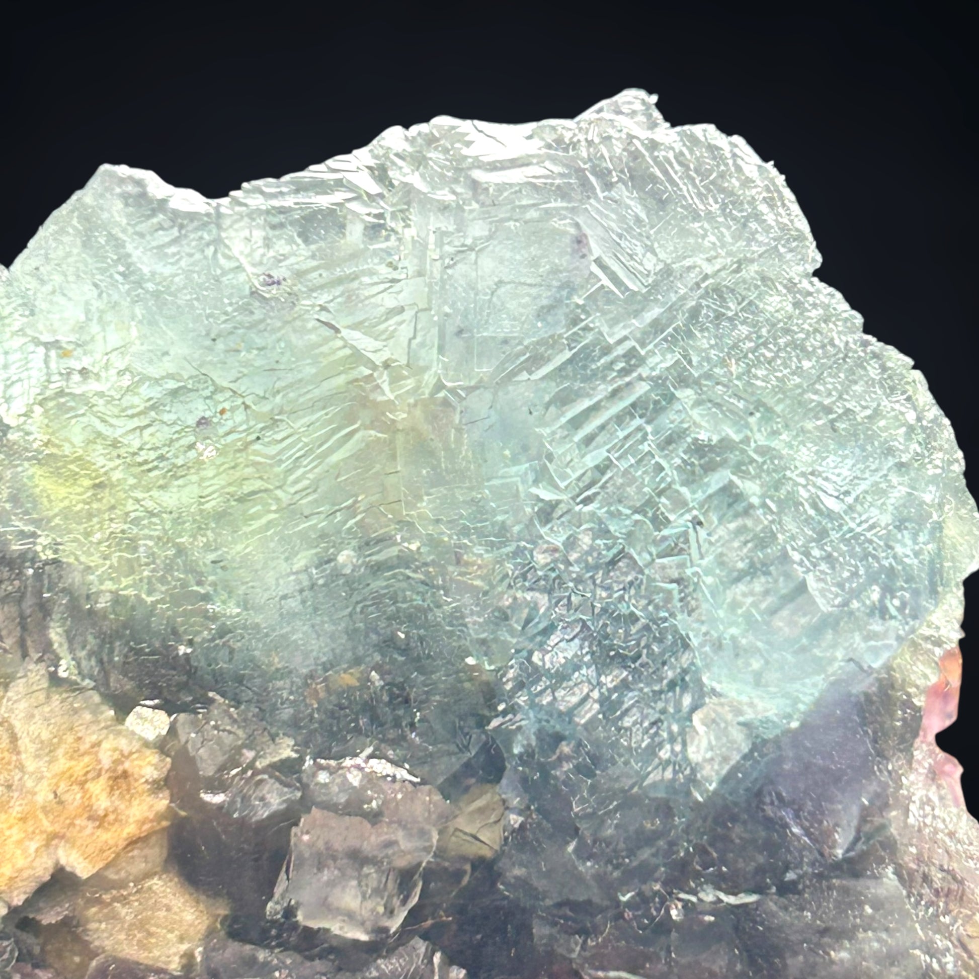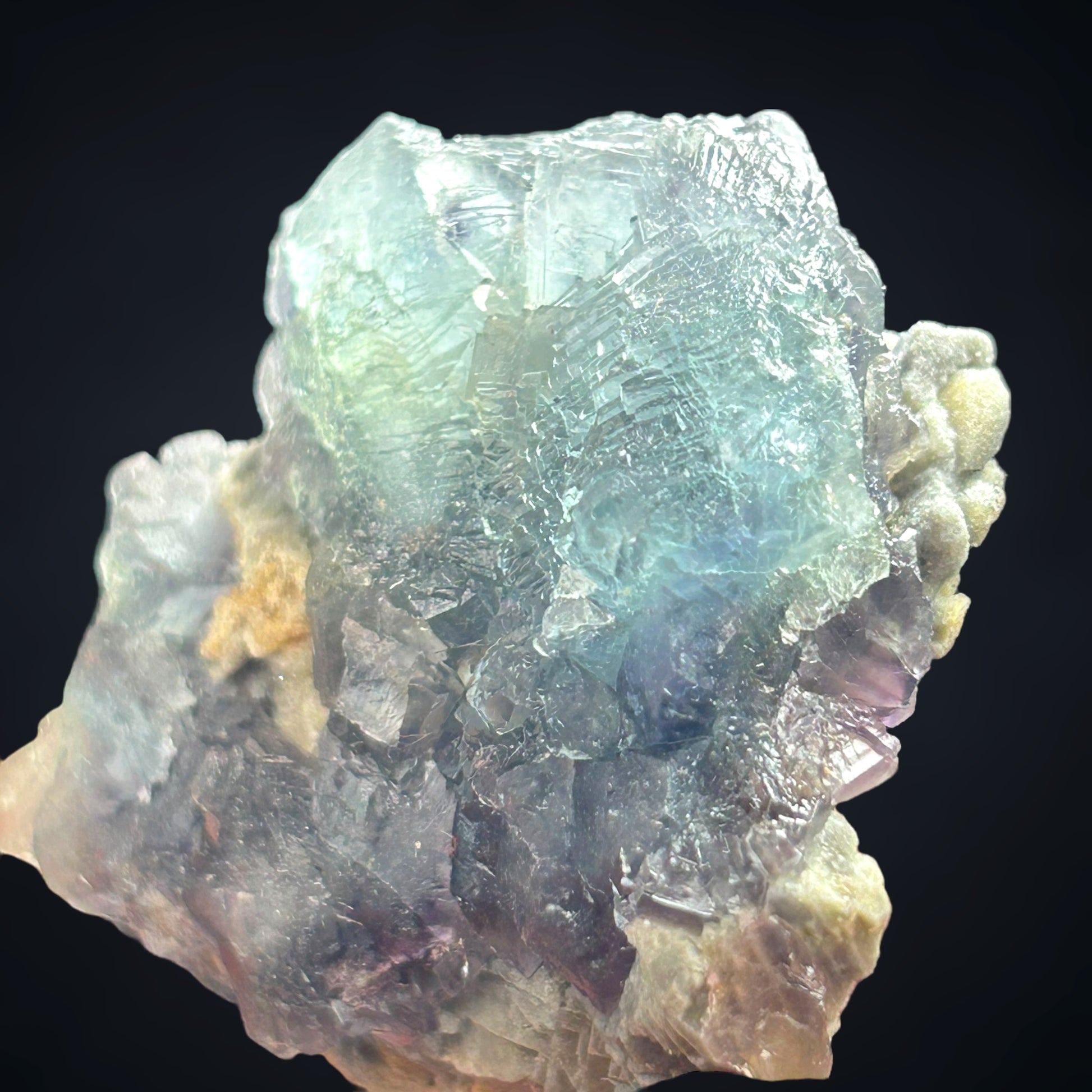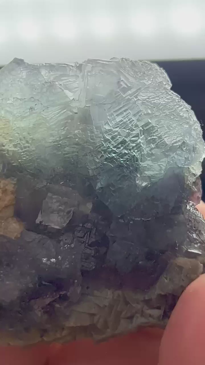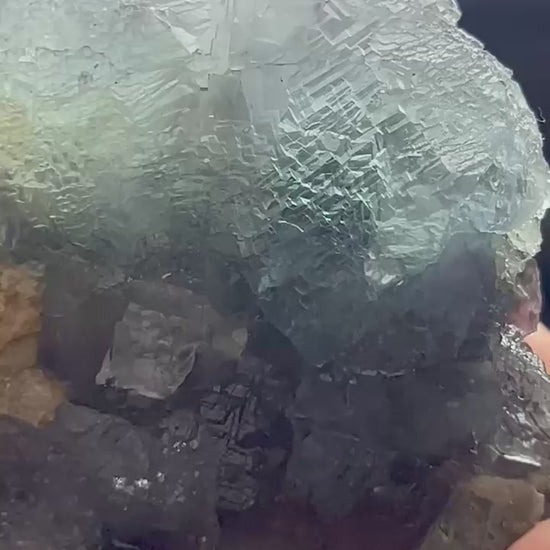 🇬🇧 Excellently crystallized, predominantly blue and transparent fluorite xx with some host rock.