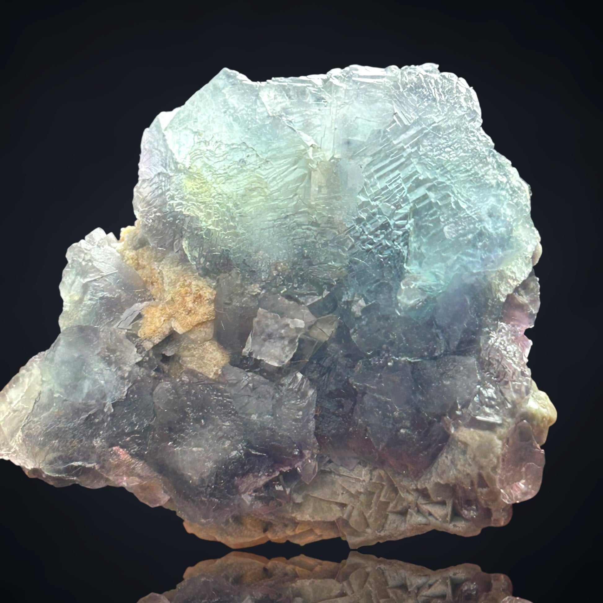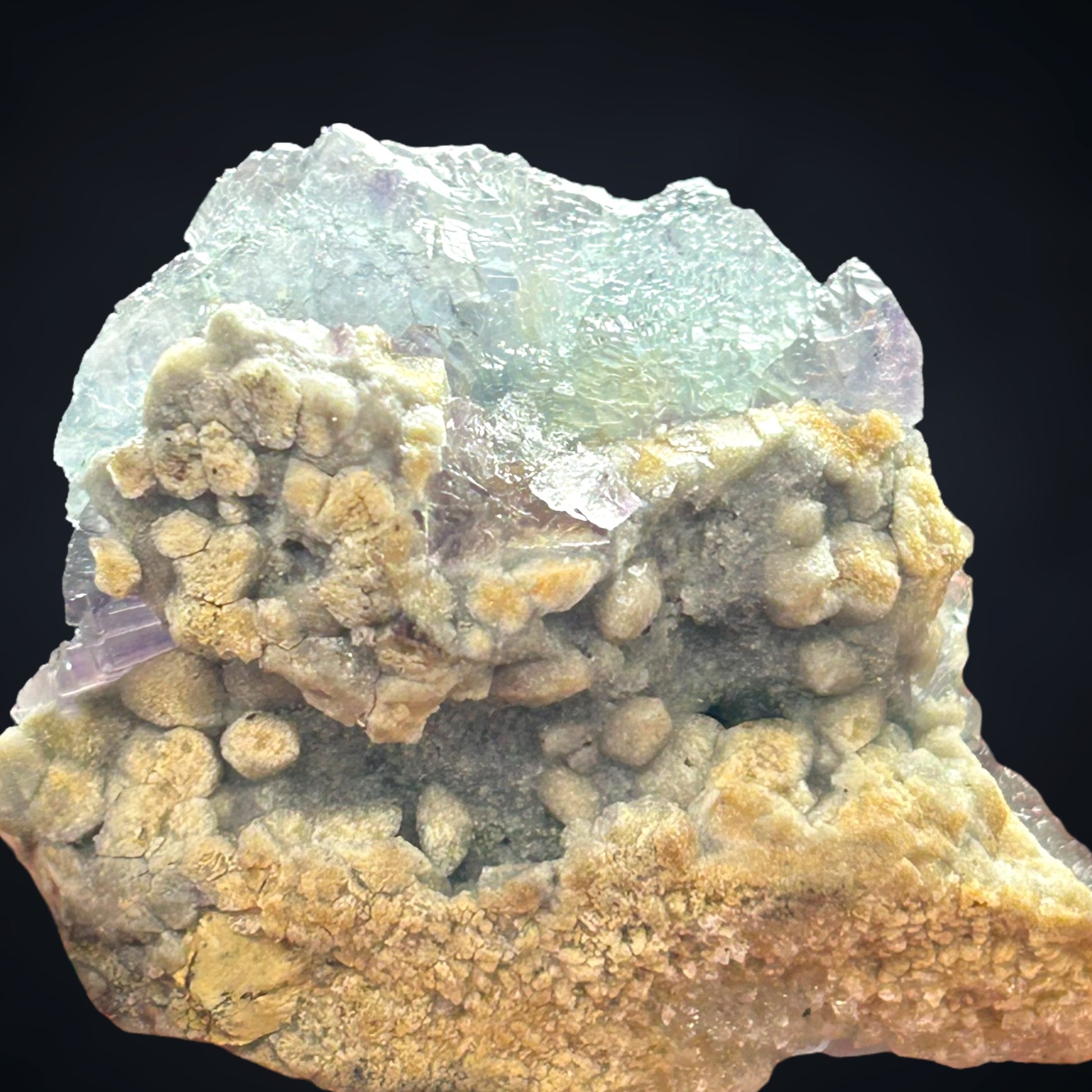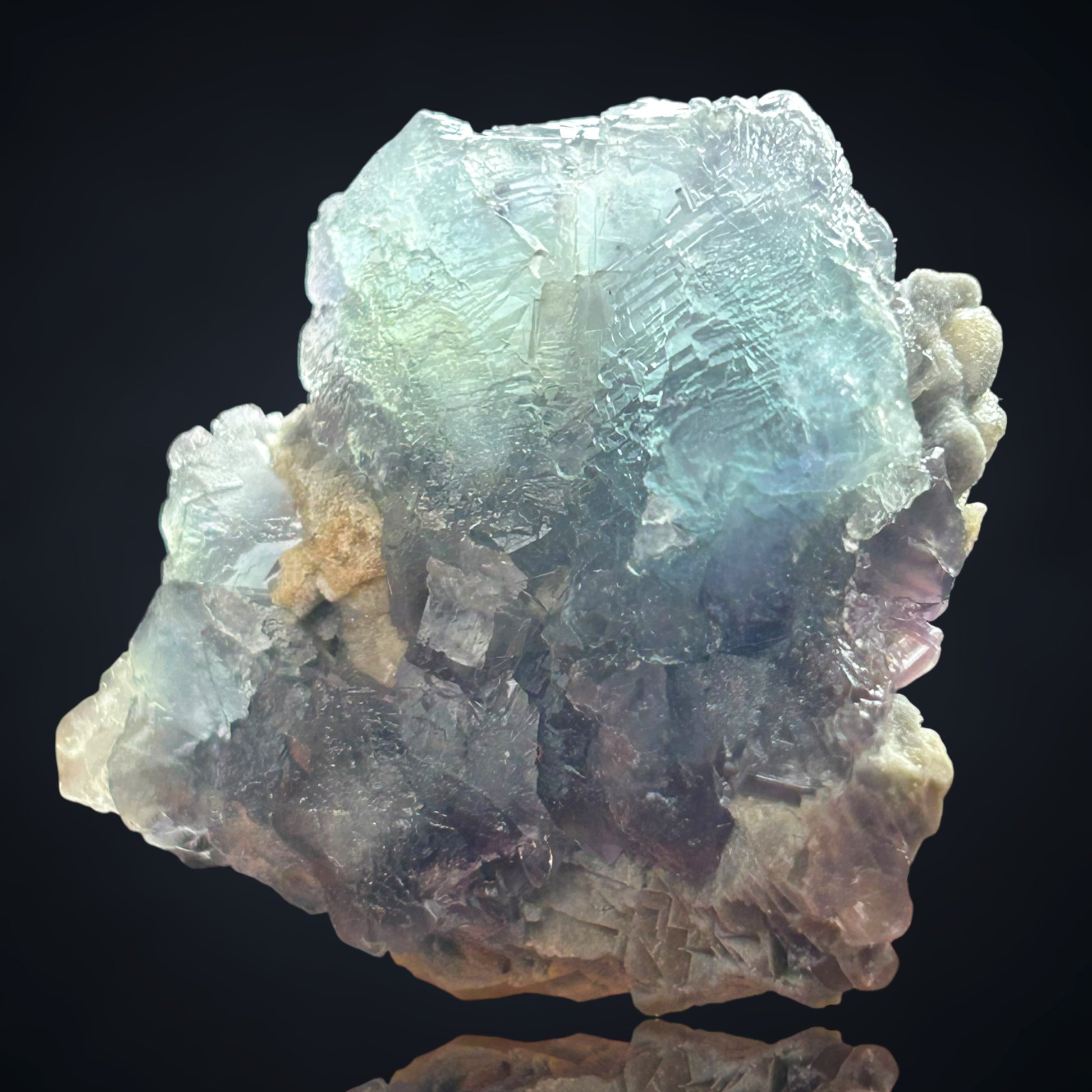 🇩🇪 Ganz hervorragend kristallisierte, vorrangig blaue und transparente Fluorit xx mit etwas Muttergestein.