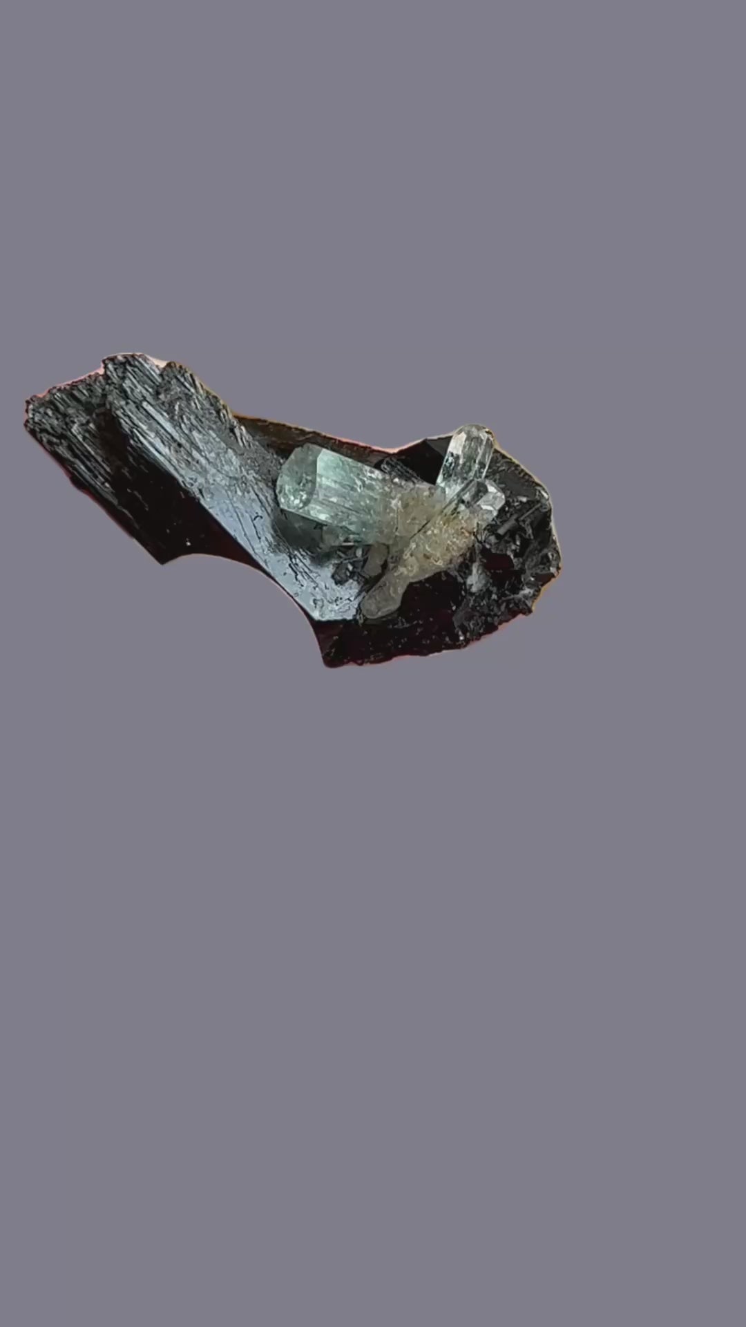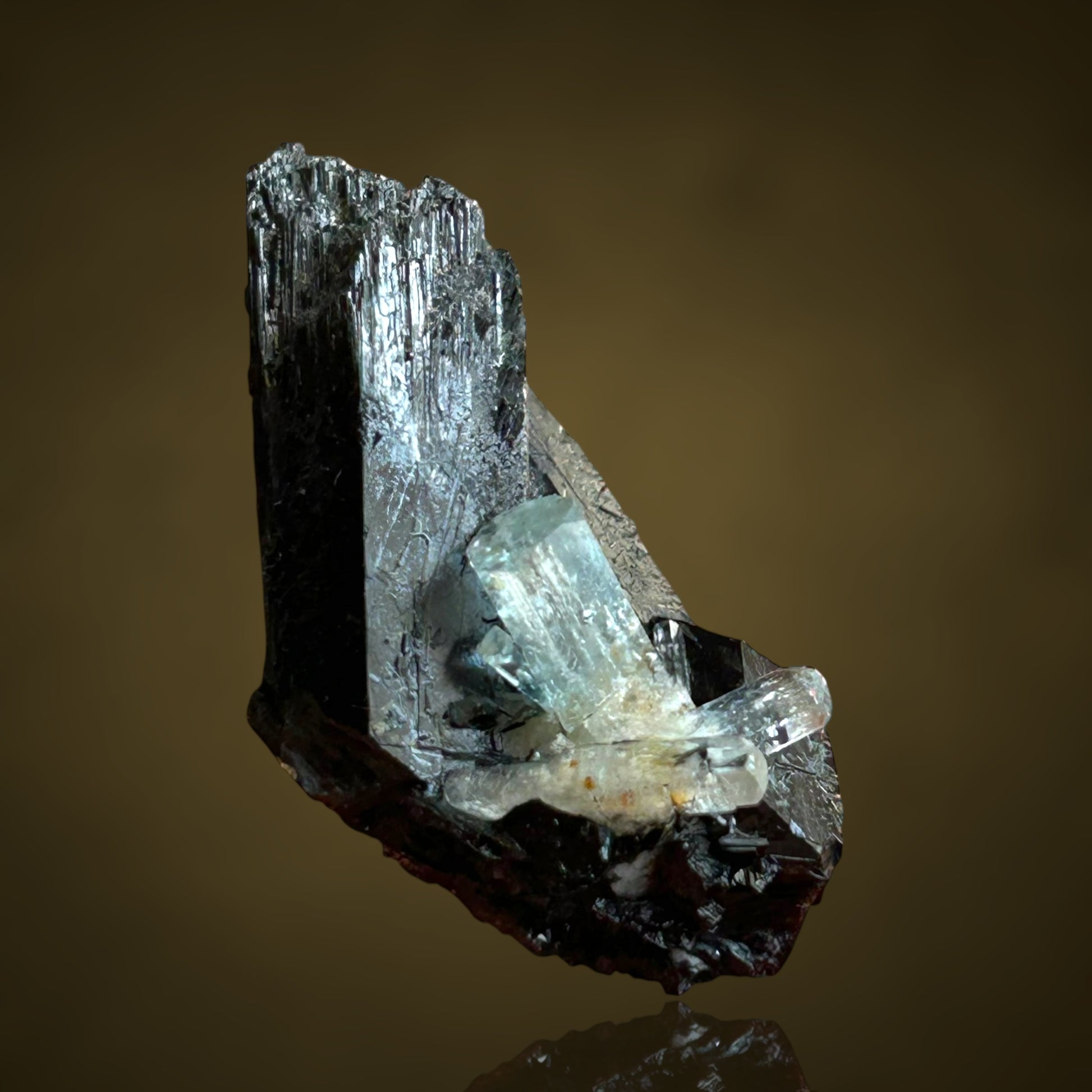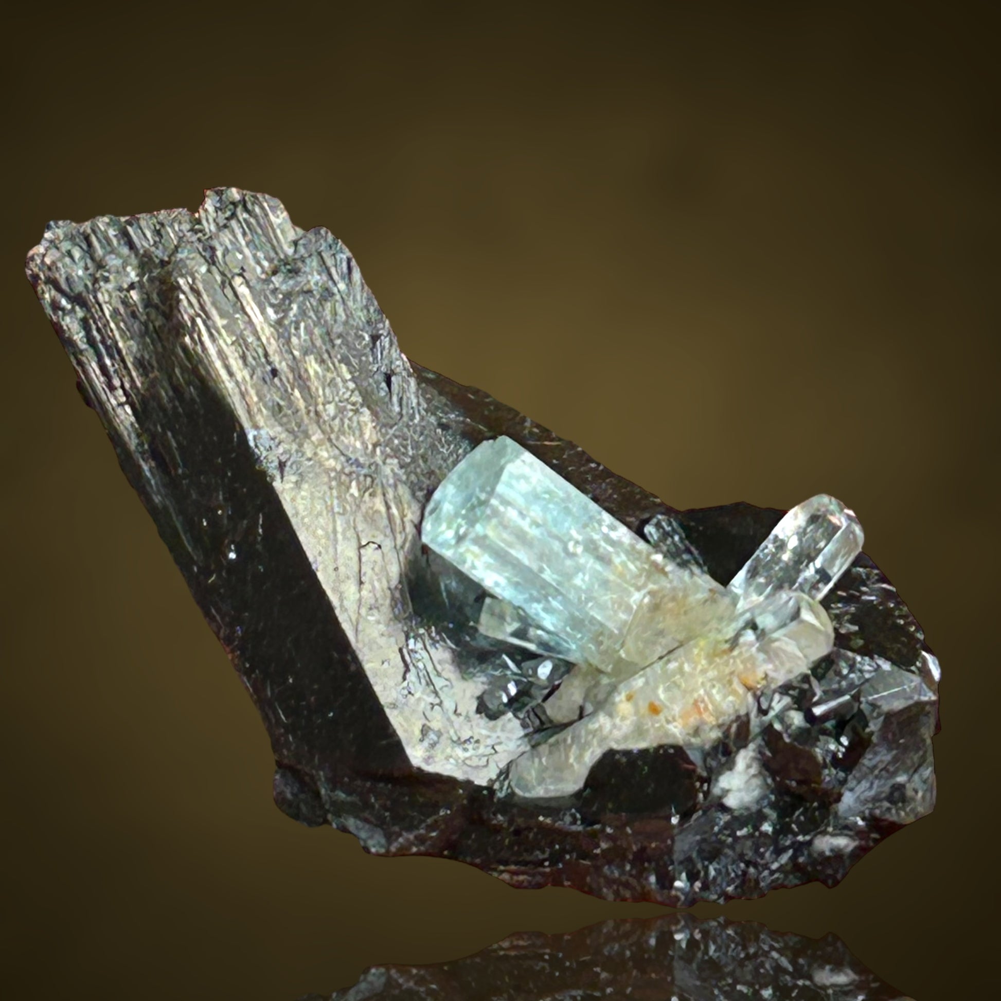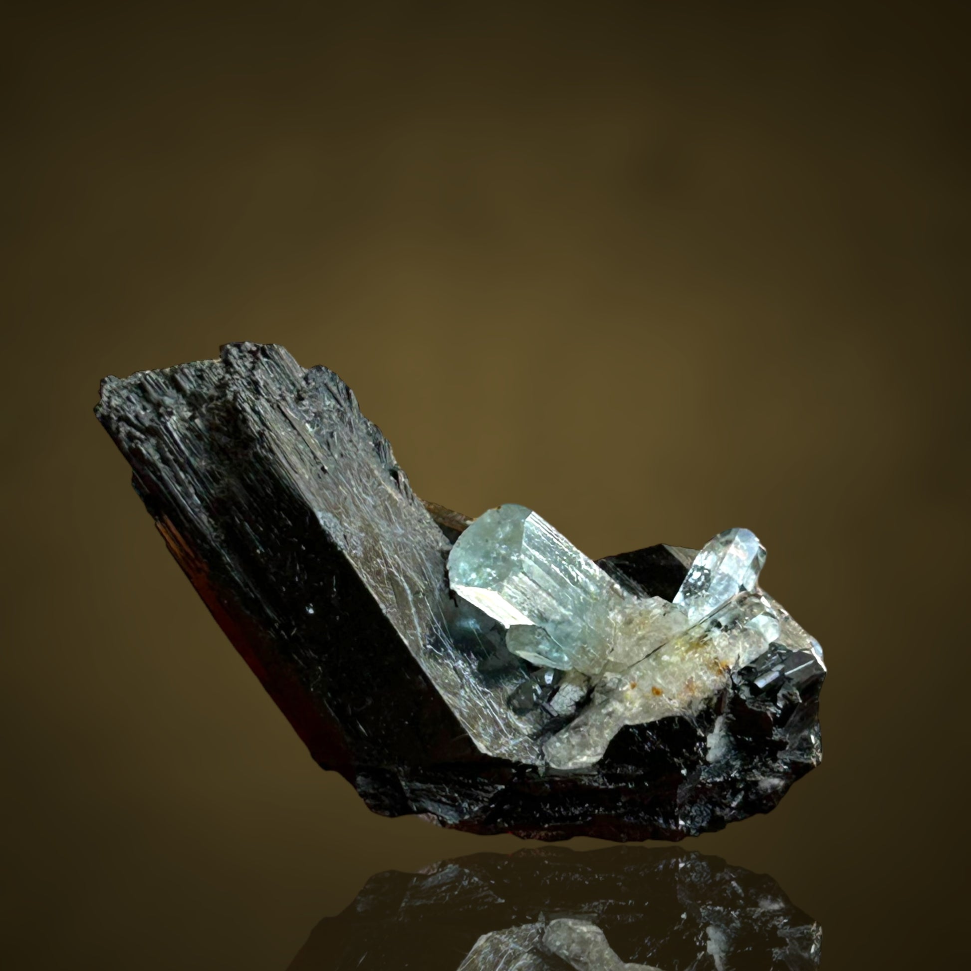 Wunderschöne makellose und gut gefärbte Aquamarinkristalle mit sehr guten Endfläche auf Schörl-Turmalin.