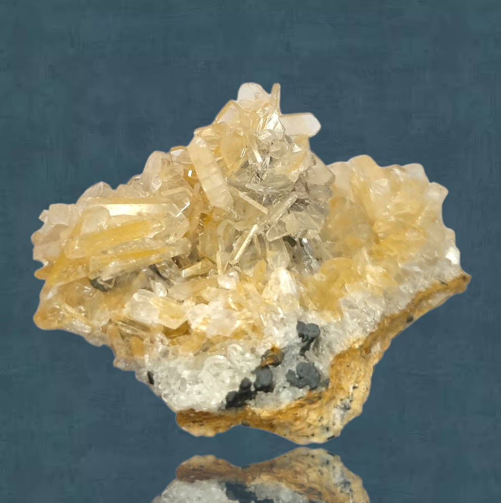 Wunderschöne wasserklare, tafelige Barytkristalle mit hohem Glanz, die attraktiv über die Stufe verteilt sind.