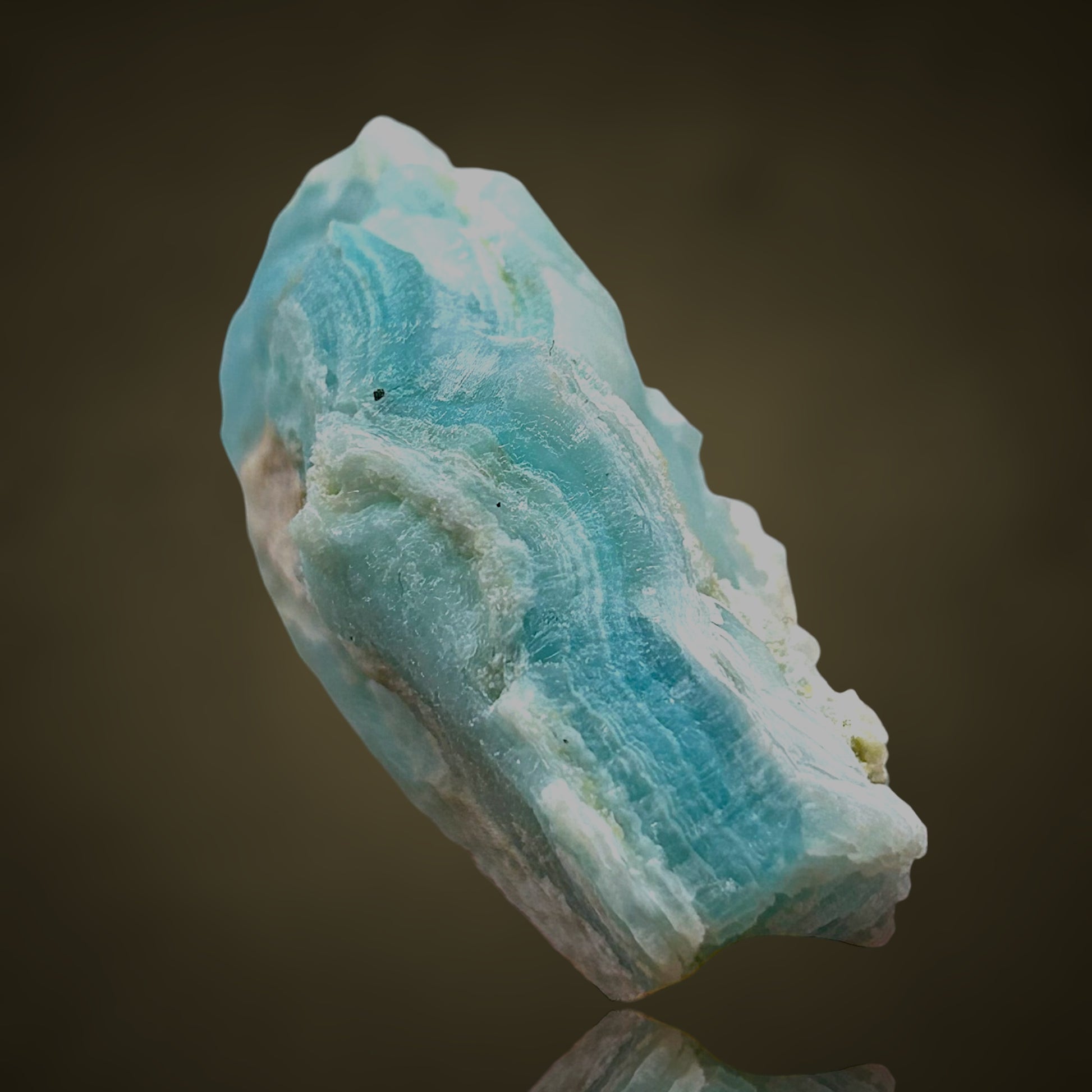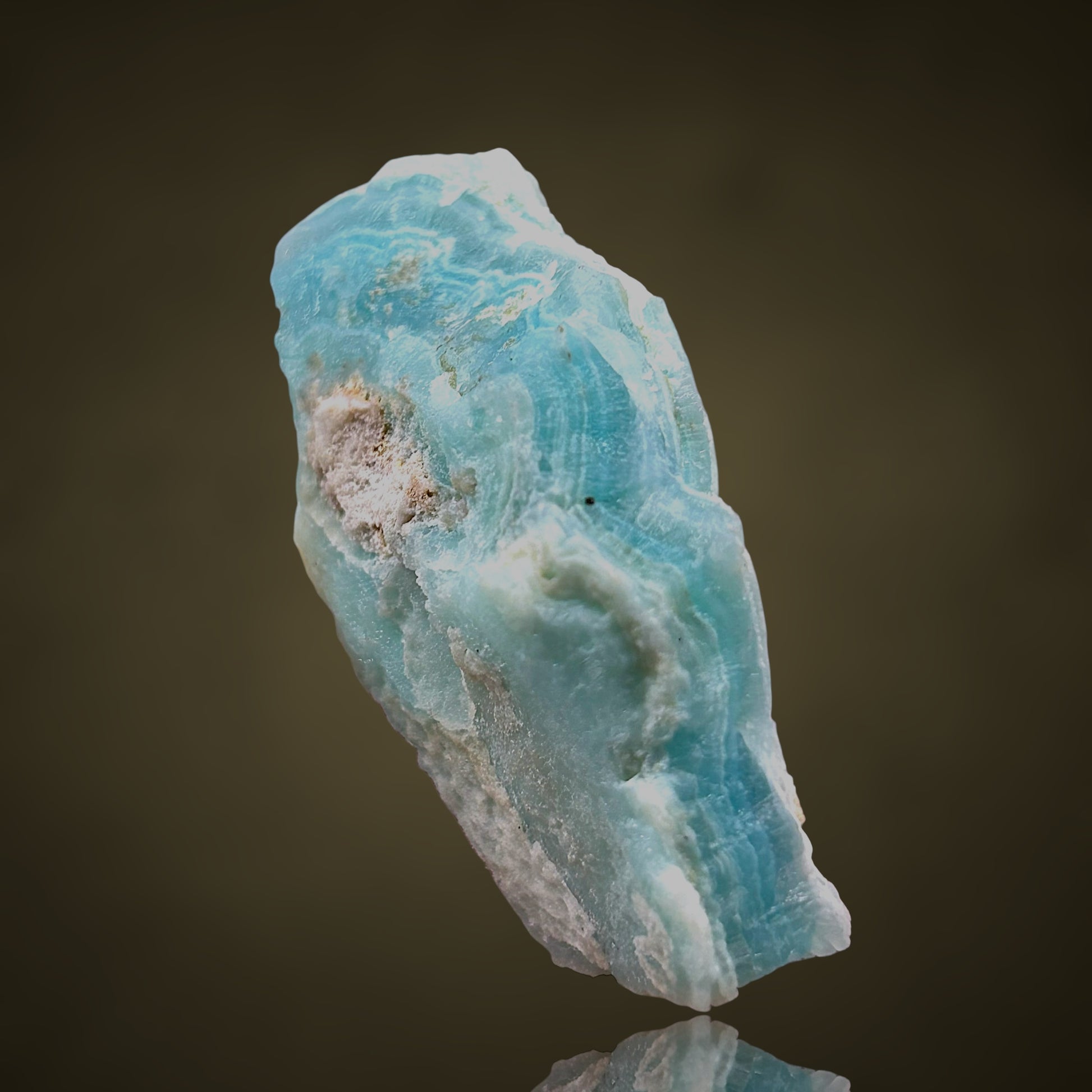 Besonders bemerkenswert sind die ausgeprägten Bänderungen des Smithsonits, die wunderschöne, lagunenblaue Farbabstufungen von zartem, hellem Türkis bis hin zu tieferen, satten Blautönen aufweisen. Diese ästhetische Zonierung, kombiniert mit der Herkunft, macht dieses Stück zu einem wahrhaft herausragenden Fundstück für diesen Ort und zu einem äußerst begehrten Sammlerstück.