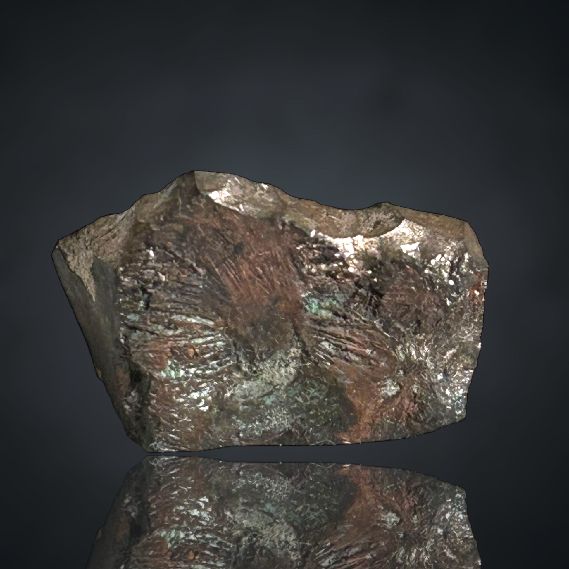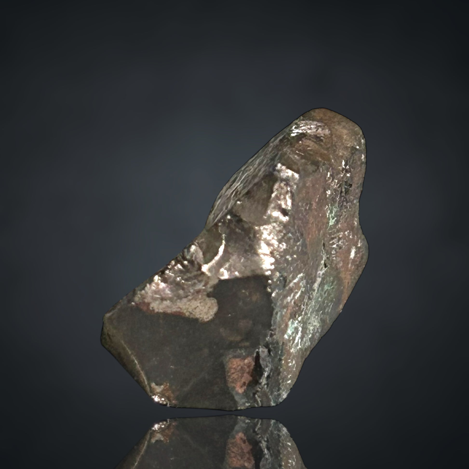 Extrem seltener Danbait (CuZn₂) aus Helbra/Eisleben, Mansfelder Bergbaurevier, Sachsen-Anhalt, Deutschland. Kompaktes metallisches Stück mit den Maßen 2,7 × 2,2 × 1,5 cm. Eines von nur drei jemals von diesem Fundort gemeldeten Stücken, von denen sich zwei in meinem Besitz befinden.