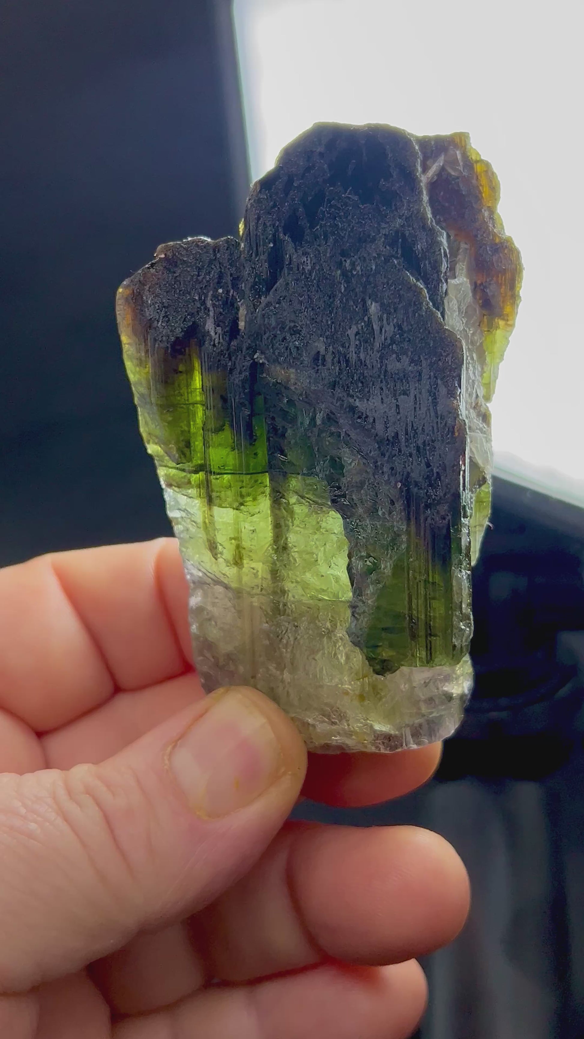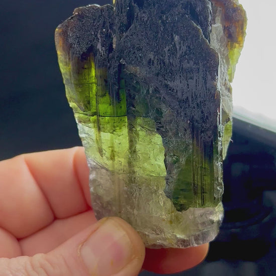 Ein wahrhaft massiver Elbait-Kristall mit dunklen Endflächen und hervorragenden, gemmy Zonen, die sich zum Schleifen eignen. Größe und Klarheit dieser Art sind ungewöhnlich und machen dieses Stück sowohl zu einem Sammlerstück als auch zu einer potenziellen Quelle für exzellente Edelsteine.