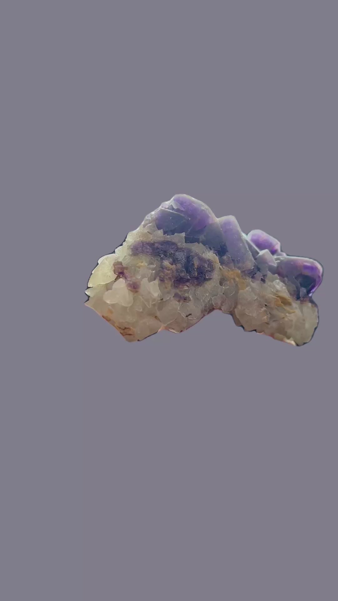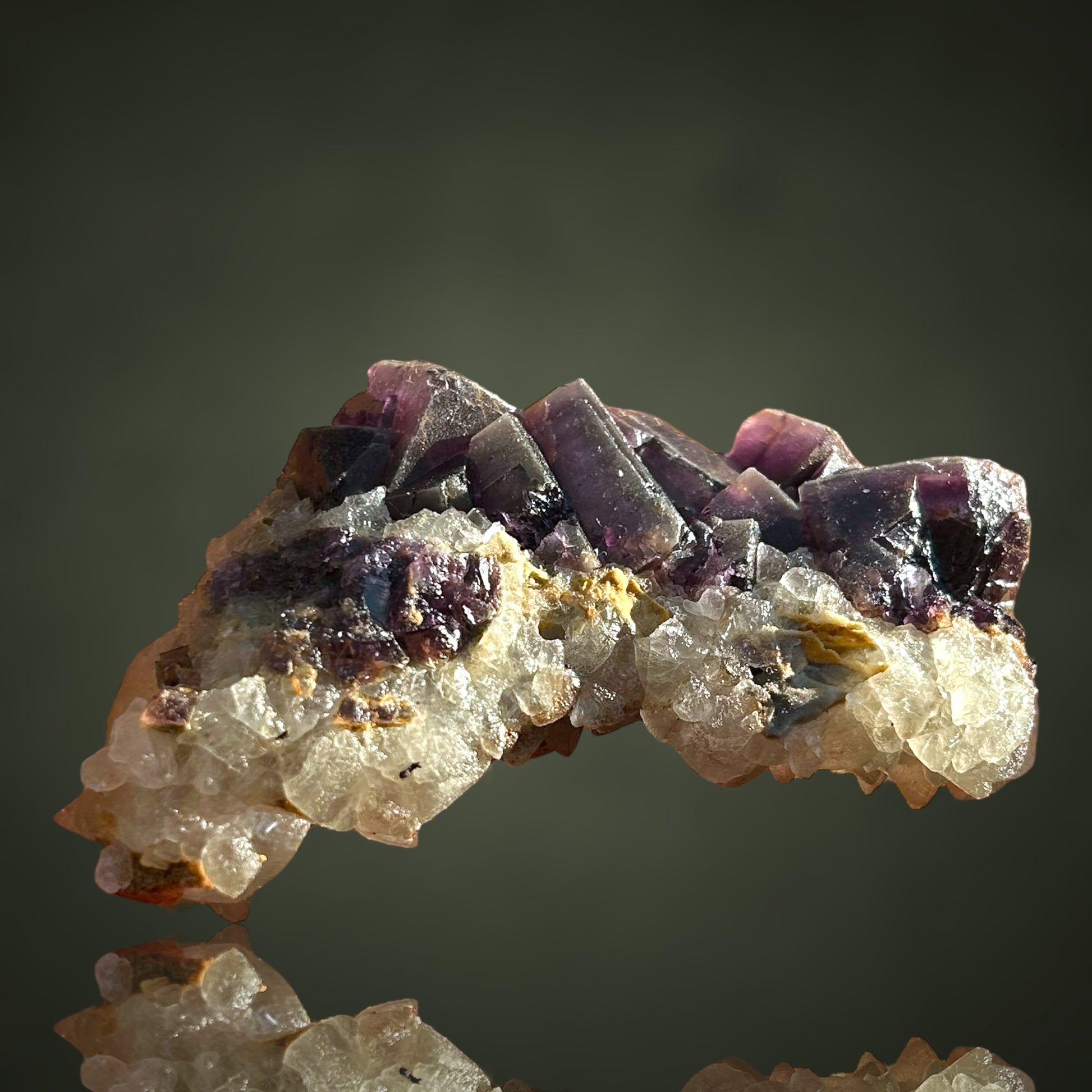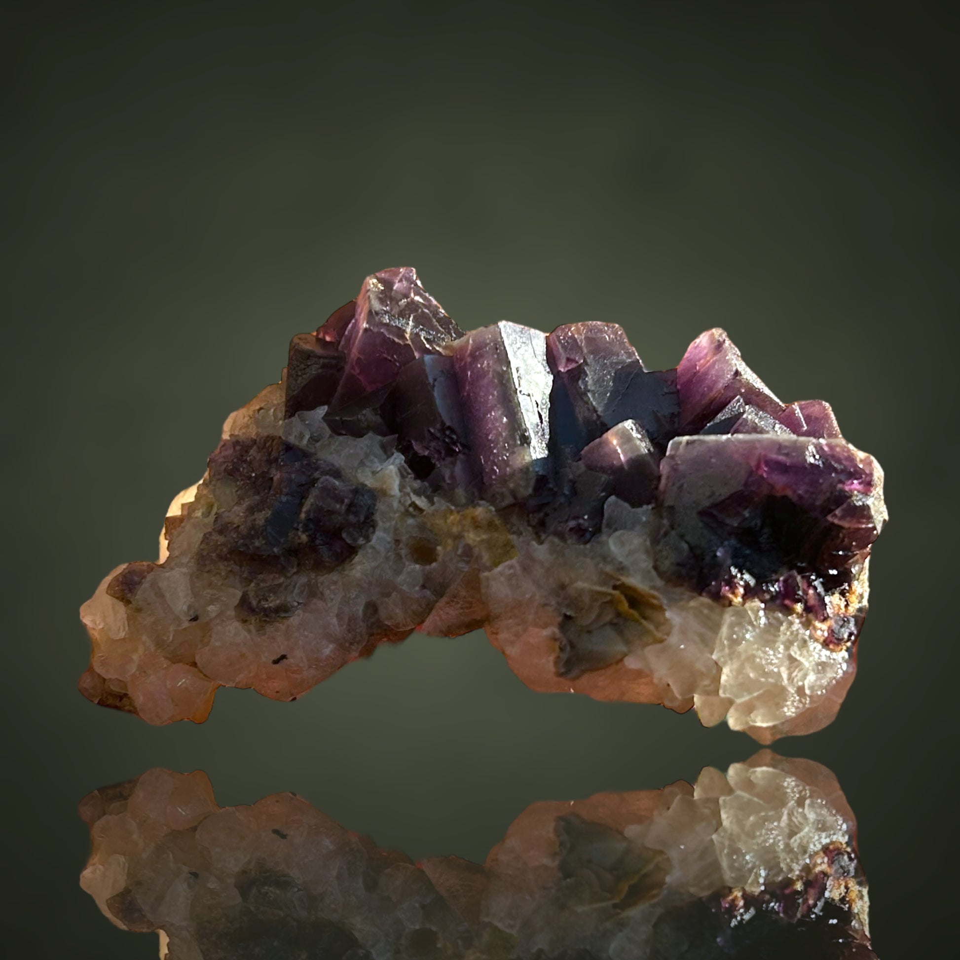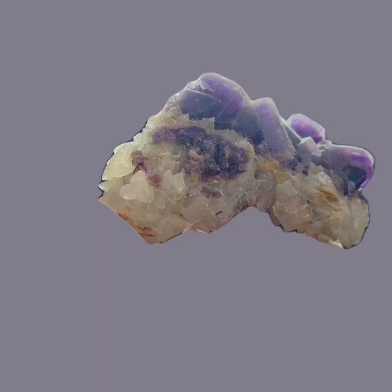 Violette Fluorit xx auf Calcit aus der Gipfelkluft auf ca. 2700 m, aus dem Permafrost.