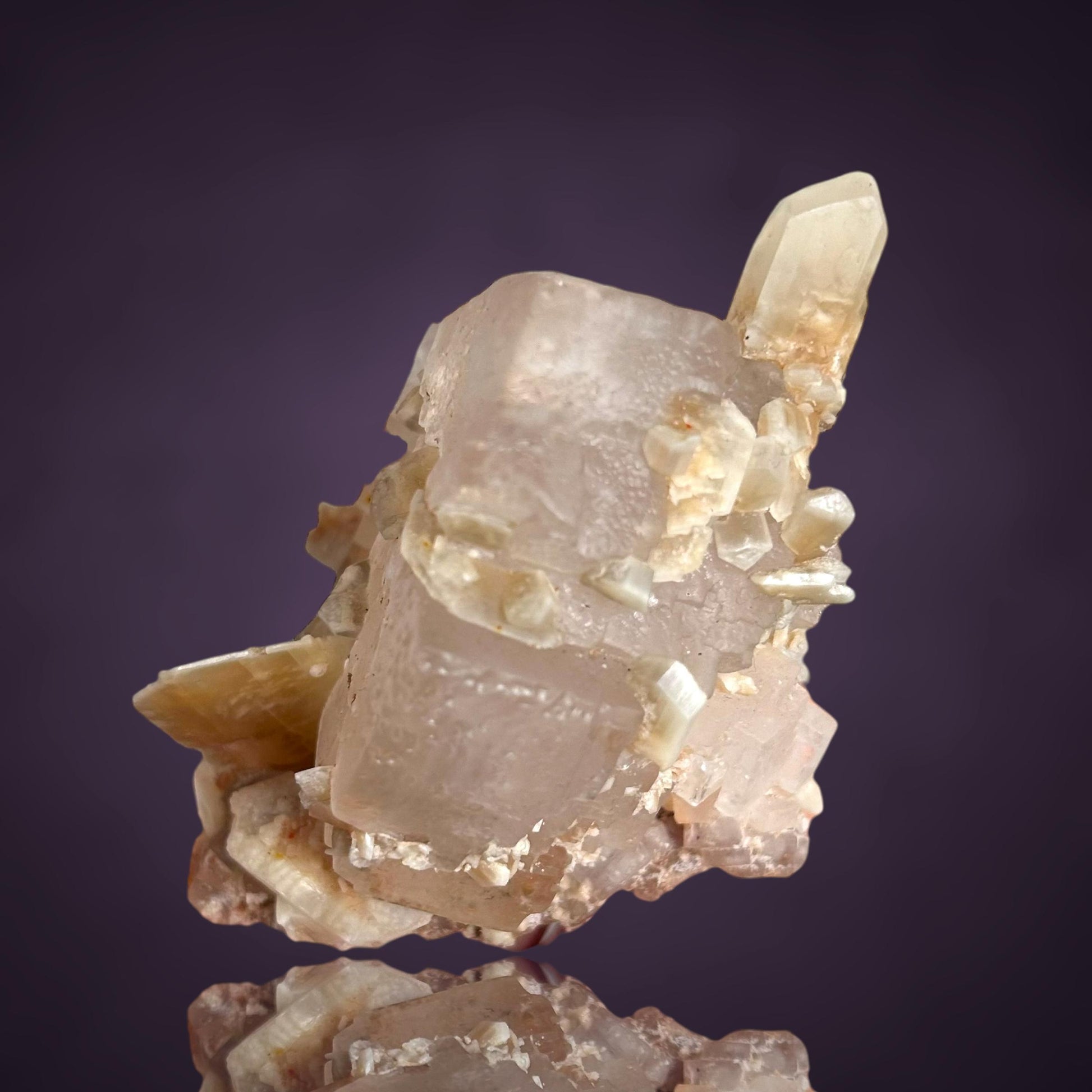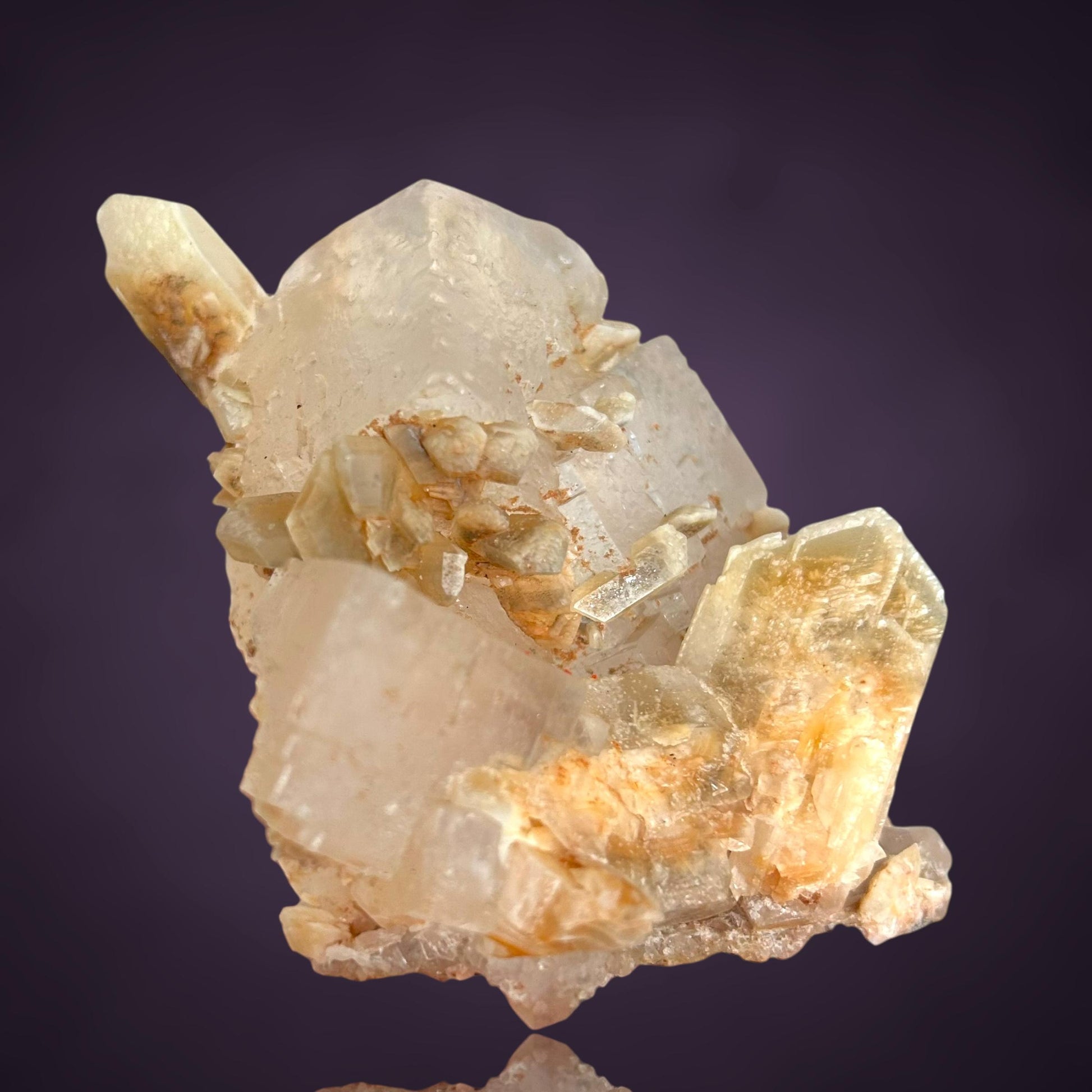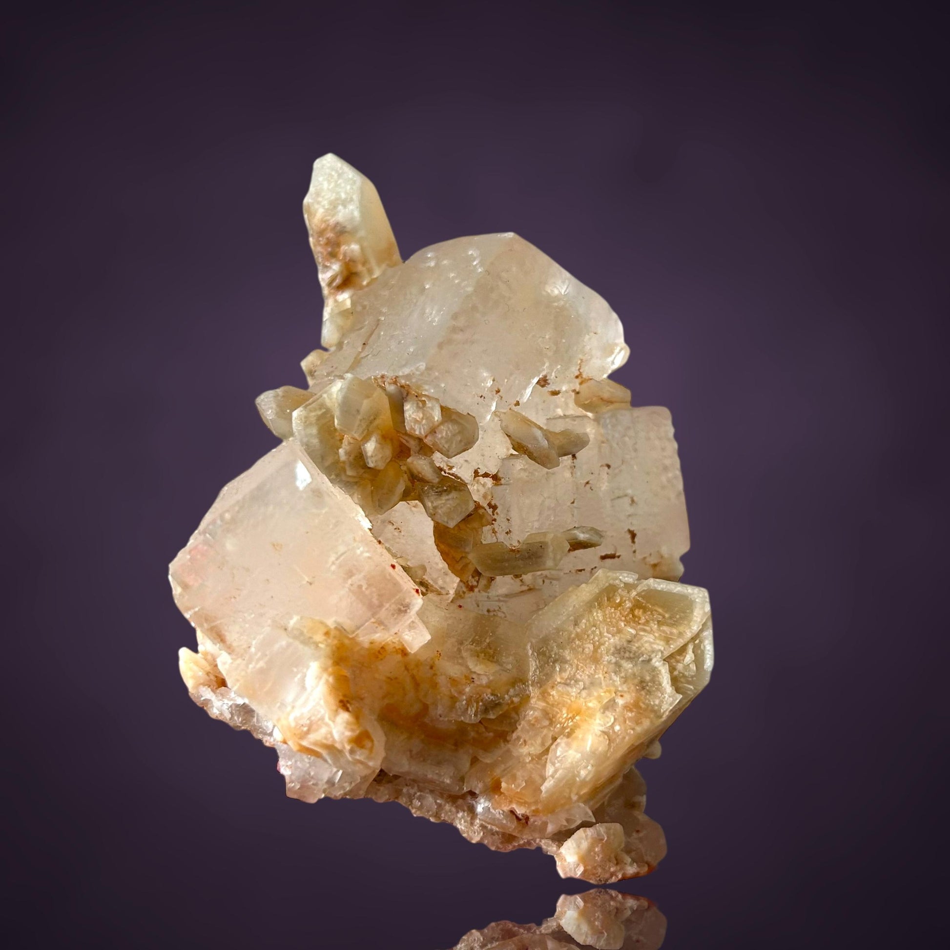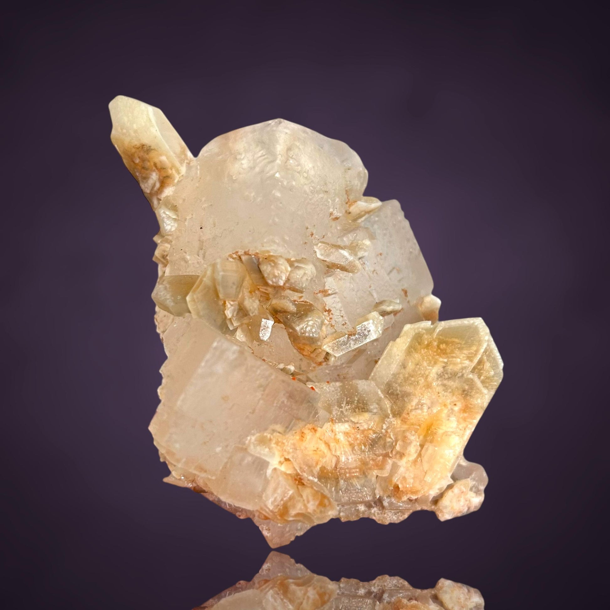 Mangangehalte im Halit verursachen unter UV-Licht eine intensive rot-orange Fluoreszenz, die durch die honigfarbenen Gips-Kristalle auf der Halit-Matrix noch verstärkt wird. Dadurch sind diese seltenen Stufen aus der versiegelten Kristallkammer bei Sammlern sehr begehrt.