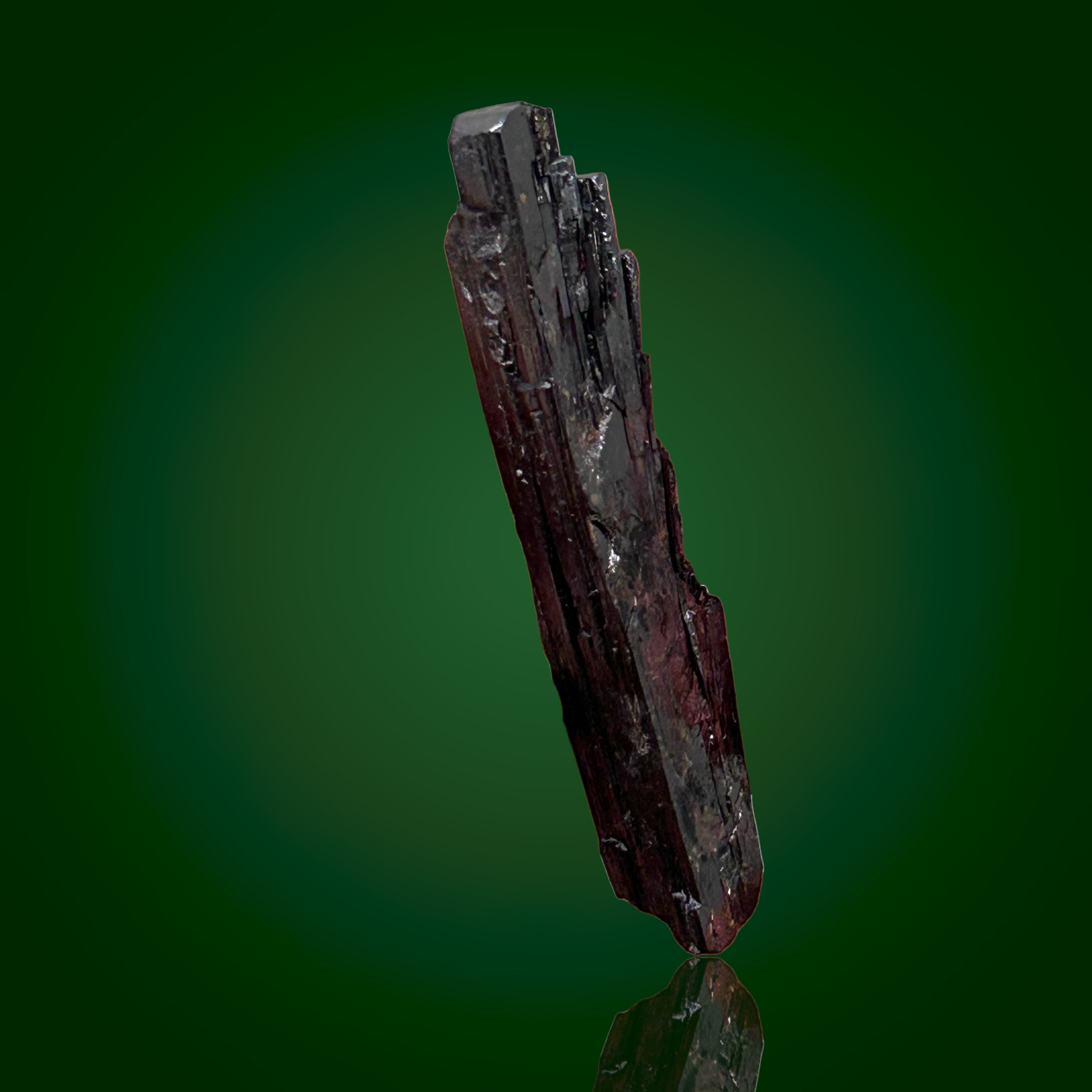 Seine langgestreckte Wuchsform und die lebhaften inneren Reflexionen erzeugen einen bemerkenswerten visuellen Effekt, insbesondere bei Beleuchtung aus verschiedenen Winkeln.
