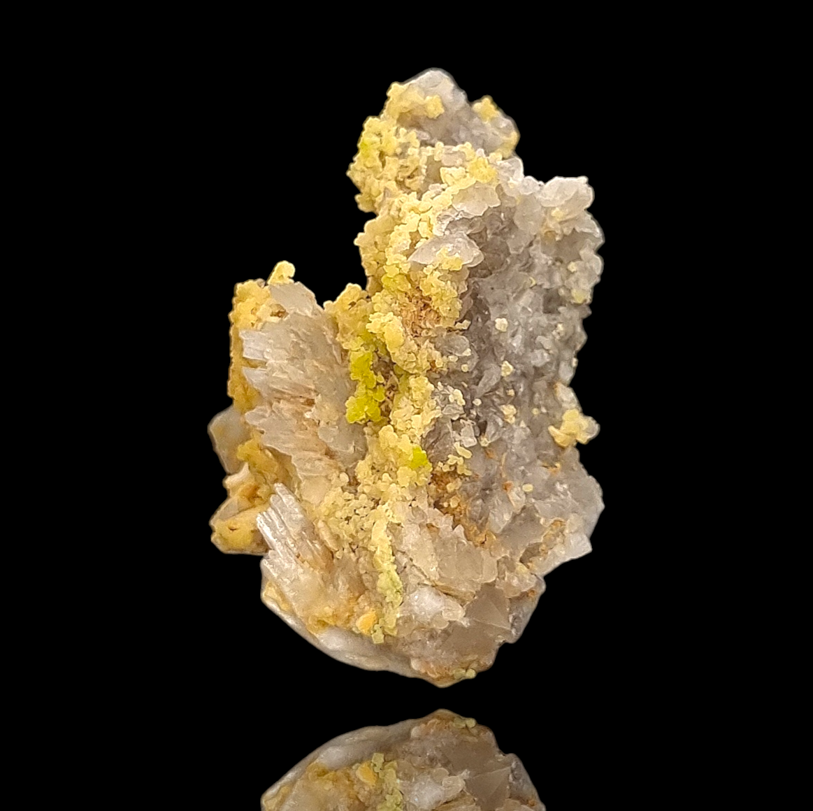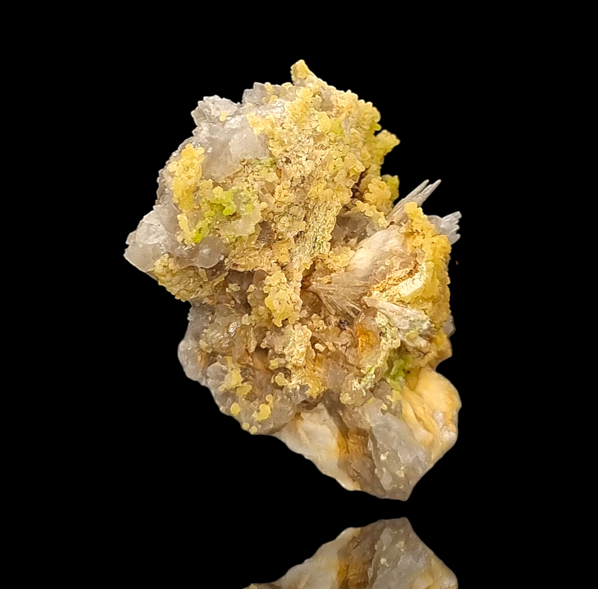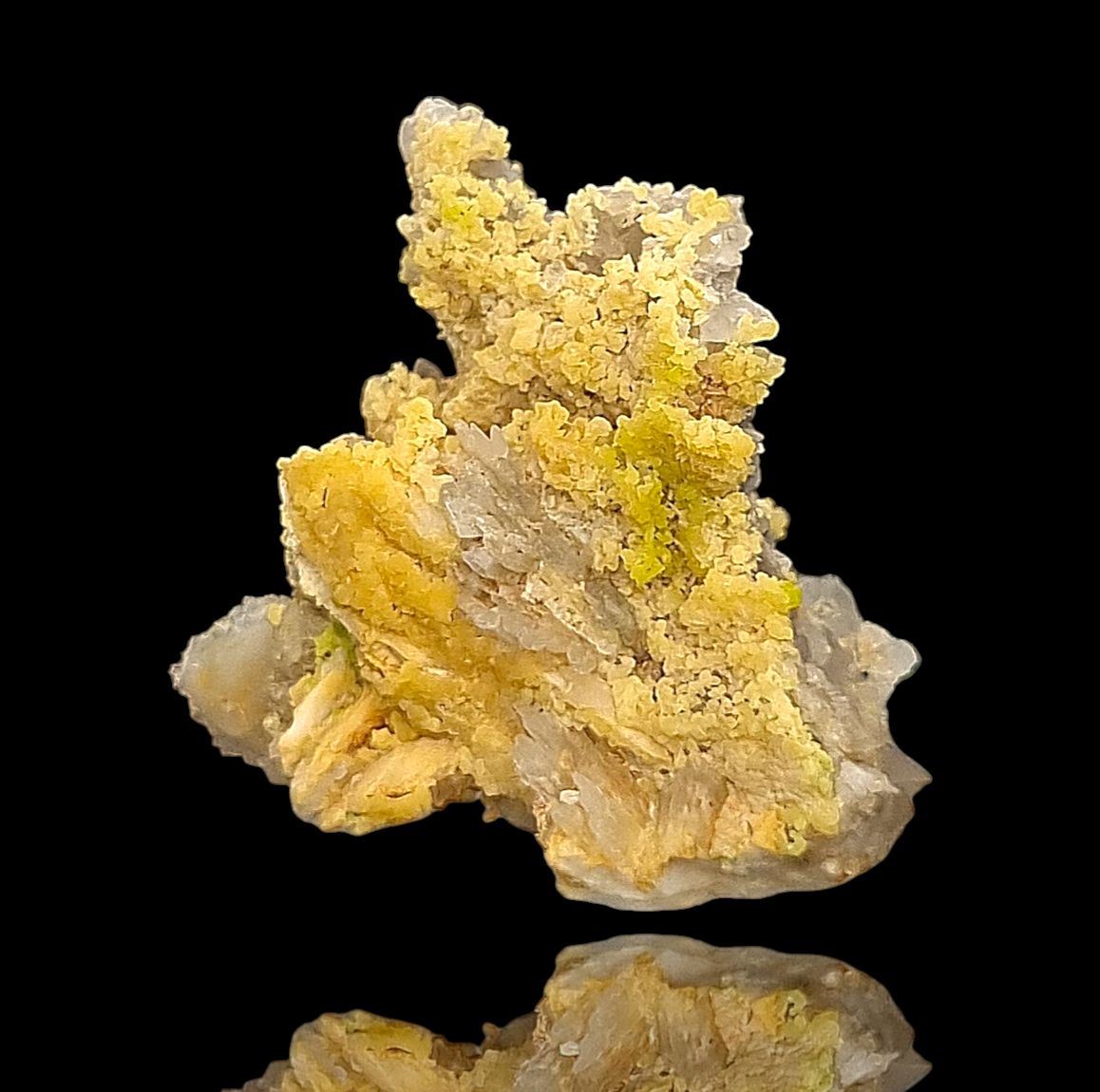 🇺🇲Beautiful yellow and translucent, bubbly/botryoidal and droplet-like mimetite with patches of yellow-green pyromorphite partly covering light-gray chert from Badenweiler in the Black Forest.