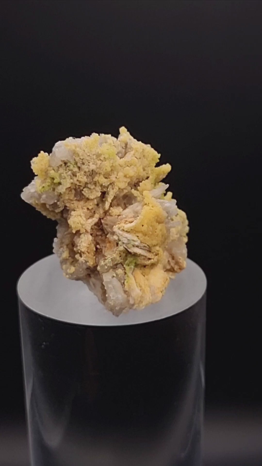 🇩🇪Wunderschöner gelber und durchscheinender, traubenförmiger und tropfenartiger Mimetesit mit Stellen aus gelbgrünem Pyromorphit, der teilweise hellgrauen Hornstein überzieht.