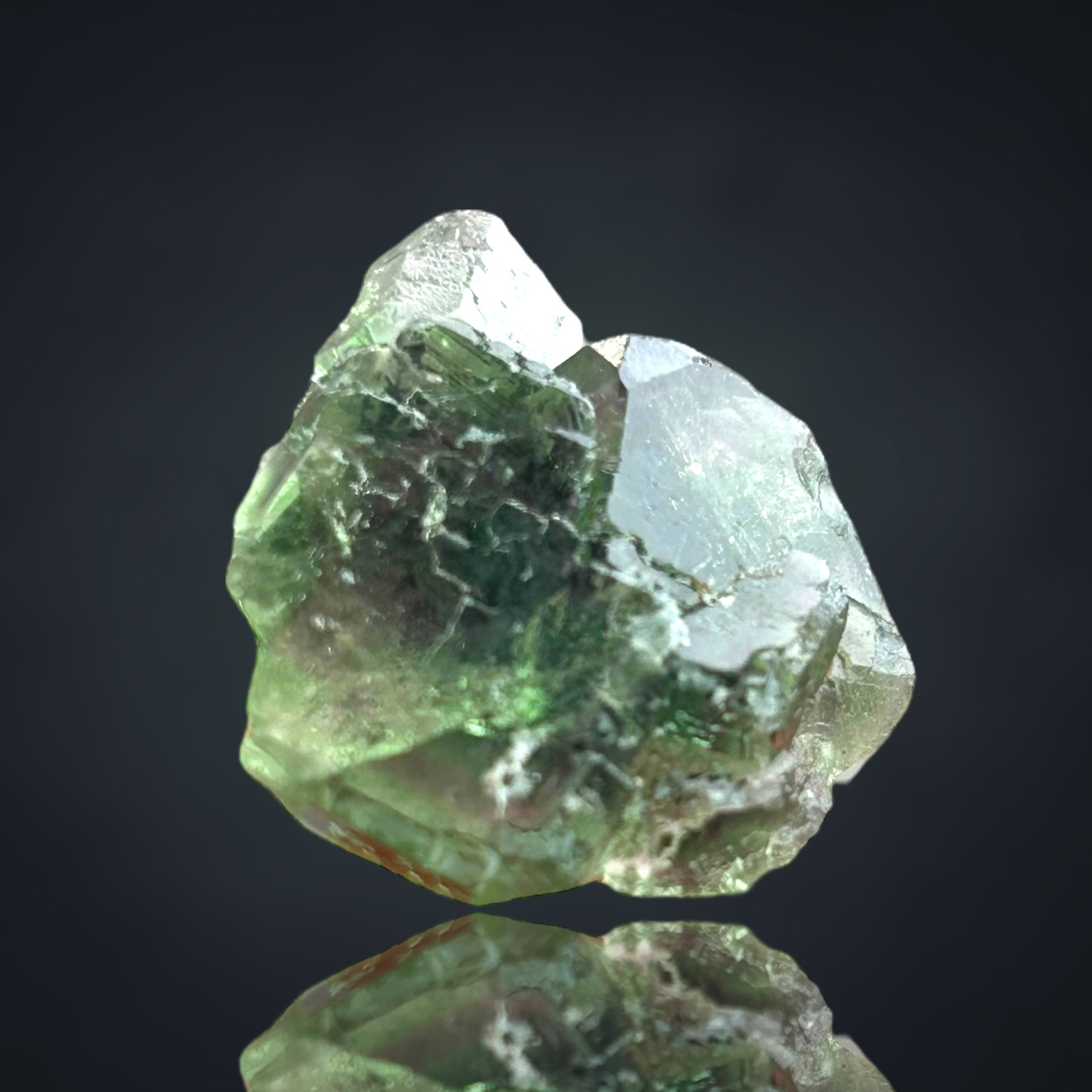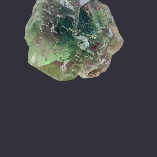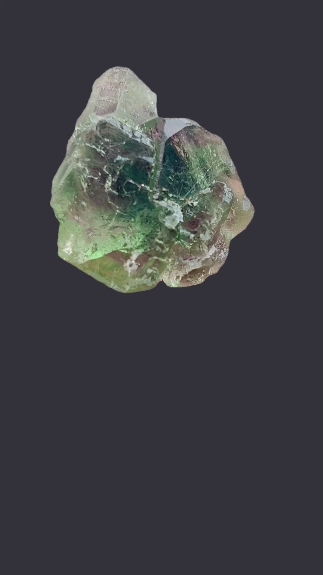🇩🇪 Gemmy grasgrüne Fluorit xx auf derbem violetten Fluorit, der im inneren der grünen zonare Phantome bilden.