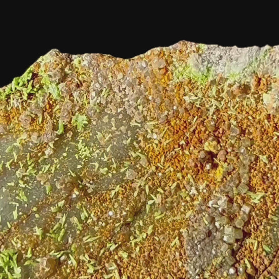 Beide Kristallarten liegen neben und auf einer Quarzmatrix. Der Quarz sorgt für einen strukturellen Kontrast und hebt die unterschiedlichen Kristallformen und Farben besser hervor. Ein repräsentatives und mineralogisch interessantes deutsches Pyromorphit-Exemplar, das verschiedene Kristallformen auf einem einzigen Stück vereint.