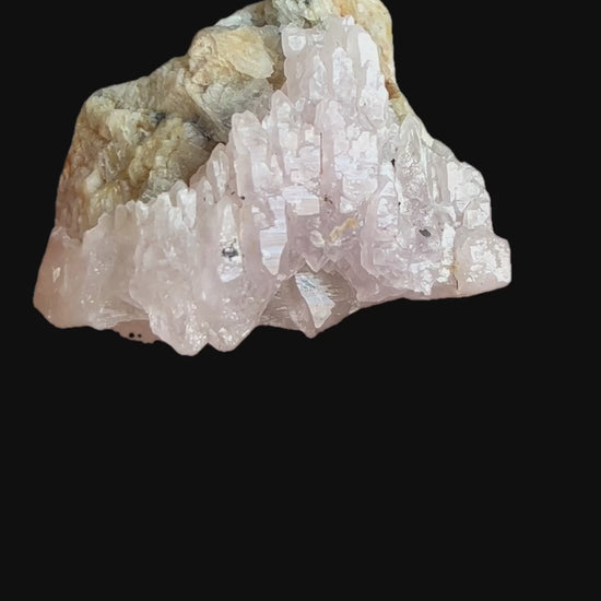 🇬🇧 Rich pink quartz crystals, mostly double-terminated, on feldspar.