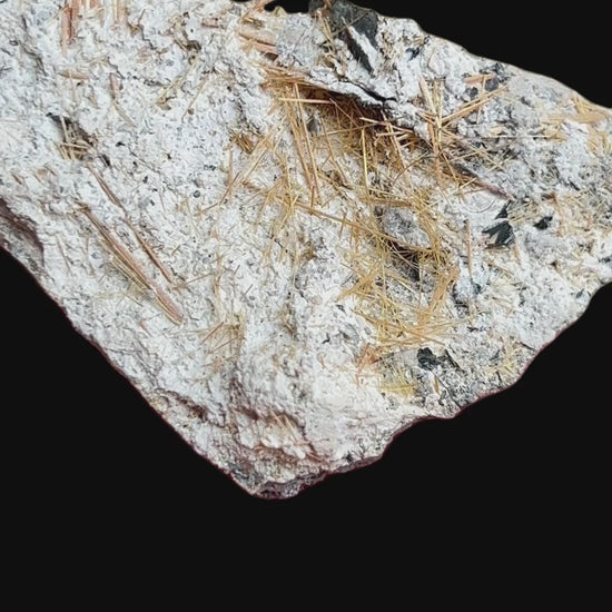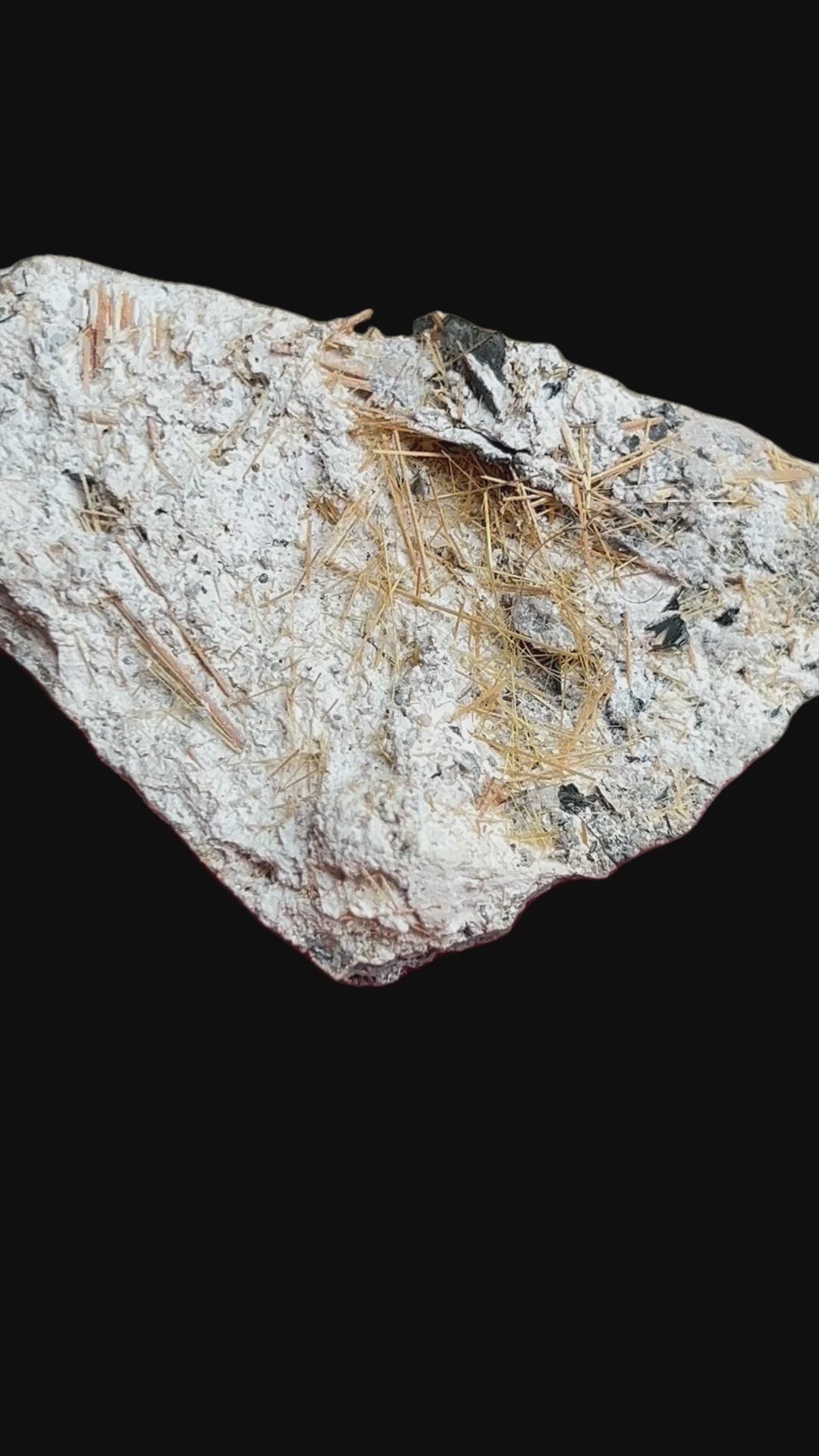 🇺🇸 For me, these shiny gold rutile xx, which grew completely freely, like straw, are completely new from this location. The usual base of the rutile, the hematite xx, are found spread across the specimen but are only of marginal importance.
