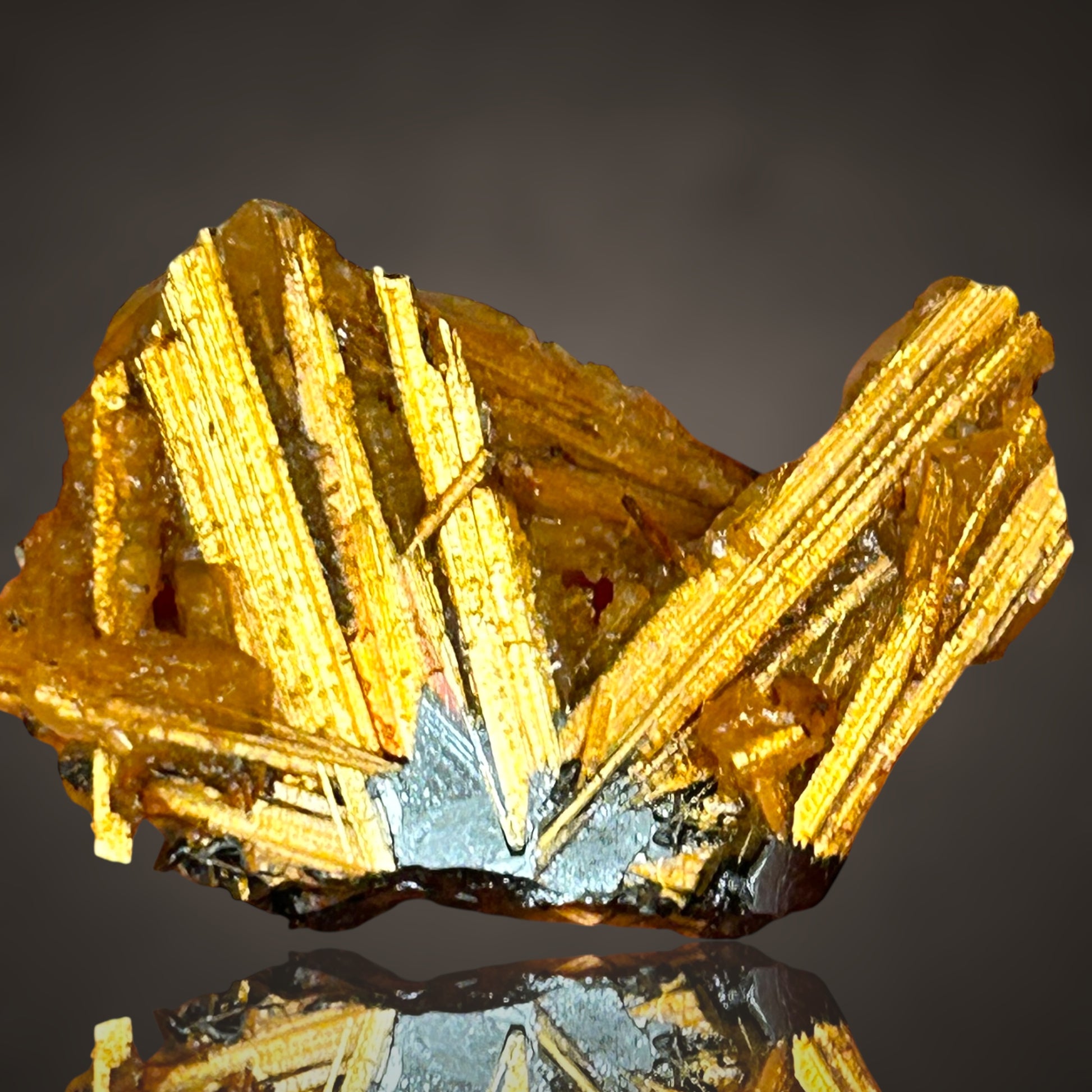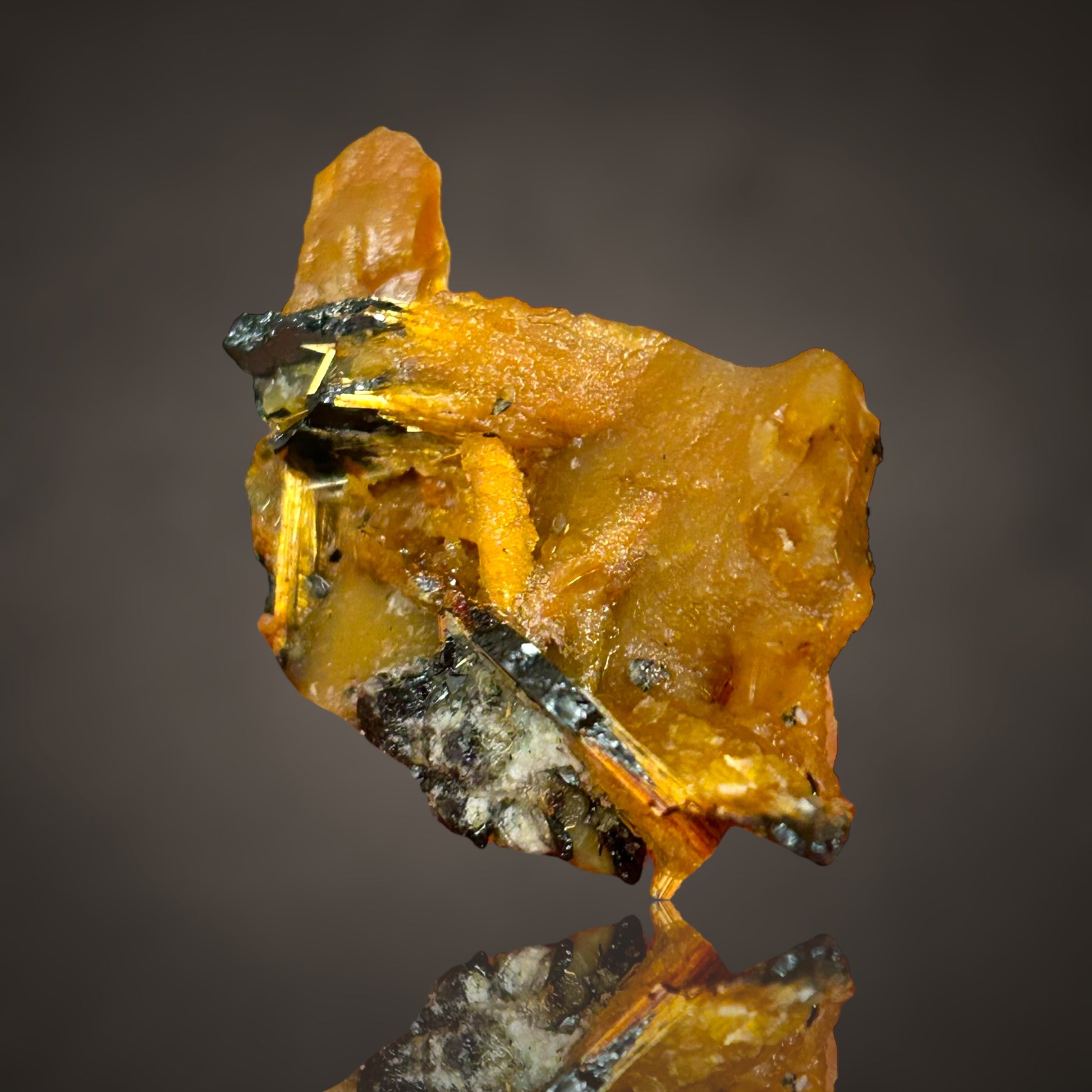 Hier ist eine sehr seltene Paragenese zu sehen: Rutil und Opal. Ein wunderschöner Hämatit-Rutil-Stern, der auf einer Seite teilweise mit Opal bedeckt ist (ohne Farbspiel).