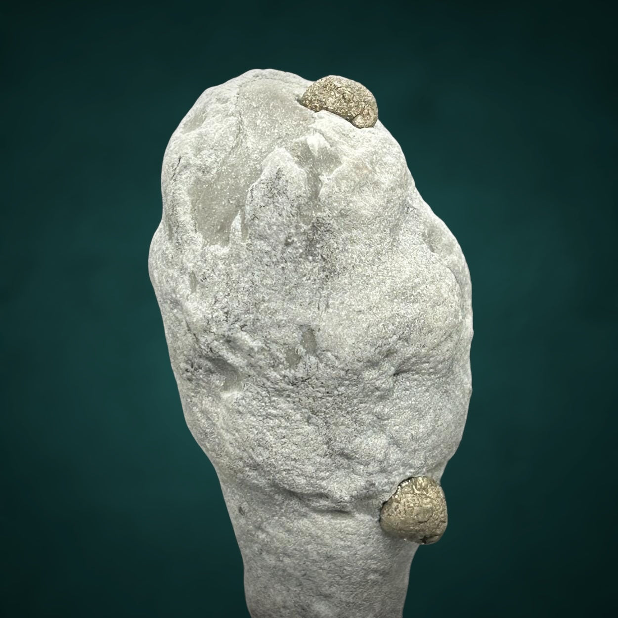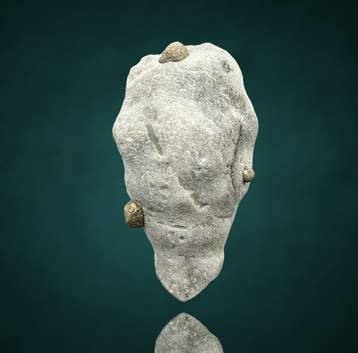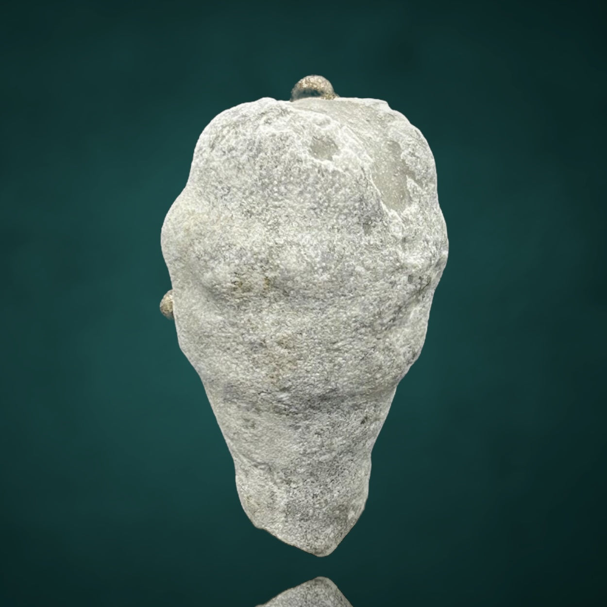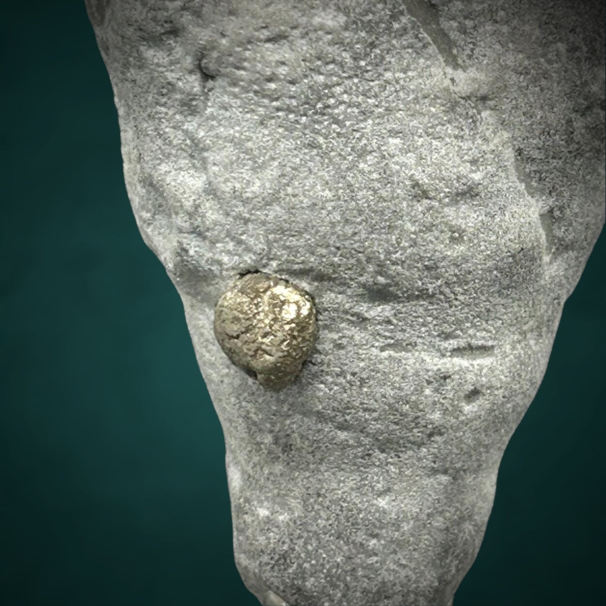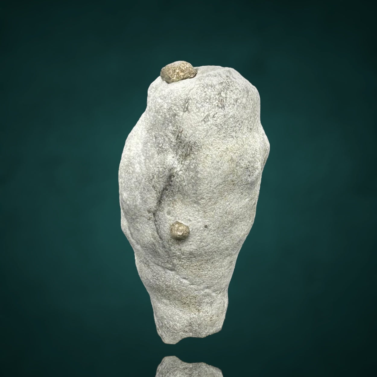 🇺🇲Gray fossil sponge (porifera) with the typcial denty surface and evenly distributed vent holes from the Höver Quarry near Hanover in Lower Saxony, Germany with pyrite nodules of ca. 8 mm. These look very alike and have a specific form like a clam but I'm not certain if these are pseudomorphs of pyrite after fossil clams.