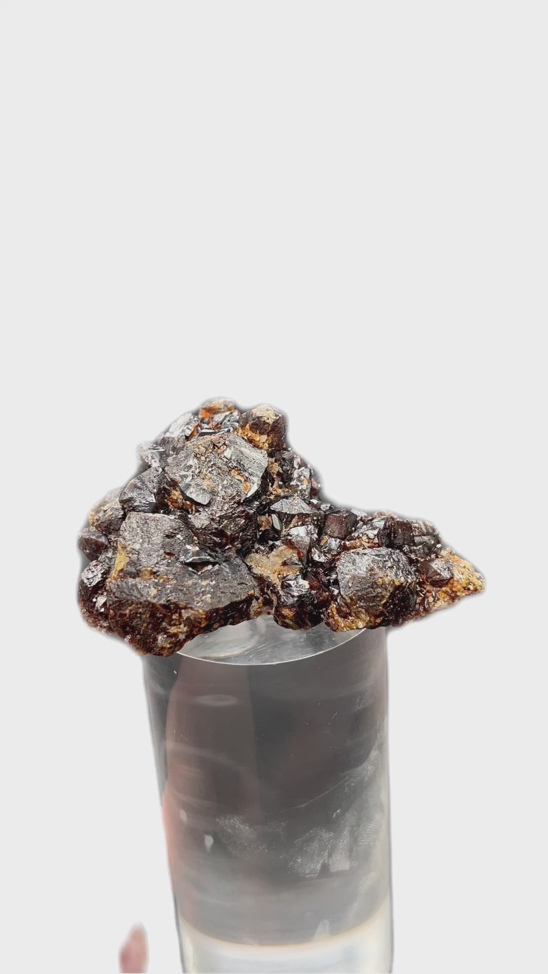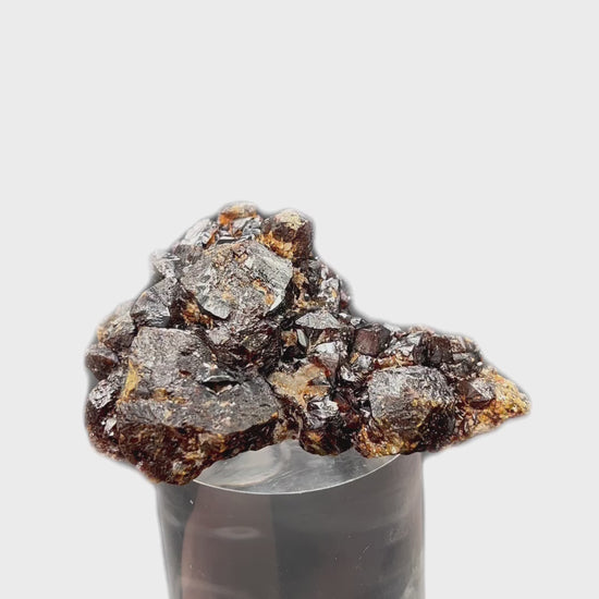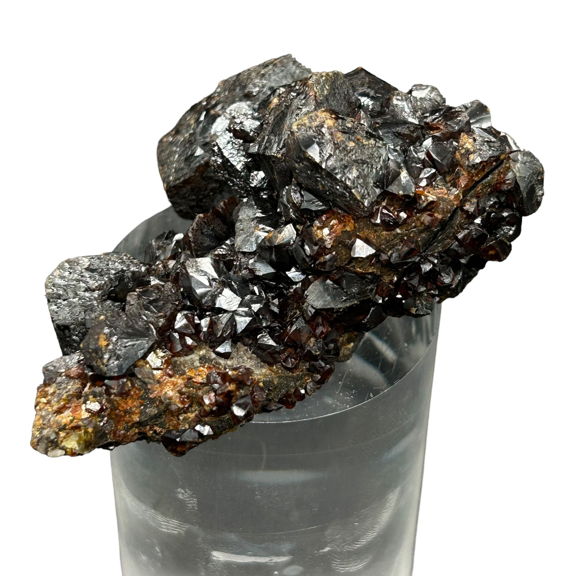 Very well built sphalerite, multi faceted on matrix, intense color from brownish to fiery red.