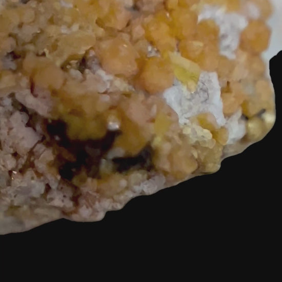 🇩🇪 Herrlicher Wulfenit, inmitten von sehr guten Mimetesit xx. Die handgroße Stufe ist rundherum besetzt.