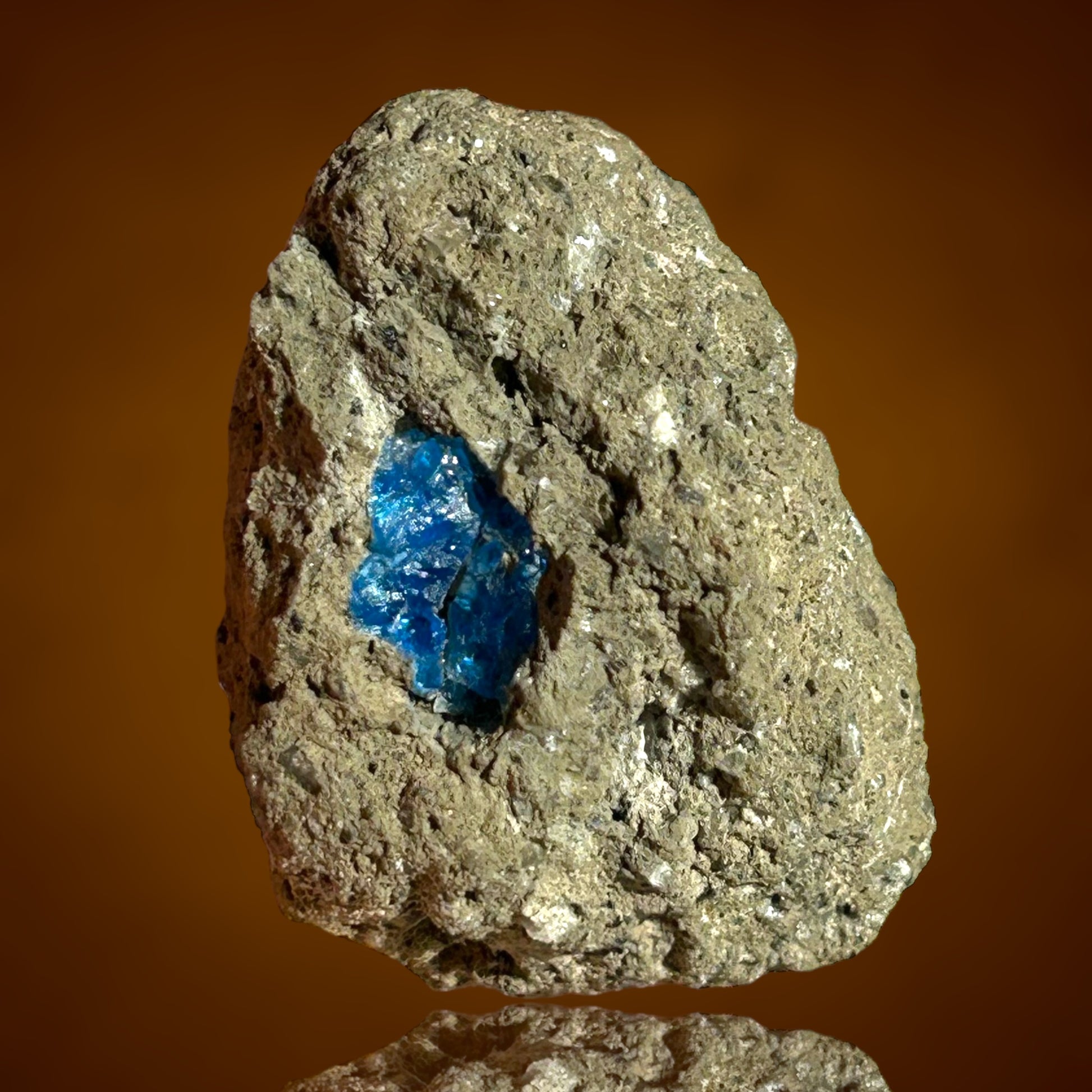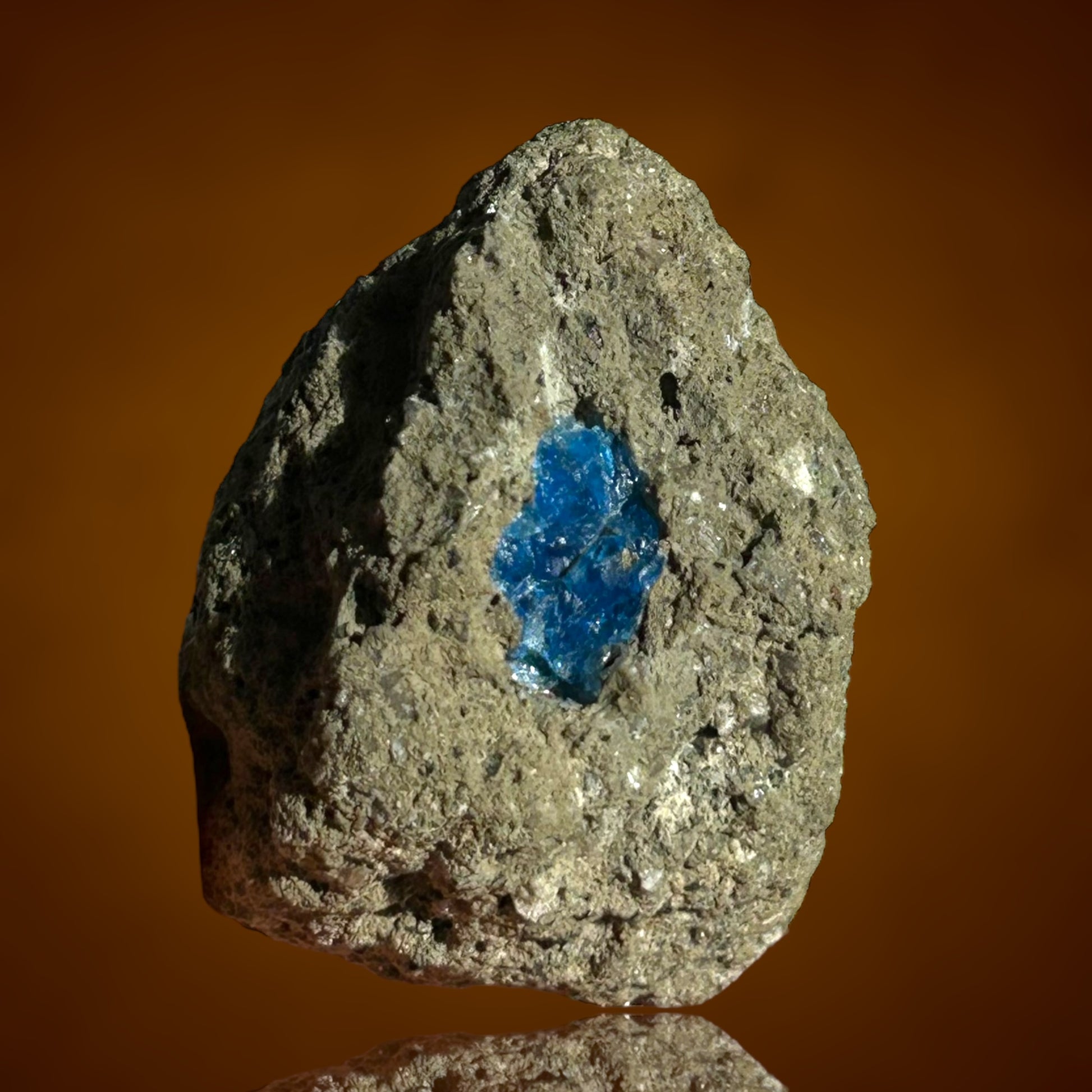 🇩🇪 16 x 11 mm Hauyn in Bimsstein. Bestes Kobaltblau, schleifwürdig.