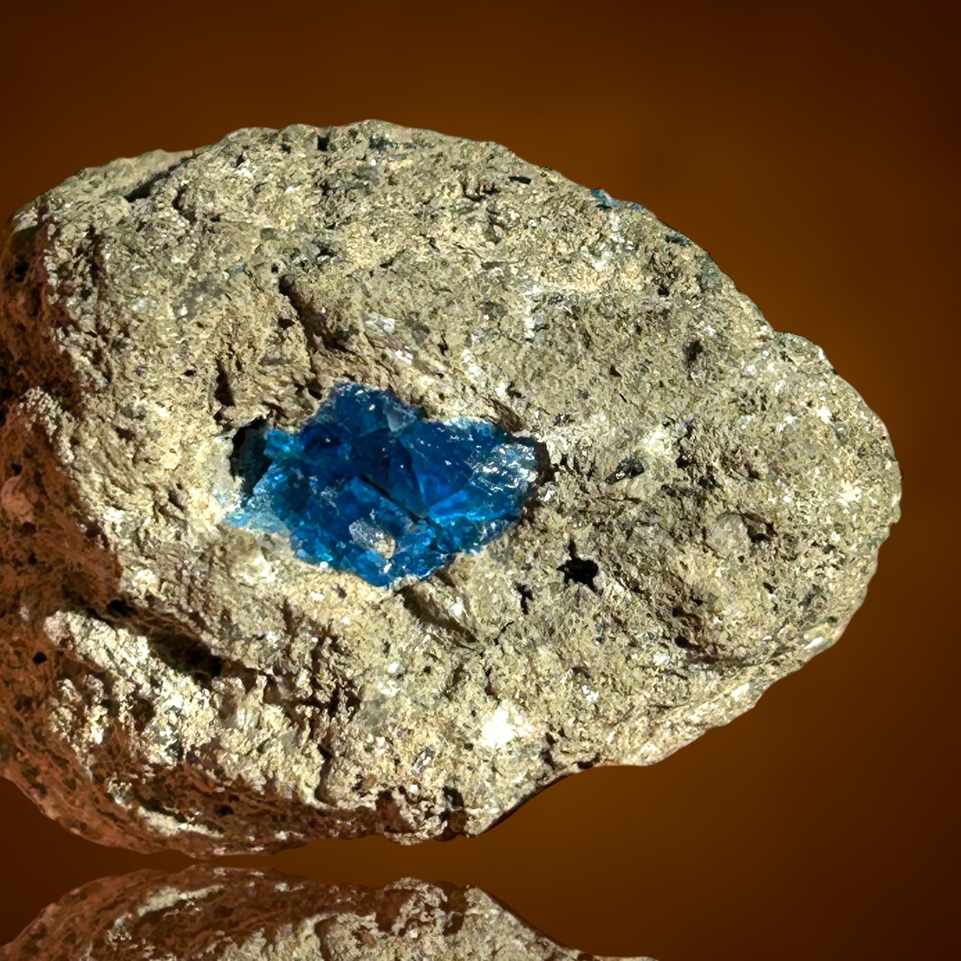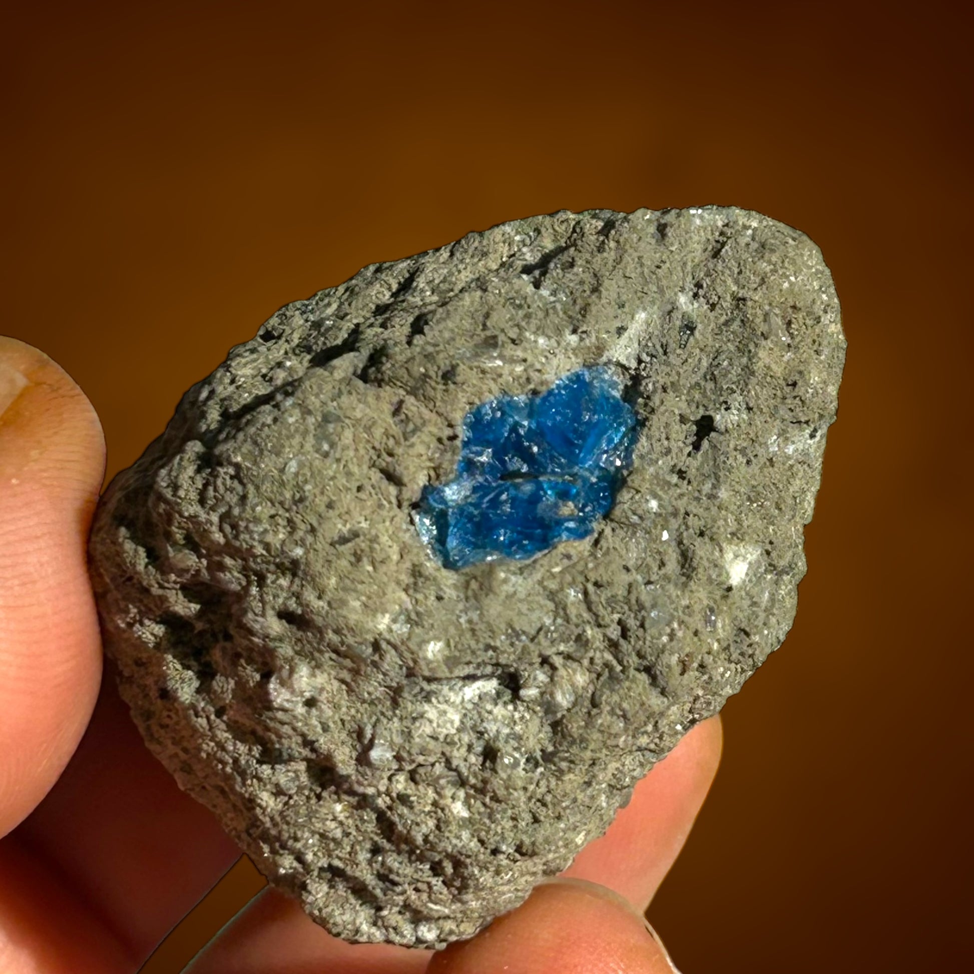 🇬🇧 16 x 11 mm hauyne in pumice. Finest cobalt blue, suitable for cutting.
